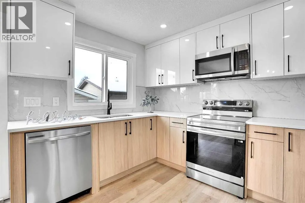 Welcome to this beautifully renovated two-storey detached home located in the highly desirable community of Falconridge in NE Calgary. This stunning property offers 4 bedrooms, 2 full + 2 half bathrooms, a double detached garage, brand new appliances, brand new windows, siding, soffit, fascia, gutters, pluming and garage roof. An unbeatable locationâjust a 2-minute walk to St. John XXIII School and close to all major amenities.As you enter, youâre greeted by a spacious foyer that leads into a bright and inviting living room, highlighted by large windows that fill the space with natural light and a stylish feature wall that elevates the ambiance. The modern kitchen at the rear of the home showcases quartz countertops, stainless steel appliances, and overlooks both the dining area and the living room. A large patio door provides seamless access to the backyard and adds an elegant touch to the dining space. A stacked laundry closet and 2-pc powder room complete the main floor.Upstairs, you will find a generous primary bedroom with ample closet space and a private 2-pc ensuite. Two additional well-sized bedrooms and a beautifully upgraded 4-pc main bathroom complete the level. Plush, upgraded carpet throughout the upper floor adds warmth and comfort.The fully finished basement (illegal suite) with a separate side entrance offers excellent additional living space. It features 1 bedroom, 1 full bathroom, a cozy rec room, and a sleek modern kitchen with stainless steel appliancesâperfect for extended family or potential rental use.This home is truly a complete package, offering modern finishes, functional design, and an exceptional location. This gem wonât last longâbook your private showing today! (id:27476)