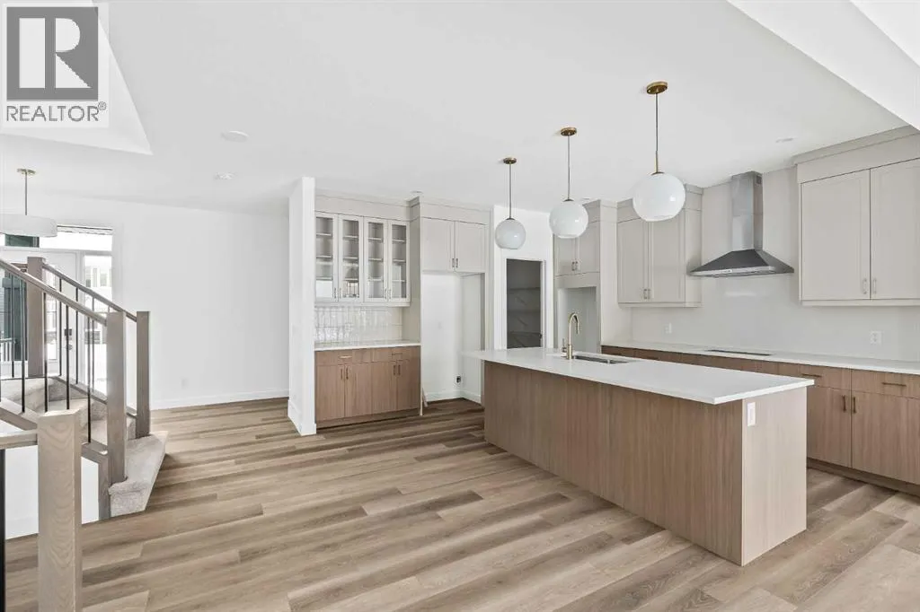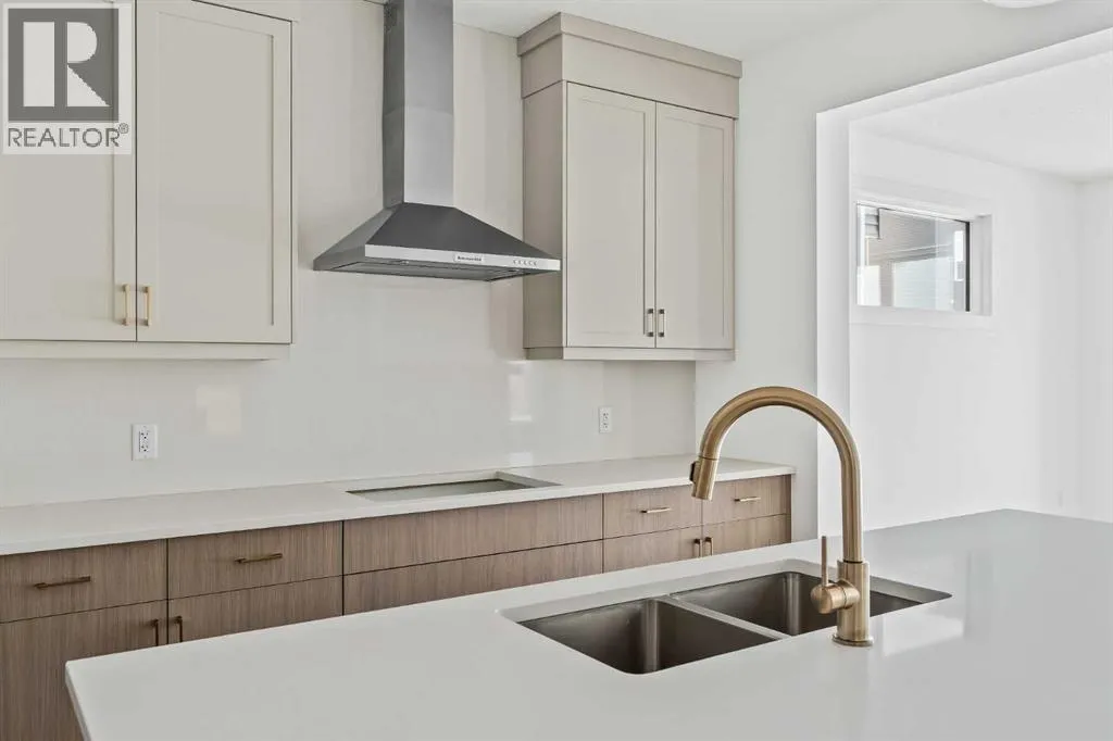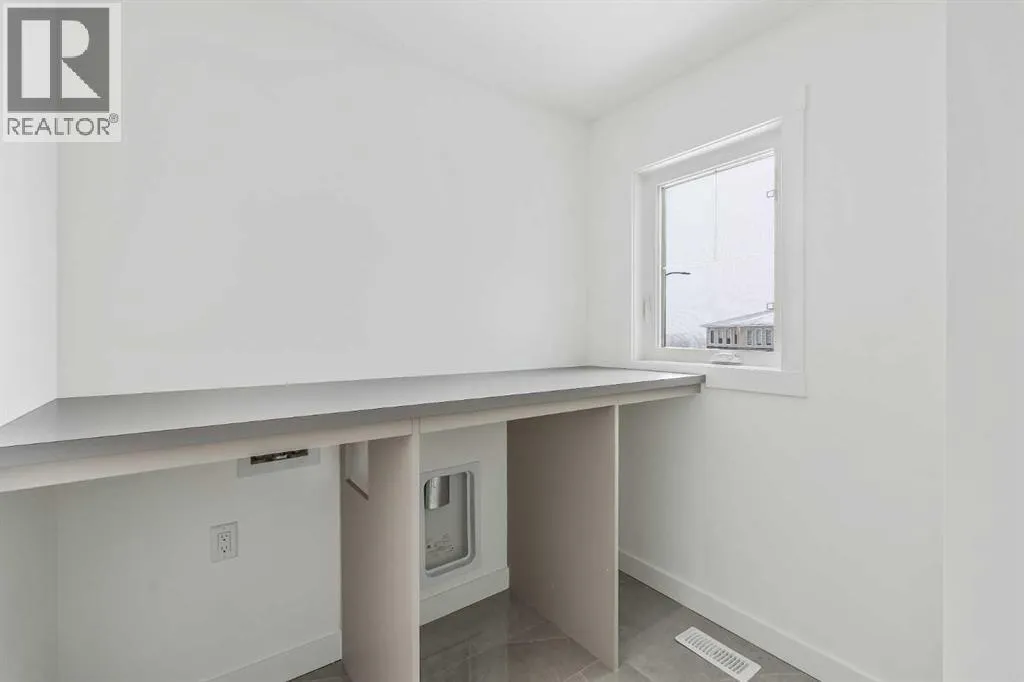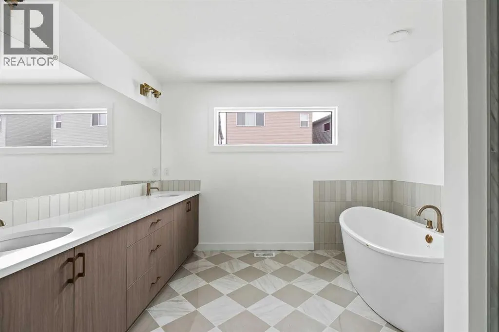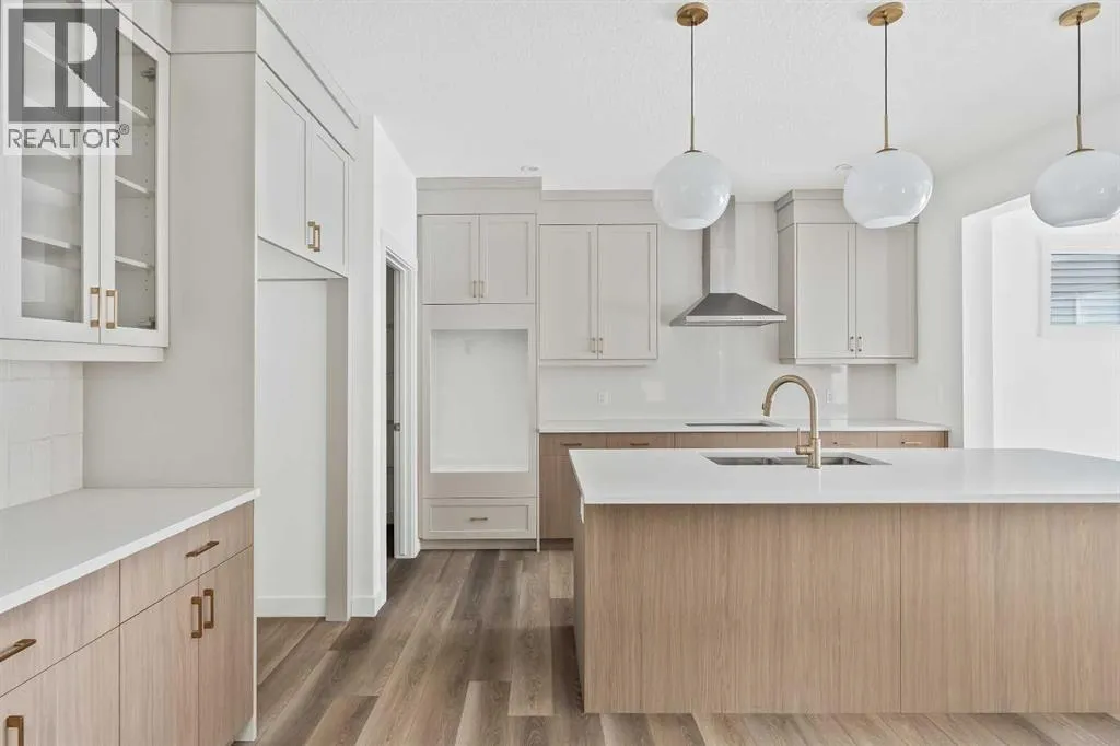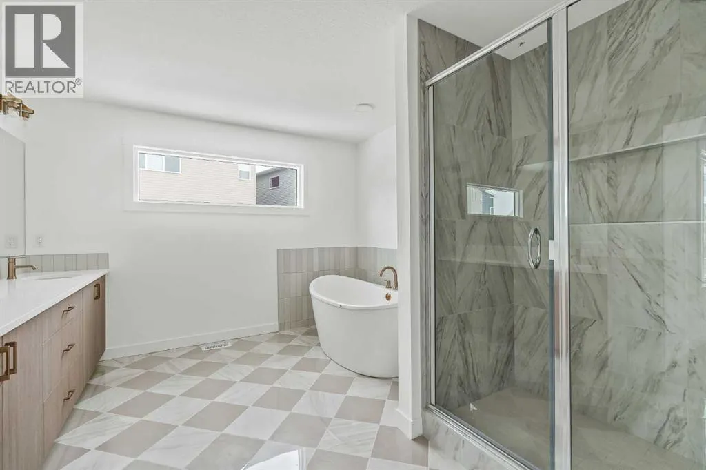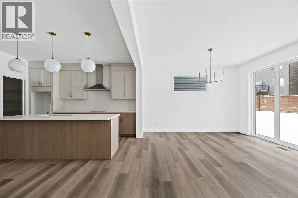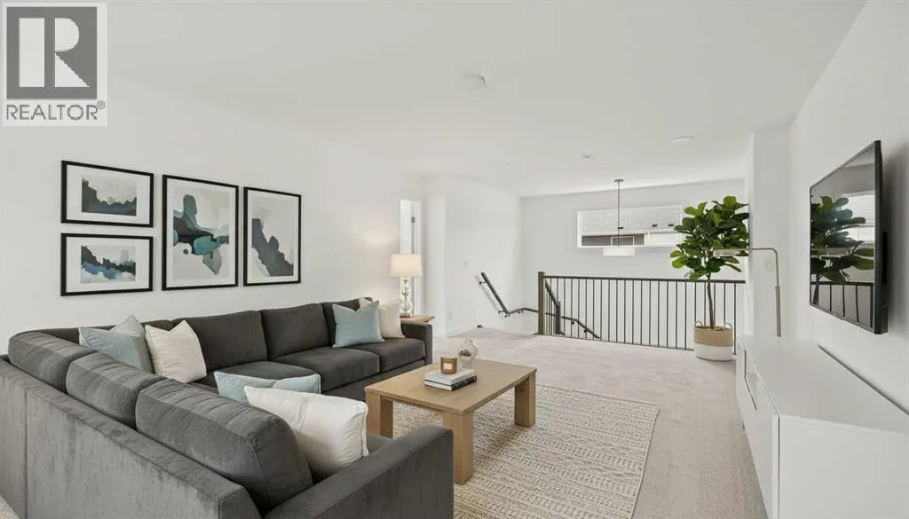 The Columbia 26 is a brand-new home built by Brookfield Residential, ready for immediate possession! Situated on an oversized conventional pie lot (not zero lot) with 4 bedrooms on the upper level and featuring nearly 2,600 square feet of developed living space + a full basement with private side entrance. Featuring 2 living areas, a home office space, 4 bedrooms above grade and 2.5 bathrooms, this home offers the perfect space for a large family! Upon entry a grand foyer provides plenty of space with sight lines from the entryway to the back of the home and main living area. Walls of windows across the back of the home allow natural light to fill the space all day long. The home boasts a central gourmet kitchen with an expansive pantry that has direct access to the mudroom for everyday convenience. The kitchen is complete with a chimney hood fan, built-in wall oven & microwave and a gas cooktop. The kitchen is complete with a large central island and open to the main living and dining space - making it the perfect place to host guests. Warm wood tones and a timeless design palette flow effortlessly throughout the home - creating a space that is beautiful today and will offer exceptional resale value long term. The main level is complete with a private flex space, perfect for a home office with double doors providing added privacy. A central gas fireplace on the main level is the perfect addition for cool winter nights. The main level is complete with 3 closets, an expansive mud room and 2 pc powder room. The upper level has a central bonus room that separates the primary suite from the other 3 bedrooms. The primary suite overlooks the backyard and has a large ensuite with dual sinks, a walk-in shower and soaker tub, in addition to the oversized walk-in closet. Three more large bedrooms, with walk-in closets and double closets, provide ample space for children and a full 5pc bathroom with double sinks and laundry room complete the upper level. The undeveloped baseme nt includes a private side entrance and offers endless possibilities with rough-ins already in place! Located in the new community of Livingston, this home includes Alberta New Home Warranty as well as the builder's warranty, allowing you to purchase this brand-new home with peace of mind. (id:27476)