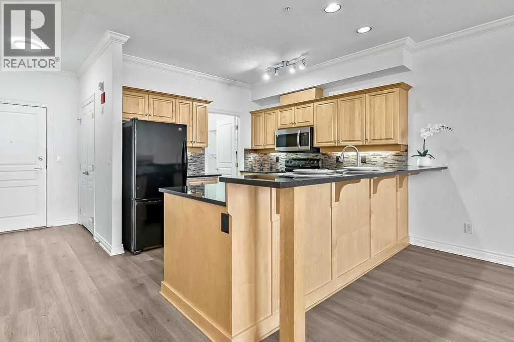 Imagine beginning your morning above the treetops, sunlight streaming into a space that feels more like a private bungalow than a condominium. This is life at River Grande Estates; an award-winning community in the heart of Erlton/Lindsay Park, where inner-city living feels grounded, elegant, and wonderfully complete. Your days unfold effortlessly here. Nearly $50,000 in thoughtful renovations have elevated the home into a polished sanctuary, where every finish has been chosen to bring ease, comfort, and quiet sophistication into daily life. The generous floor plan gives you room to move, to create, to host. Brew coffee in a kitchen that reflects your taste, settle into a dedicated workspace that feels inspiring rather than crowded, and later, welcome friends for dinner without rearranging your home to make it fit. This is a residence designed for those who expect more. More space, more quality, more refinement. Beyond your doors, the building becomes an extension of your lifestyle. Step out into beautifully maintained courtyards, stroll to the river pathways for a morning run, or wander to Mission for brunch. The MNP Sport Centre, Stampede Park, and LRT are all moments away, making it effortless to move between work, wellness, and leisure. Yet, despite its proximity to everything, River Grande Estates remains blissfully calm. Set back from traffic and offering rare peace in the inner city. Evenings here feel like an exhale. Return home through manicured grounds. Park with ease. Unwind on your oversized balcony with a glass of wine and watch the sky shift. The buildingâs quiet interiors, abundant visitor parking, private courtyards, and convenient car wash bay speak to a level of pride of ownership that is increasingly hard to find. This is a community for those who live intentionally. Professionals who value proximity, active individuals who thrive near the river, discerning downsizers seeking a true lock-and-leave lifestyle without compromise. And now, this home i s ready to welcome its next owner. A residence that reflects your standards. A community that elevates your lifestyle. (id:27476)