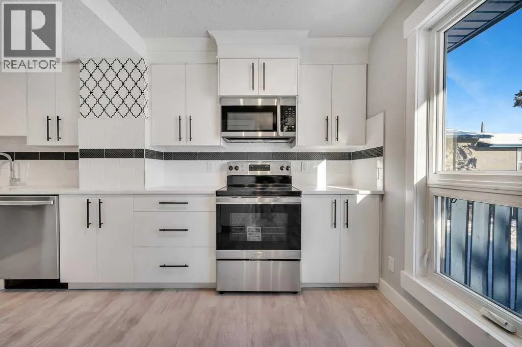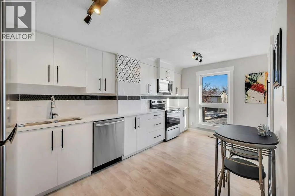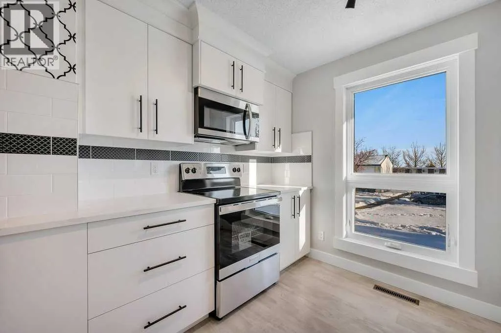 Stunning fully updated 3 bed / 1.5 bath end unit townhome. Perfectly located to the NW community of 'Thorncliffe' - featuring easy access to Deerfoot City, highways, downtown, nose hill park, walk to amenities and so much more. Step inside to your new home, with luxury upgrades and 1,129 sq ft of space to enjoy on the upper 2 levels. The main floor features: Living space, half bath, eating nook, and kitchen. Large windows leave the space feeling bright/inviting, along with new updates like freshly painted, wainscotting on wall, luxury vinyl plank flooring throughout, and best of all a new kitchen! The kitchen features: bright white cabinetry, quartz counters, two tone tile work, chic wallpaper, SS appliances with warranty, pantry, lots of cabinet space, crown moulding, & more. Head upstairs to find an updated cable railing, giving the home a high end feel. The upper level is complete with: 3 bedrooms, and fully updated full bathroom. The full bathroom has beautiful tile work, shower/tub combo, vanity, toilet. Primary room is a great size with ample room for additional furniture and large closet space for storage. Although the upper two levels offer a great amount of space, you also have an unfinished basement that is awaiting your creativity. The following are upgrades that have been done for your enjoyment: solid wood baseboards, solid wood casings, wainscotting, wallpaper, freshly painted, LVP floor, quartz counters, new kitchen, SS appliances w/ warranty, new toilets, new vanities, new doors, new hardware, new boutique light fixtures, and more. There is an included outdoor parking stall, along with street parking, & easy access to transit. With so much to offer in such a great location, this makes for a great place to call home. Book your viewing today, before it's gone! (id:27476)