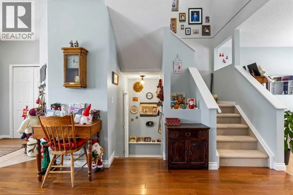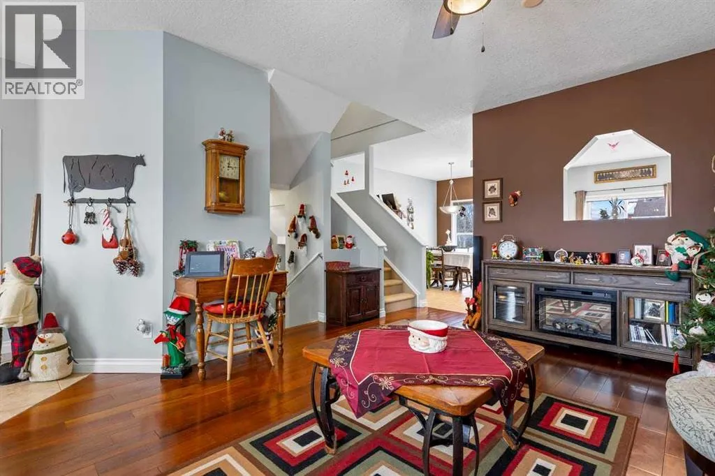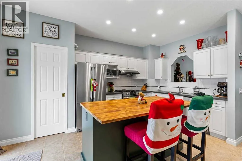 OPEN HOUSE SATURADY January 3 2:00 TO 4:00 Welcome to this inviting Citadel home featuring a BRIGHT WALKOUT BASEMENT, a DOUBLE GARAGE, and the comfort of CENTRAL AIR CONDITIONINGâperfect for year-round living. Offering more than 1500 sq. ft. of thoughtfully designed space, the main floor opens with a welcoming foyer flowing into the living room finished with beautiful MAIN FLOOR HARDWOODS, while the bright kitchen and dining area and a breakfast bar featuring CERAMIC TILE FLOORS and are filled with natural light. Crisp white cabinetry and stainless steel appliances including a HIGH-END GAS RANGE create a clean modern feel, centered around the cozy living area fireplace ideal for family gatherings and relaxed evenings. Upstairs, the spacious primary bedroom offers a peaceful escape complete with a sparkling ensuite featuring a glass shower and soaker tubâperfect for unwinding under the stars. Two additional bedrooms provide comfortable space for family or guests. The partially finished WALKOUT BASEMENT offers versatility for a studio, office, gym or media room with direct access to the yard. Fire up the BBQ on the upper deck as the kids play below on the low-maintenance synthetic lawn and enjoy your above ground vegetable garden. All of this is located close to parks, pathways, schools and multiple shopping optionsâan ideal blend of convenience and community. Water tank, furnace & A/C all new in 2023 , shingles are 10 years old and the condo board is replacing all windows and the patio door in spring 2026. (id:27476)