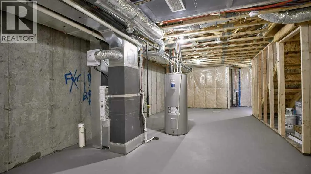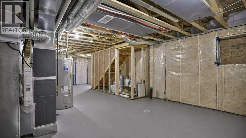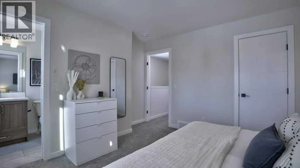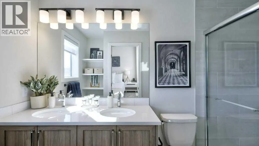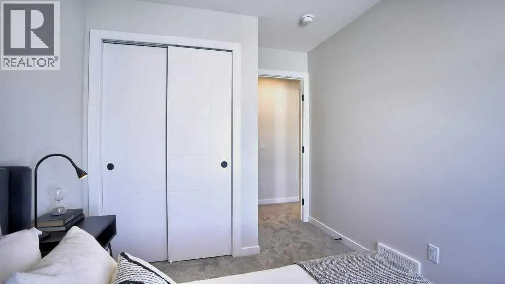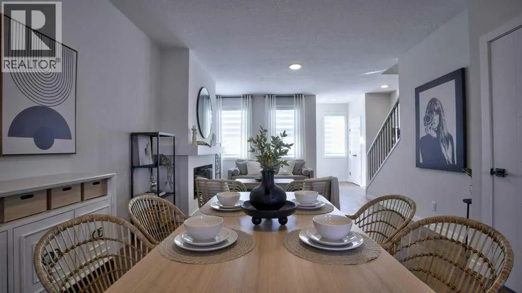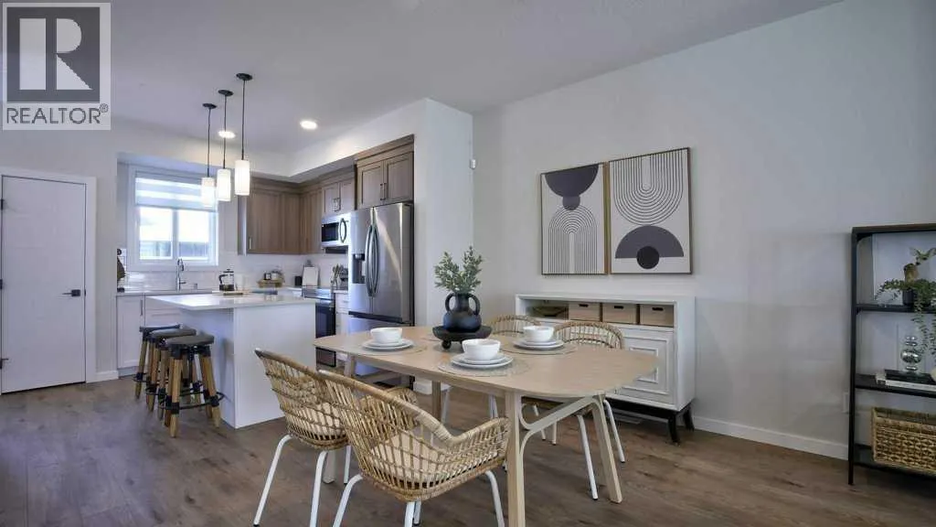 This brand new END UNIT townhome WITH NO CONDO FEES in WOLF WILLOW combines thoughtful design with modern comfort in a location surrounded by parks, pathways, the BOW RIVER, and everyday conveniences. The main level is bright and welcoming with wide-plank LVP FLOORING for durability and easy maintenance. A spacious GREAT ROOM sits at the front of the home and centres around an ELECTRIC FIREPLACE with a streamlined mantel, creating a warm focal point for gatherings. The dining area flows naturally from the living space and offers plenty of room for family meals or entertaining. The kitchen is beautifully appointed with warm WOOD CABINETRY, STONE COUNTERTOPS, a WHITE TILE BACKSPLASH, SHAKER DOORS, SOFT-CLOSE CABINETS, POTS AND PANS DRAWERS, and a central island that expands prep space while encouraging conversation. TRIPLE PANE WINDOWS throughout the main level enhance energy efficiency and contribute to year-round comfort. A SIDE ENTRANCE offers functional separation and flexibility for future use, while the basement provides ROUGH-INS for a BATHROOM, WET BAR, and LAUNDRY to support a variety of future development options. Upstairs, the PRIMARY BEDROOM is bright and well-proportioned with a WALK-IN CLOSET and a private ENSUITE featuring DOUBLE SINKS and a TILED SHOWER for a polished, spa-like feel. Two additional bedrooms share access to a full bathroom, creating a practical layout for families or guests. Completing the exterior, the builder will install FRONT AND BACK LANDSCAPING along with a 10â x 10â REAR DECK that extends the living space outdoors for relaxing or dining. A DETACHED DOUBLE GARAGE adds secure parking and extra storage. Window coverings are included for added move-in readiness. This home offers a comfortable blend of style, function, and community connection in one of south Calgaryâs most nature-focused neighbourhoods. (id:27476)