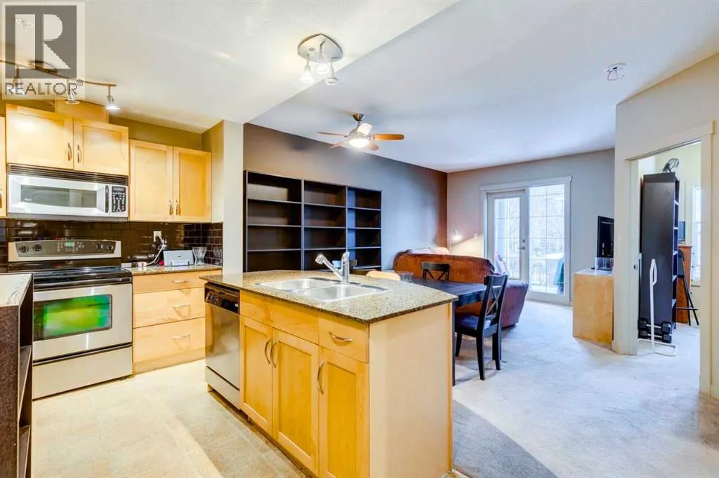 Location + Amenities + Easy Access to the City and the MountainsThis ground floor unit offers 9' ceilings, an open layout and an office. It is designed for low maintenance and faces east to catch the morning sun. It has direct exterior access with a front door that opens to the street. The unit's indoor parking is located directly below it and can be accessed by stairs or an elevator right at the back door. The handicap ramp is a short distance down the hall from the back door. The building is built of concrete and the unit is very quiet. The mechanical systems are centralized which eliminates a furnace and a hot water tank. Residents have access to a well maintained 24 hr fitness facility, an interior courtyard garden, 2 guest rental suites and 40 indoor guest parking spots. The community features no through traffic, 4 parks including 3 with children's playgrounds and a walking path. ATCO's Blue Flame Kitchen is in the NE corner of the community. Local amenities include retail malls on the east and west sides of the community, Glenmore Park, Rockyview Hospital and Mara Loop 5 minutes away, Chinook Centre and Westhills 10 minutes away and downtown 15 minutes away. The community is bounded by Crowchild Trail and Glenmore Trail providing quick access to anywhere in the city. There are 7 buses within walking distance with easy access to the LRT, downtown and the SW side of the city. The community is adjacent to Mount Royal University which offers reasonably priced public memberships to its wonderful recreation facilities. (id:27476)