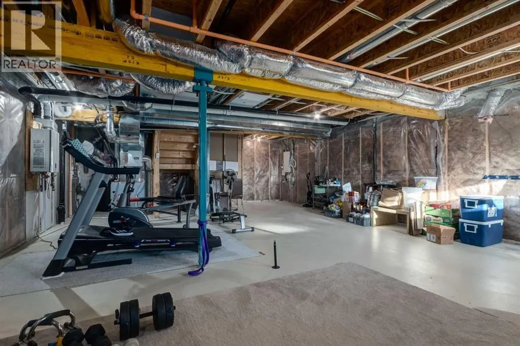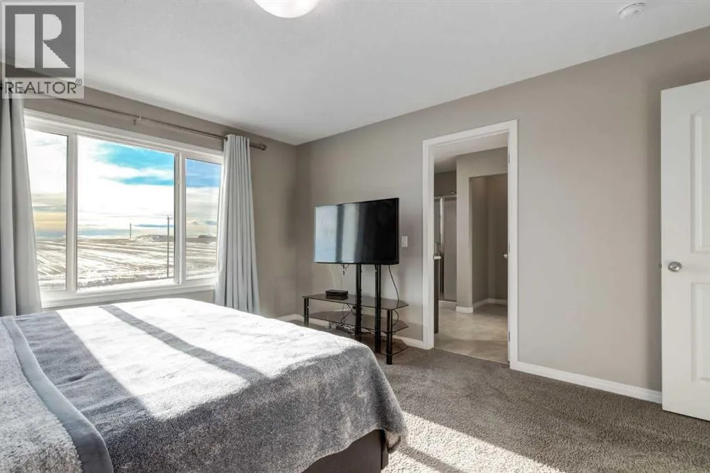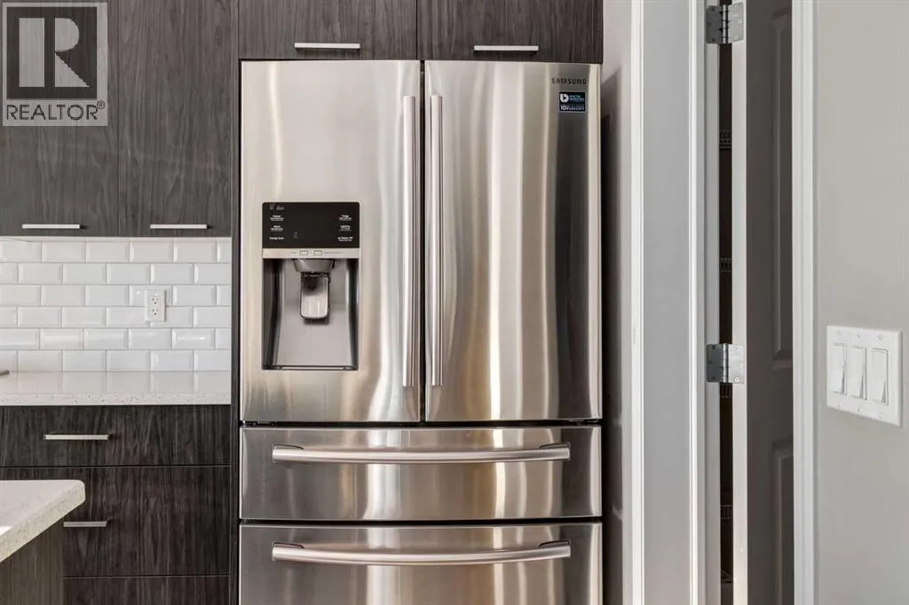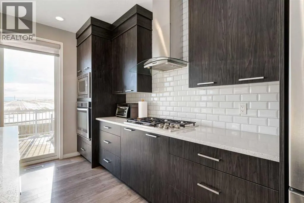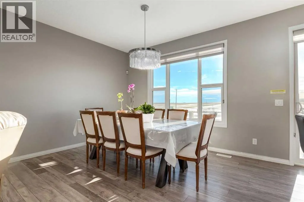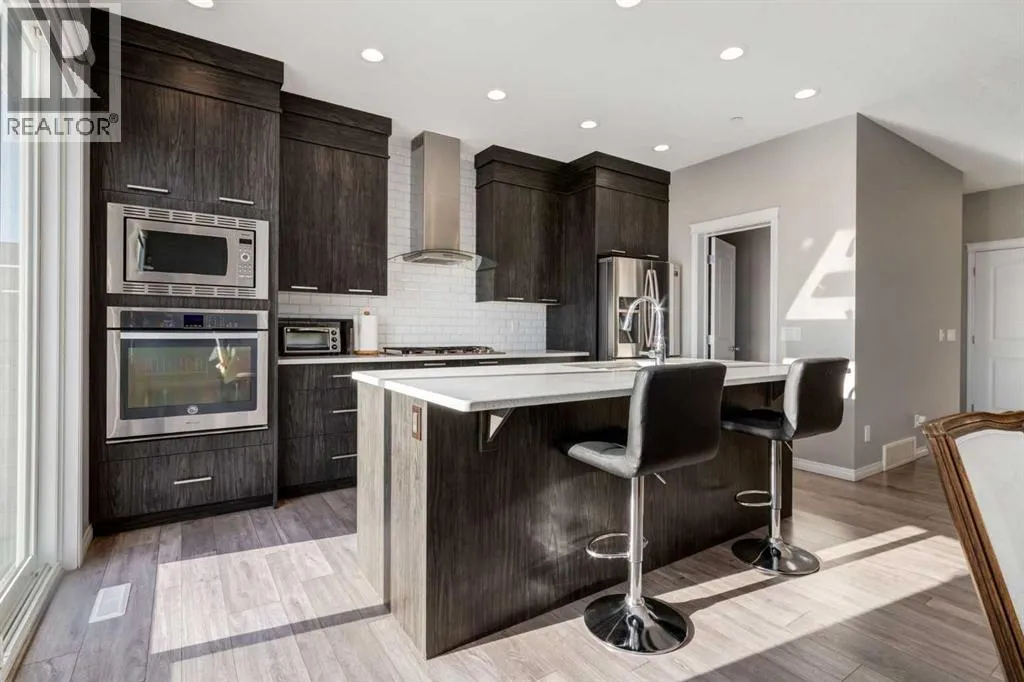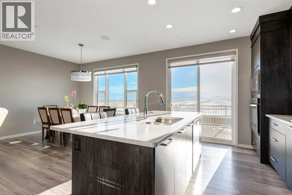 Welcome to this well-designed home with a desirable south-facing backyard located in the vibrant community of Livingston. The contemporary kitchen features full height kitchen cabinets with a substantial bulkhead above, quartz countertops, a huge central island, upgraded stainless steel appliances, including 36" gas cooktop, built in wall oven and microwave and chimney hood fan and a walk-through pantry conveniently close to the mudroom and entry from the double-attached garage. The main floor boasts 9-foot ceilings, upgraded modern lighting and lots of pot lights, luxury vinyl plank flooring and a spacious living room with a modern electric fireplace. The dining area accommodates large dining furniture and seating for entertaining family and friends and leads to the good-sized rear deck, with a gas line to the BBQ, and stairs down to the backyard. The landscaped south backyard, with trees provides an attractive setting for gardening and outdoor enjoyment.Many features include energy-efficient triple-pane windows and a tankless hot water and Kinetico Water Softener. The upper floor showcases a central bonus room and a built-in desk and workspace for a home office or study. The primary suite includes a spacious walk-in closet and a four-piece ensuite with 5â walk in shower and double vanities. Two additional generous size bedrooms and a full four-piece bathroom plus a separate laundry room with full-size washer and dryer complete the upper floor.The unfinished basement awaits your design ideas and has a bathroom rough-in and lots of room for a 4th bedroom, a recreation room, a gym and plenty of storage. Ideally located in this desirable neighborhood of Livingston, just a short walk to the community center and and all of the outdoor recreation enjoyed all year round, plus parks, schools, shopping centers, and all major roadways. (id:27476)