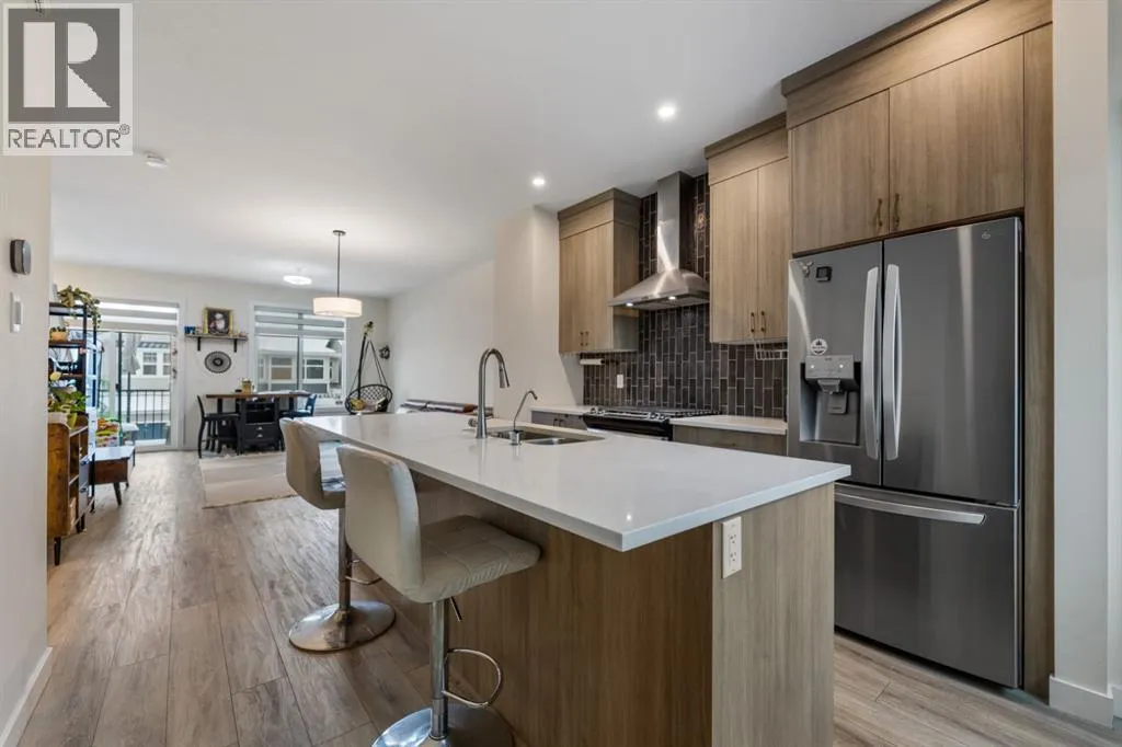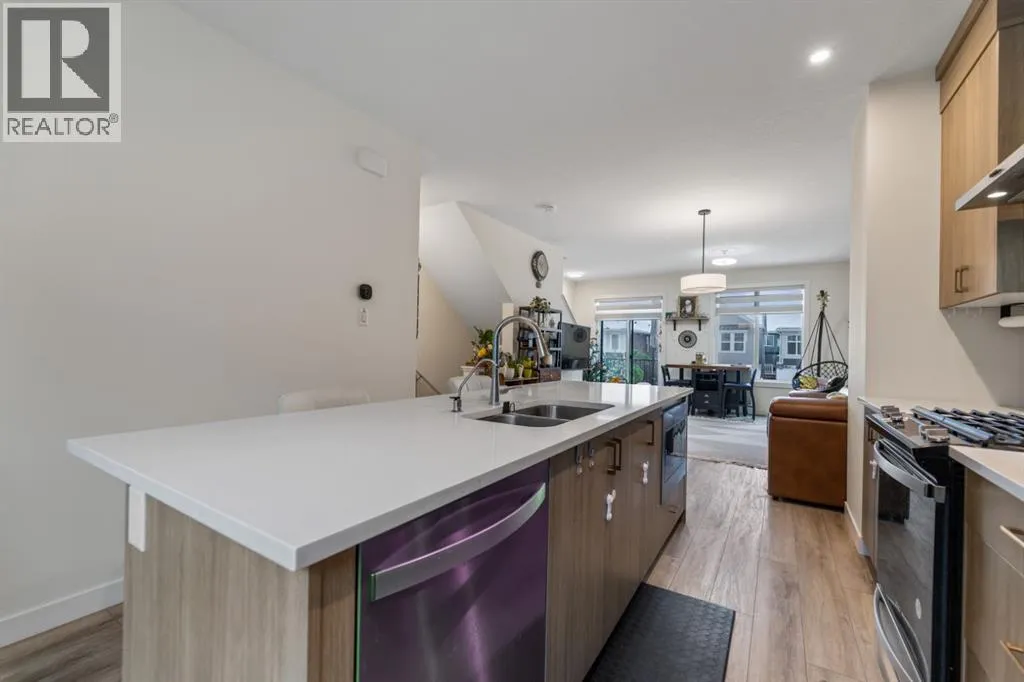 Welcome to this well appointed townhouse located in the heart of Seton, one of Southeast Calgaryâs most vibrant and sought-after communities. This home offers 3 spacious bedrooms, 2 full bathrooms, and 1 convenient half bath, designed for comfortable and functional living. The modern kitchen is thoughtfully upgraded with a gas range, chimney style hood fan, built-in microwave, and a double door refrigerator with water and ice dispenser. Open and inviting, it is ideal for both everyday living and entertaining. Stackable laundry adds efficiency while keeping the layout practical. Residents enjoy exclusive access to the Seton HOA, featuring amenities such as ice rinks, tennis courts, a splash park, and an on site daycare facility. Daily conveniences are just steps away, with a nearby shopping strip mall and a larger retail plaza only minutes away. South Health Campus is a quick 3 minute drive, while Deerfoot Trail access is approximately 2 minutes, making commuting effortless. For outdoor enthusiasts, scenic walking paths and easy access to the Bow River are just steps from the property, offering the perfect balance of urban convenience and natural surroundings. An excellent opportunity to own in a well connected, amenity rich community. (id:27476)
