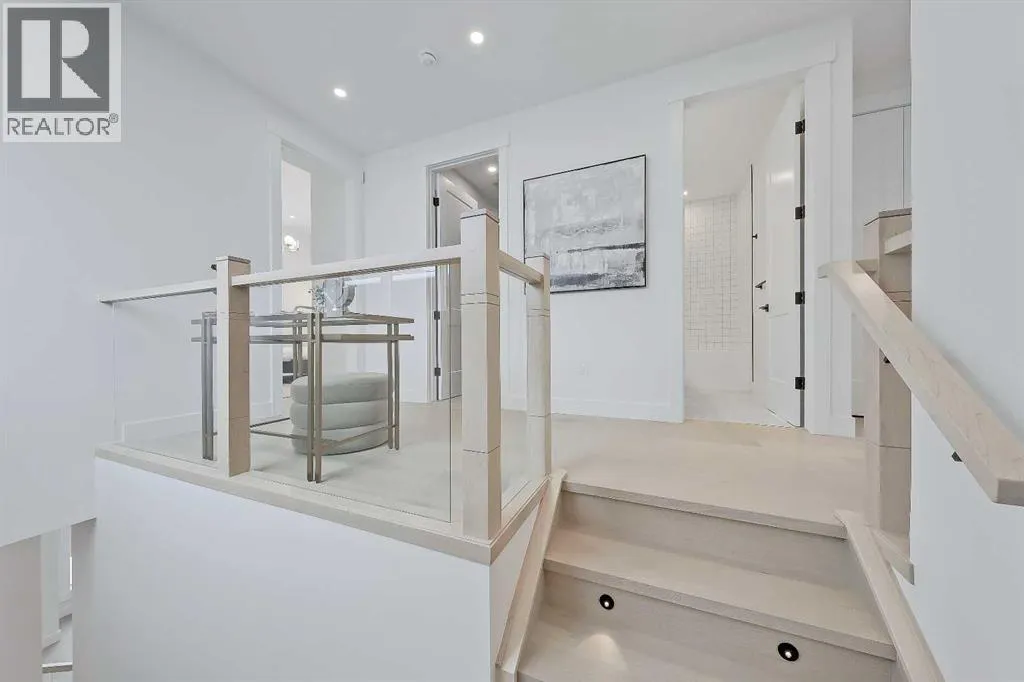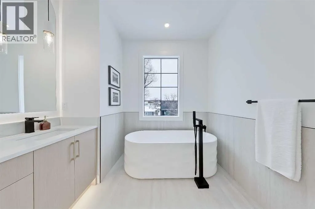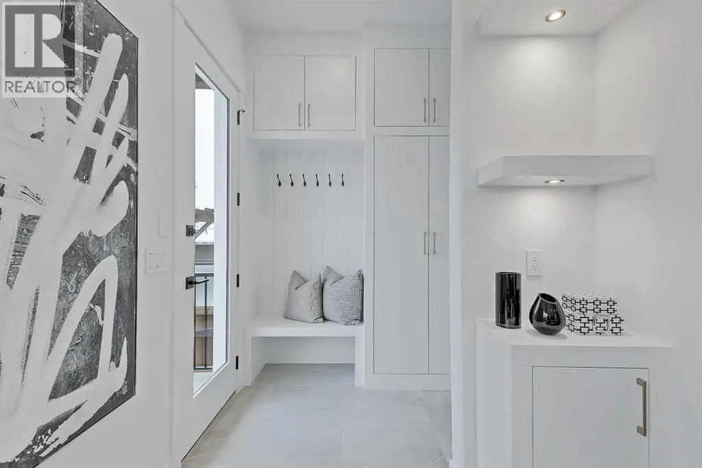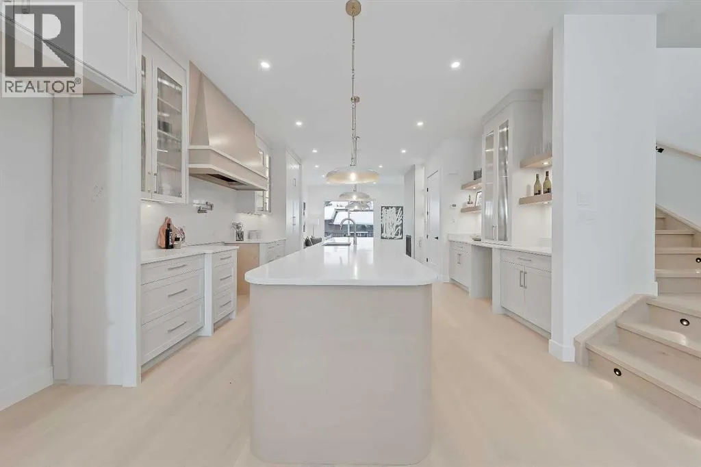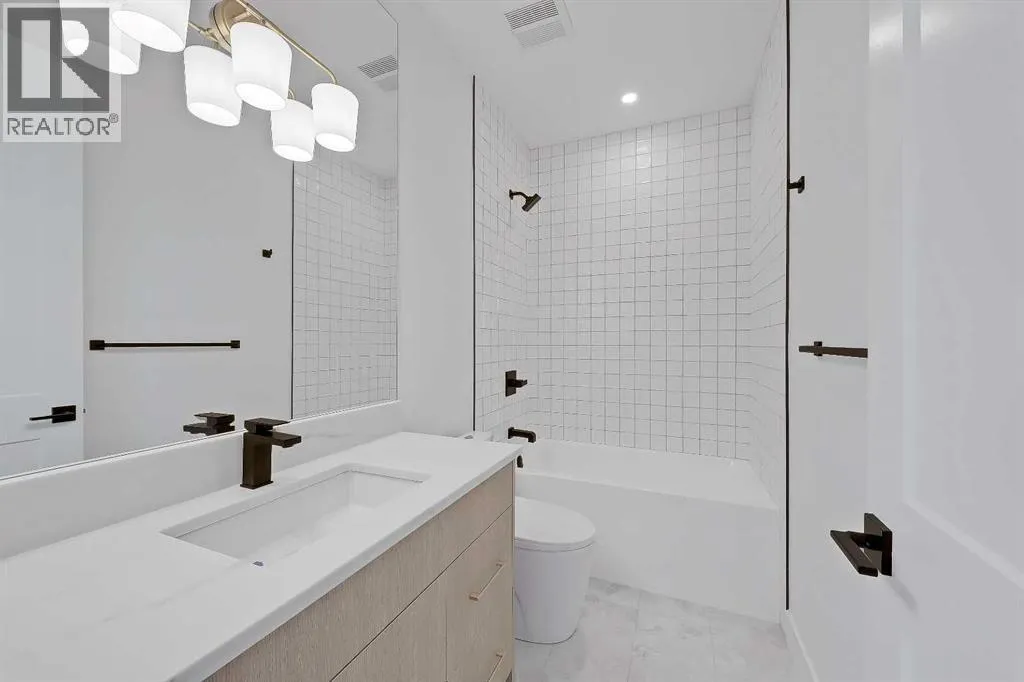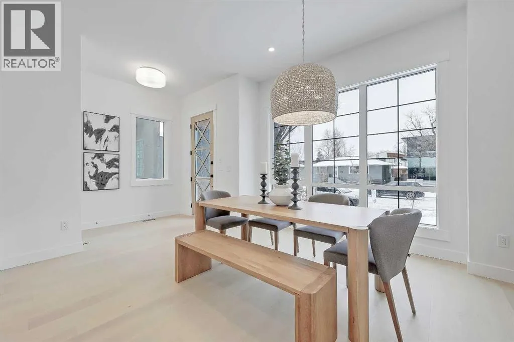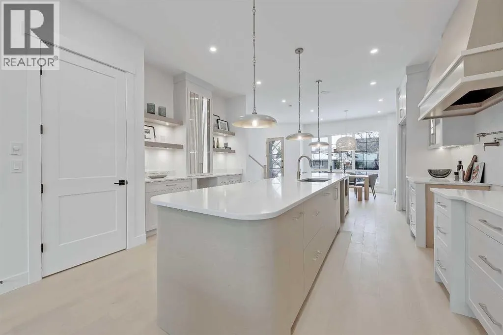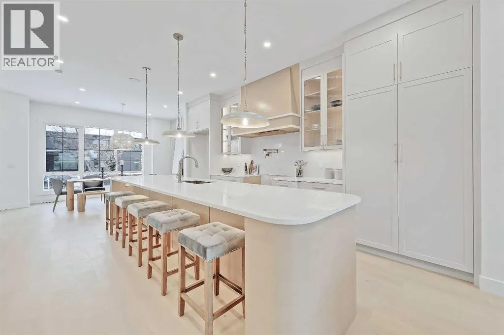 Clean lines, layered neutrals, and a magazine-ready kitchen come together in this modern PARKDALE INFILL home that feels calm the moment you step inside. The palette is soft and sophisticated, the hardware is warm, and every surface reads effortless. Itâs designed for real life, with spaces that flow and finishes that stand out. You enter to a defined foyer with a closet for coats and sightlines across the wide plank engineered hardwood and high ceilings. Sightlines pull you forward to the heart of the home where the kitchen, dining, and living connect in one easy sweep. The kitchen is an entertainerâs dream: full-height cabinetry, a large quartz island with seating, warm fixtures, and integrated upgraded stainless steel appliance package & POT FILLER. The quartz features subtle golden veining for an elegant touch of luxury, and the slab backsplash maintains a sleek and easy-to-clean look. Across from the island, a generous dining area sits under designer lighting, making family dinners feel special even on a Tuesday. The living room is designed for a cozy and modern setup, oriented towards a fireplace feature with vertical wood clad tile that is sure to impress. Large windows draw in natural light and frame the backyard and vinyl deck. The rear mudroom with built-ins for shoes, backpacks, and sports gear makes daily life simple and organized, keeping the main level looking photo-ready. Upstairs is laid out for privacy and quiet retreats. The primary suite is a true haven, featuring a sky-high 11-ft ceiling, tall windows, a large walk-in closet, and a serene ensuite finished in warm stone tones. Enjoy a double vanity, walk-in shower w/steam, and elegant fixtures that match the homeâs modern feel. Two additional bedrooms share a stylish full bath, and the laundry room is exactly where you want it. The lower level adds incredible flexibility w/ a LEGAL 2-BED SUITE (approved by the city), allowing you to use it as a mortgage helper or mother-in-law suite! Thoughtfully finished like the rest of the home, this space features a full kitchen with quartz counters and a stainless steel appliance package, a full 4-pc bathroom with a fully tiled tub/shower combo, and a dedicated laundry room. Location puts you in that sweet spot on Calgaryâs northwest side with quick access to the BOW RIVER PATHWAY for runs and dog walks, and an easy connection to Edworthy Park. Groceries, coffee, and everyday errands are close at hand along 16 Ave and in Kensington, with more retail at Market Mall. Commuting is simple with nearby routes to downtown, and youâre minutes to Foothills and the Childrenâs Hospital, the University of Calgary, and the West Hillhurst Community Association for rinks, fitness, and programs. Well-regarded schools serve all ages, transit is convenient, and weekend life is dialed with parks, playgrounds, and local restaurants within a short drive. Itâs understated luxury. Warm, modern finishes. Functional spaces that make daily life feel organized and elevated. (id:27476)
