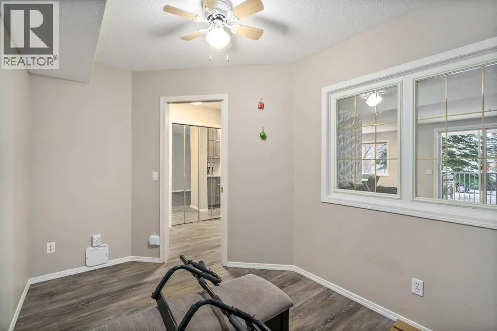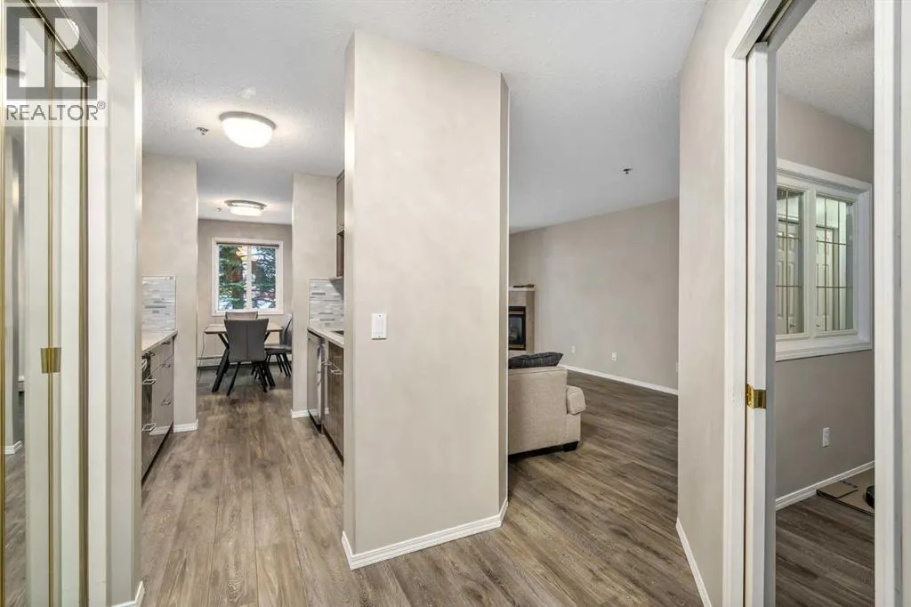 "BRAND NEW FLOORING" Discover this spacious and beautifully updated 2-bedroom, 2-bathroom + den condo offering over 1,100 sq. ft. of living space, ideally located in Chaparral Ridge. Situated on the main floor on the north side of a well-managed building, this unit includes a titled underground parking stall conveniently near the parkade entrance, along with a secure storage locker.The home underwent extensive renovations in 2022, making it completely move-in ready. From the moment you step inside, youâll notice the modern finishes and thoughtful upgrades throughout. The kitchen has been fully redesigned, featuring elegant new cabinetry, granite countertops, and stainless steel appliances. Both bathrooms have been refreshed with updated vanities, and new carpet has been installed in both bedrooms.The layout is one of the standout features of this home. A rare and highly functional floor plan offers a den or home office with an interior window just off the entry. The expansive living room includes a corner gas fireplace and opens onto a private balcony. A dedicated dining area sits adjacent to the kitchen, creating a perfect flow for everyday living and entertaining. Down the hallway, youâll find a large laundry and storage room, a full 4-piece bathroom, and two generously sized bedrooms. The primary bedroom features its own private 4-piece ensuite.With a north-facing orientation, the unit stays comfortable during warmer summer months. The complex has no age restrictions and is ideally positioned just a short walk from the Bow River and Fish Creek Park, offering access to an extensive pathway system. Golf enthusiasts will appreciate being only 7 minutes from Blue Devil Golf Club, while commuters will love the quick access to Stoney Trail and Deerfoot Trail.This is a fantastic opportunity to own a fully renovated, well-located homeâschedule your private showing before itâs gone. (id:27476)