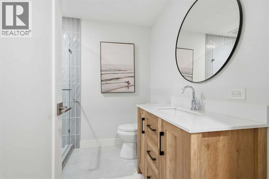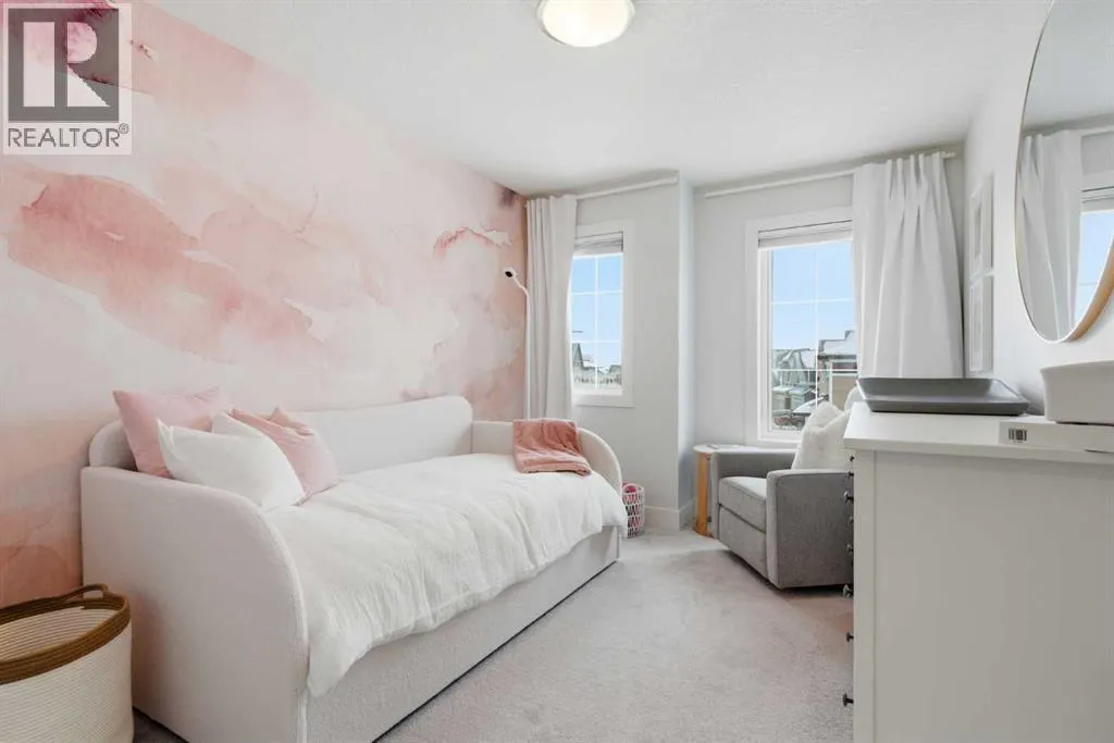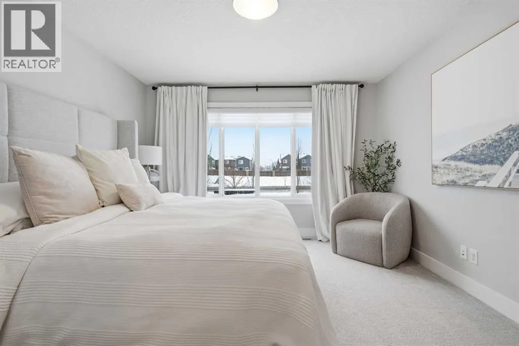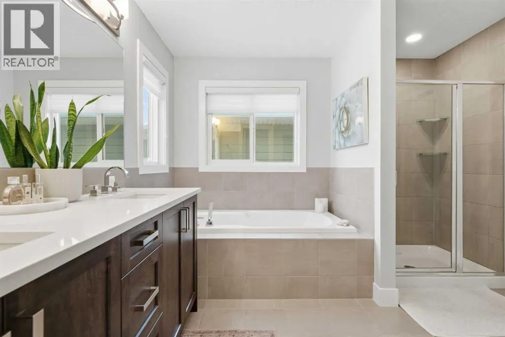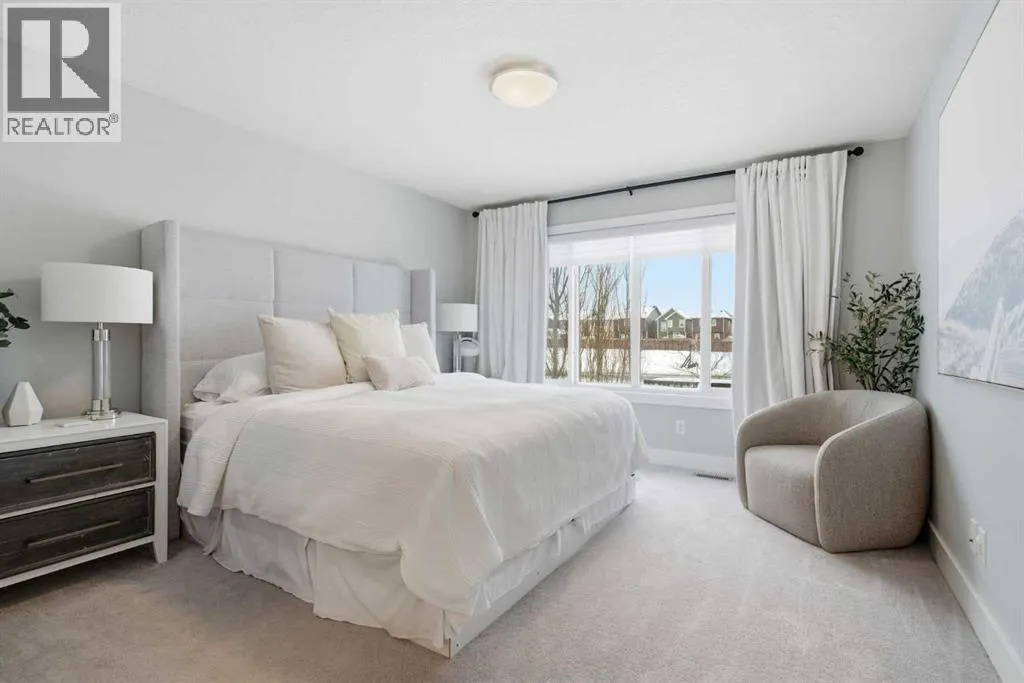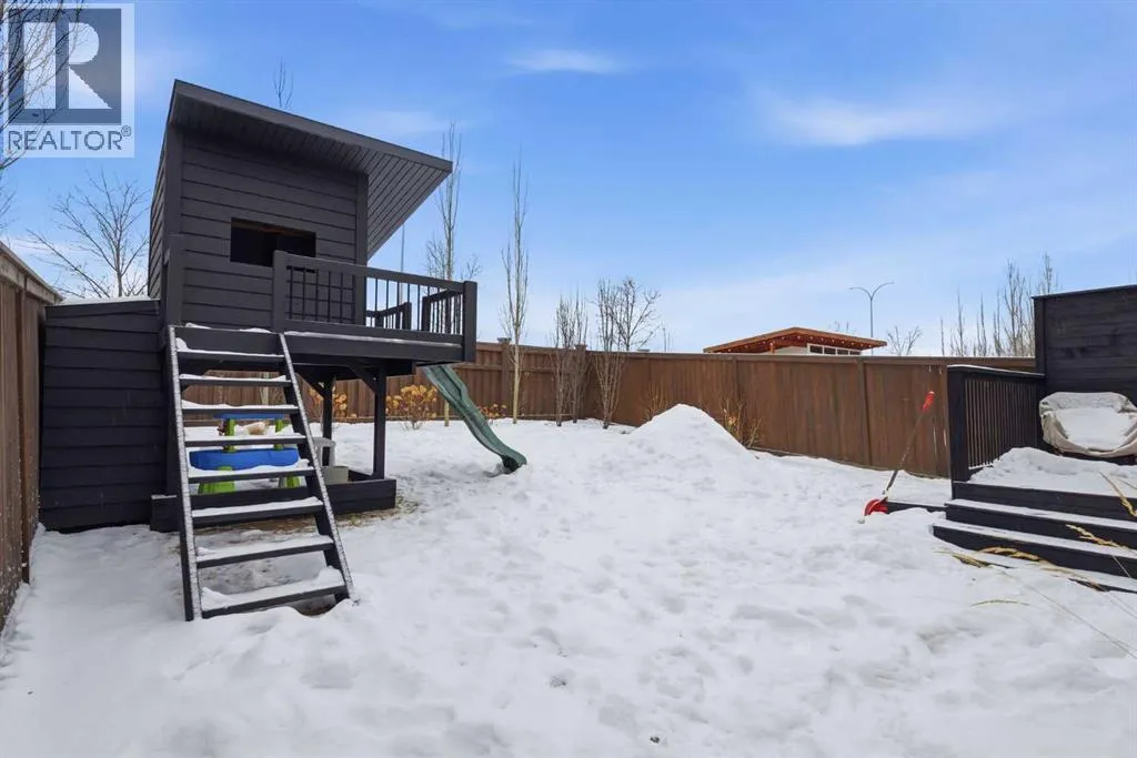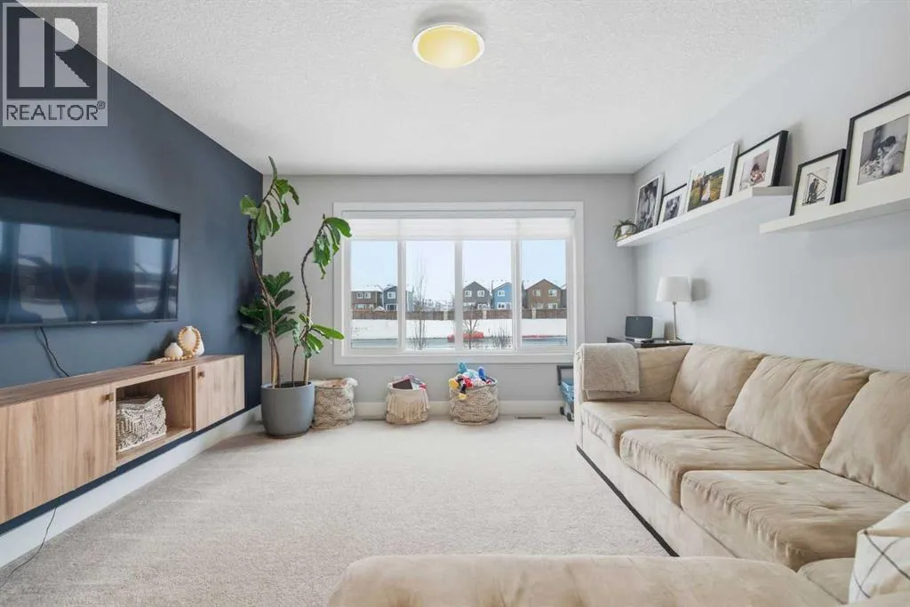 Welcome to beautiful Mahogany, one of Calgaryâs most sought-after, family-friendly lake communities. This thoughtfully updated and well-maintained two-storey home reflects true pride of ownership and offers a functional layout with generous living space, making it an excellent option for families. The main floor features a kitchen with dark maple cabinetry, white quartz countertops, full counter-to-ceiling tile backsplash, and a gas range with hood fan. Additional highlights include 9 ft ceilings, upgraded baseboards, central A/C, Hunter Douglas window coverings, and a gas fireplace. Upstairs, the primary bedroom includes a spacious ensuite with raised quartz countertops. Two additional bedrooms and upper-floor laundry complete the level. The basement has been professionally developed and adds a fourth bedroom, a full bathroom, and a large rec room. Outside, the west-facing backyard is fully landscaped and includes a natural gas line on the deck. An extended driveway and concrete walkway provide convenient backyard access. Residents enjoy year-round lake access with private beach use, clubhouse amenities, and skating rinks in the winter months. Located close to schools, playgrounds, and everyday amenities, this home is a great opportunity to live in one of Calgaryâs premier lake communities. (id:27476)