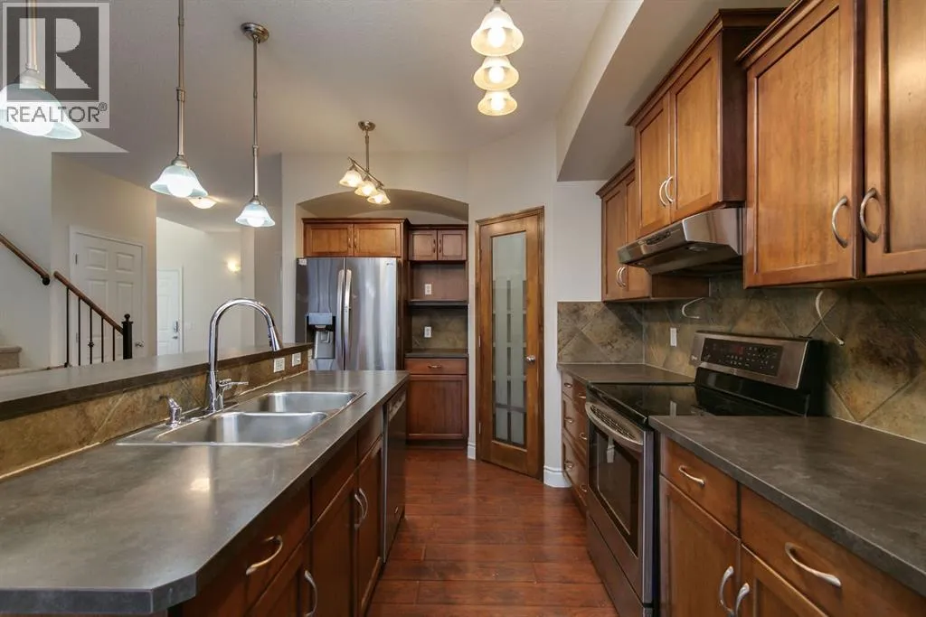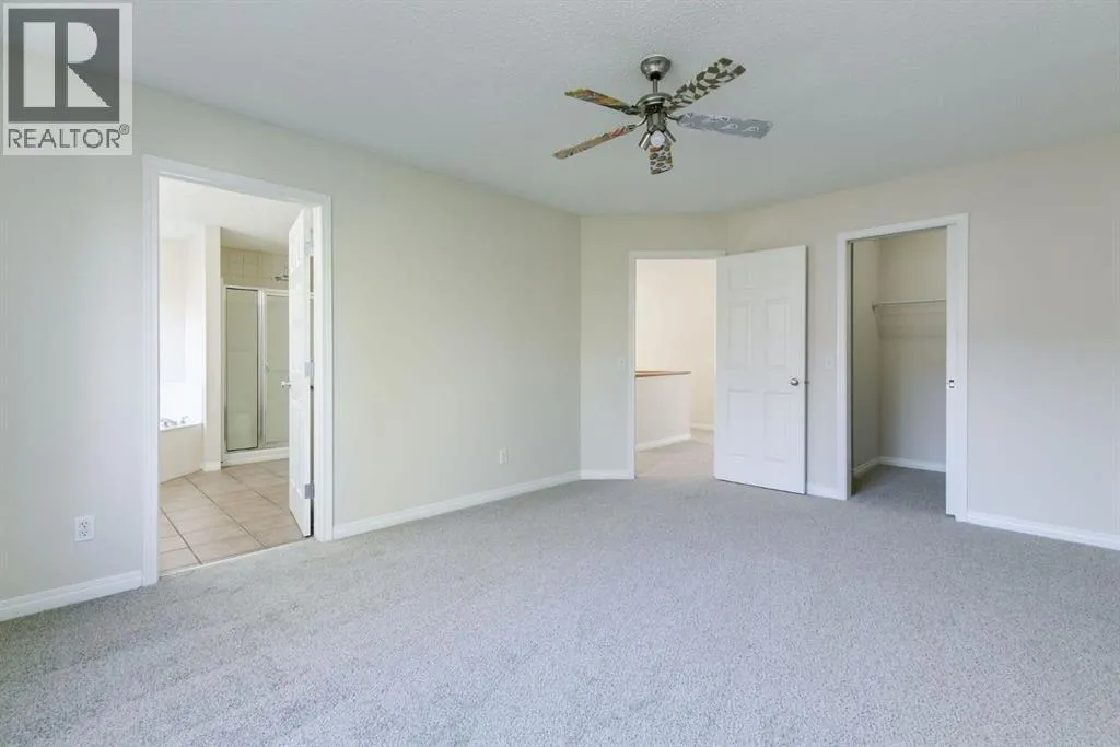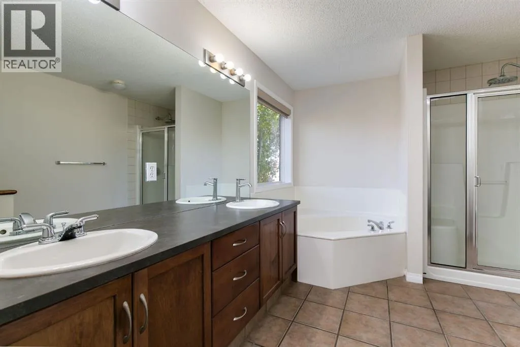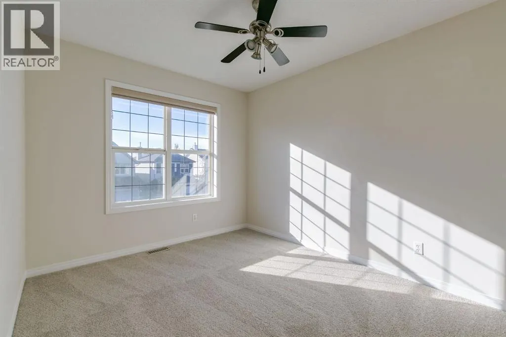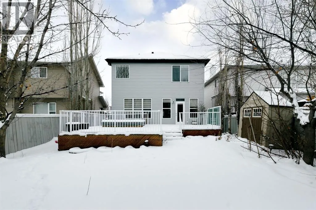 Awesome location on a quiet cul-de-sac, 2 doors away from a park & playground area, plus walking paths, shopping & schools nearby! Easy access to Stoney Trail and 52nd St. too! A wonderful family home with spacious rooms on all 3 floors, with 4 bedrooms & 3 1/2 bathrooms....plenty of room for large families!! Main floor has the much sought after open floorplan, with 9 ' ceilings, high end laminate flooring & a full width wall of windows across the back to enjoy the views of the peaceful, oversized backyard....no "0" lot line, cookie cutter backyard here!! A great kitchen w/lots of rich cinnamon stained maple cabinetry, dark grey countertops, stainless steel appliances and a super sized pantry [to hold all the things!]... a handy laundry/mud room is right around the corner, just off the garage entry. The spacious living room has a gas fireplace to cozy up to....Wrought iron railing w/a wood cap on the stairs gives it an upscale look, along with the upper bonus room/office space [easily turned into an extra bedroom, if needed]. The grand Primary bedroom comes complete with a walk-in closet & a large ensuite w/double sinks, a 4' walk-in shower & a corner soaker tub. One of the kids' rooms also has a walk-in closet! Downstairs holds a large flex space, great for a family room, games room, exercise room, etc...also has a 3 pc bath plus a huge bedroom w/ another walk-in closet & a large window. Plus there's lots of storage room too!! AND there is a possibility for a convenient side entry, if needed. The oversized backyard is a wonderful space to enjoy, with two separate deck areas, one right by the sunken hot tub, lots of big trees for privacy, a maintenance free lawn area, decorative rock areas and a convenient shed... RECENT UPDATES: New shingles in Oct. 2021, newer HWT, approx 5 yrs old, PLUS freshly painted on both the main & upper levels, brand new carpet throughout, & even 3 brand new toilets! Definitely a must see in this great location in the great neig hborhood of Copperfield! (id:27476)