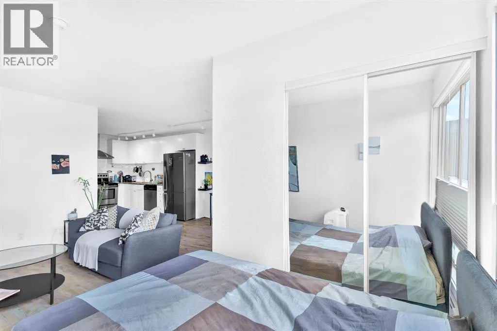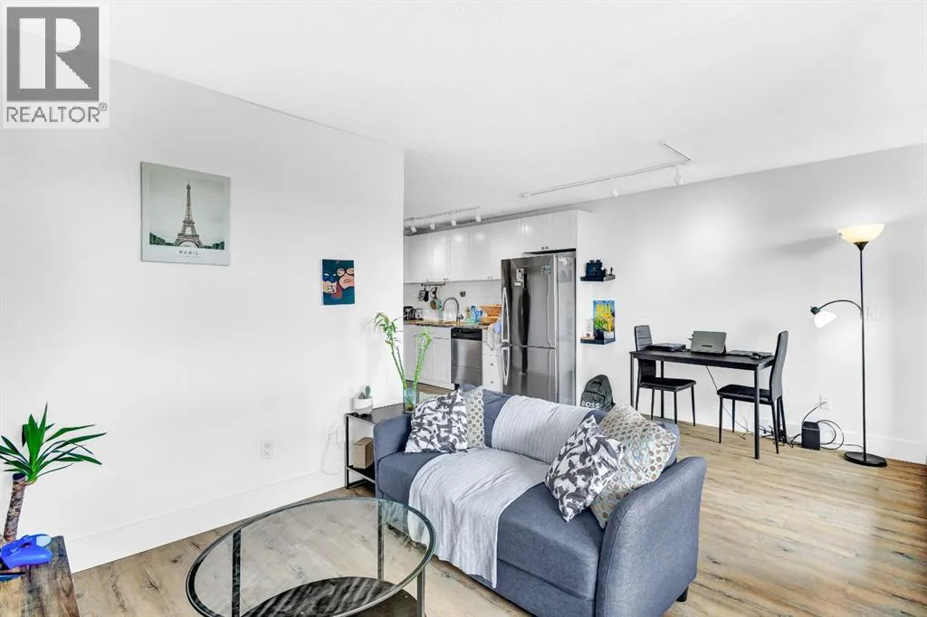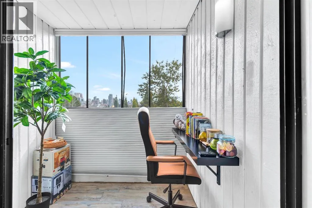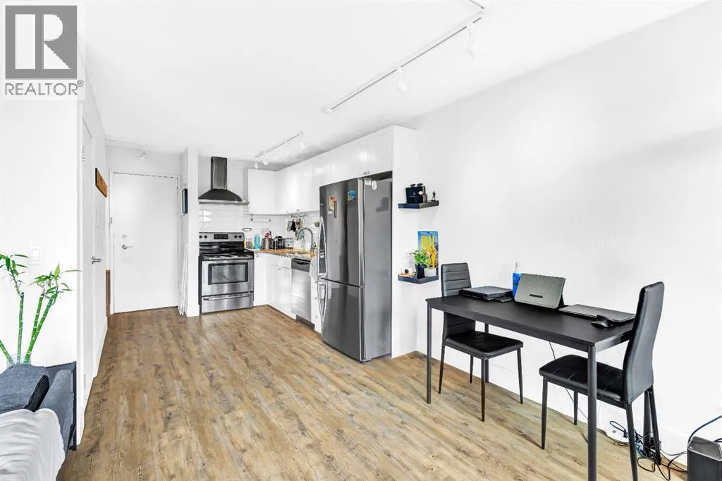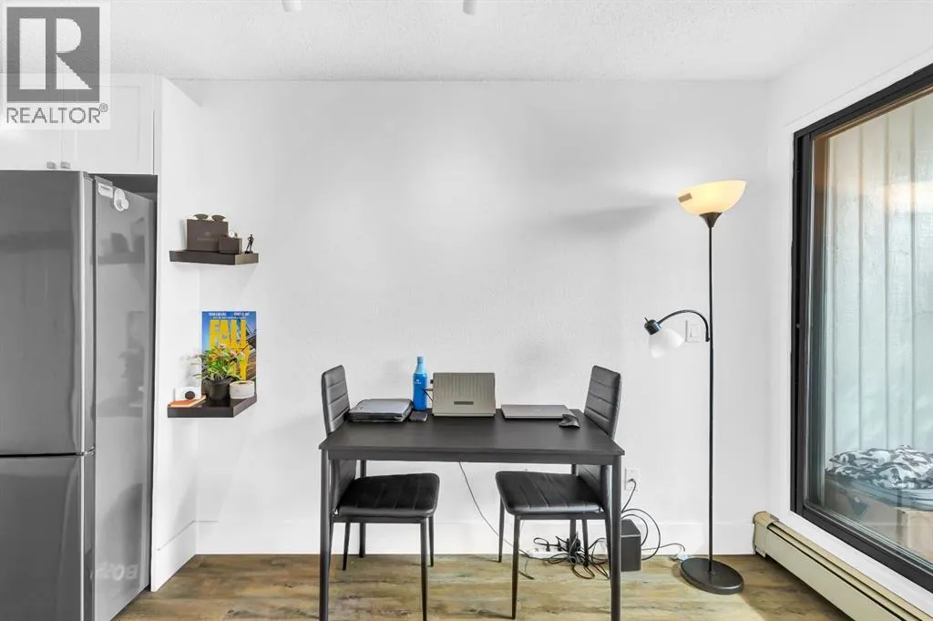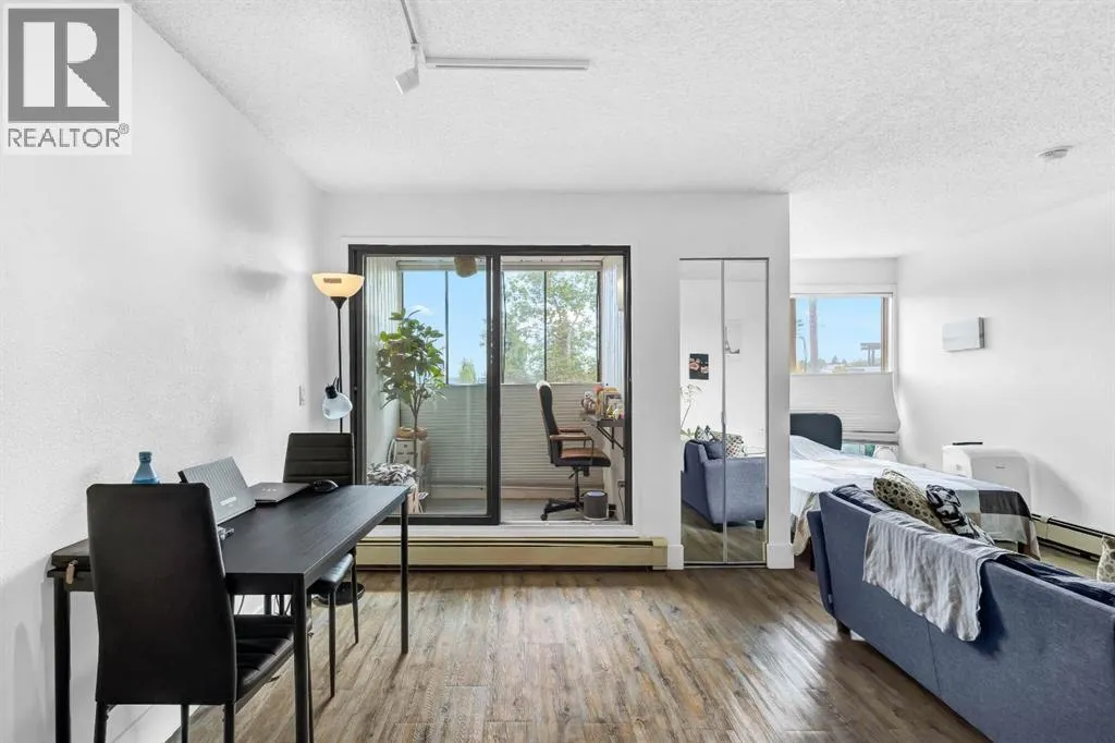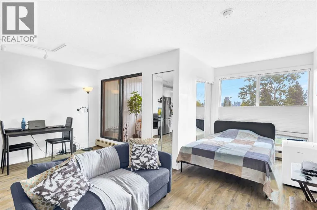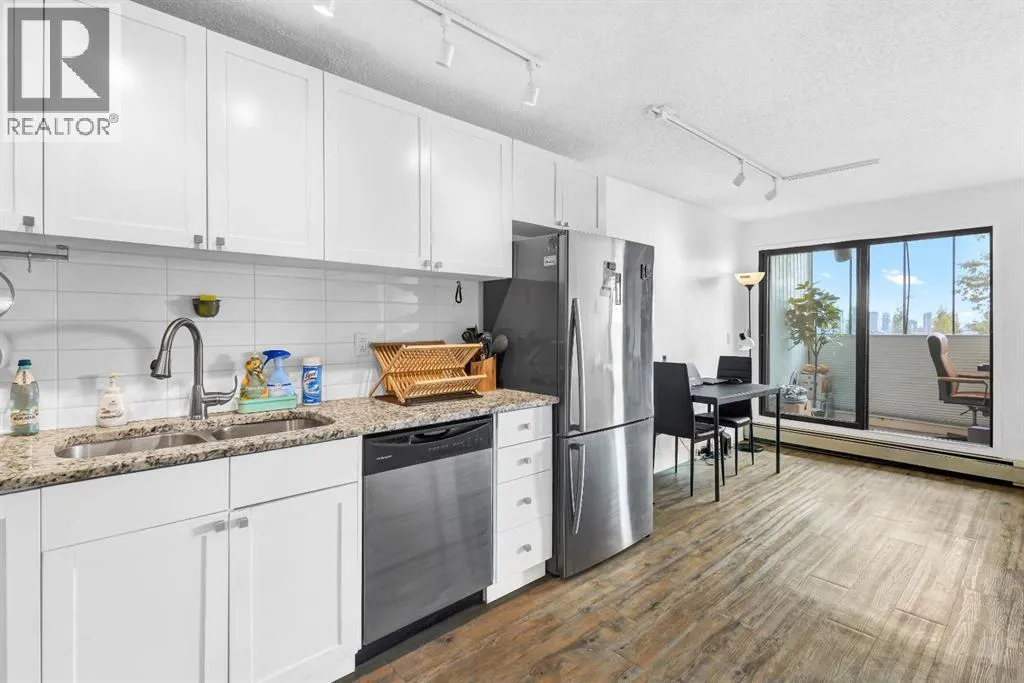 Welcome to this bright, renovated, move in ready condo in the Bankview community with downtown views and an excellent inner-city location just steps from 17th Avenue and minutes to downtown. Upon entering the unit, the updated kitchen is located to your left, while to the right youâll find convenient IN-SUITE LAUNDRY and a storage area. Continuing into the home, the open-concept layout features a 4-piece bathroom on the right and an open dining area on the left. Straight ahead is the fully enclosed 70sqft balcony, which doubles as a flex room and works perfectly as a home office, offering beautiful views of downtown Calgary (not included in measurements). Adjacent to the dining area is an open living space that also accommodates the bedroom area, creating a functional and versatile layout. Vinyl plank flooring runs throughout, and large windows provide plenty of natural light. Located in a well-managed building with CONDO FEES UNDER $400, this home is set in one of Calgaryâs most beautiful and established inner-city communities. Close to parks, schools, downtown, and just a 15-minute walk to the Sunalta CTrain. This perfect move-in ready property also comes with the option to include all existing furniture at no additional cost! (id:27476)