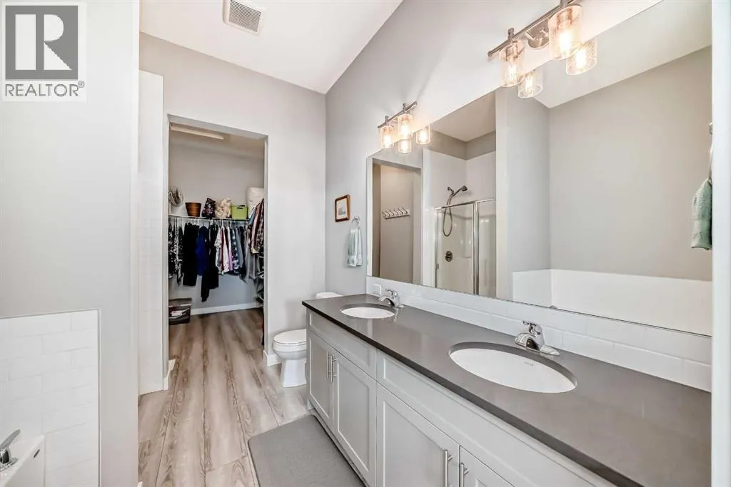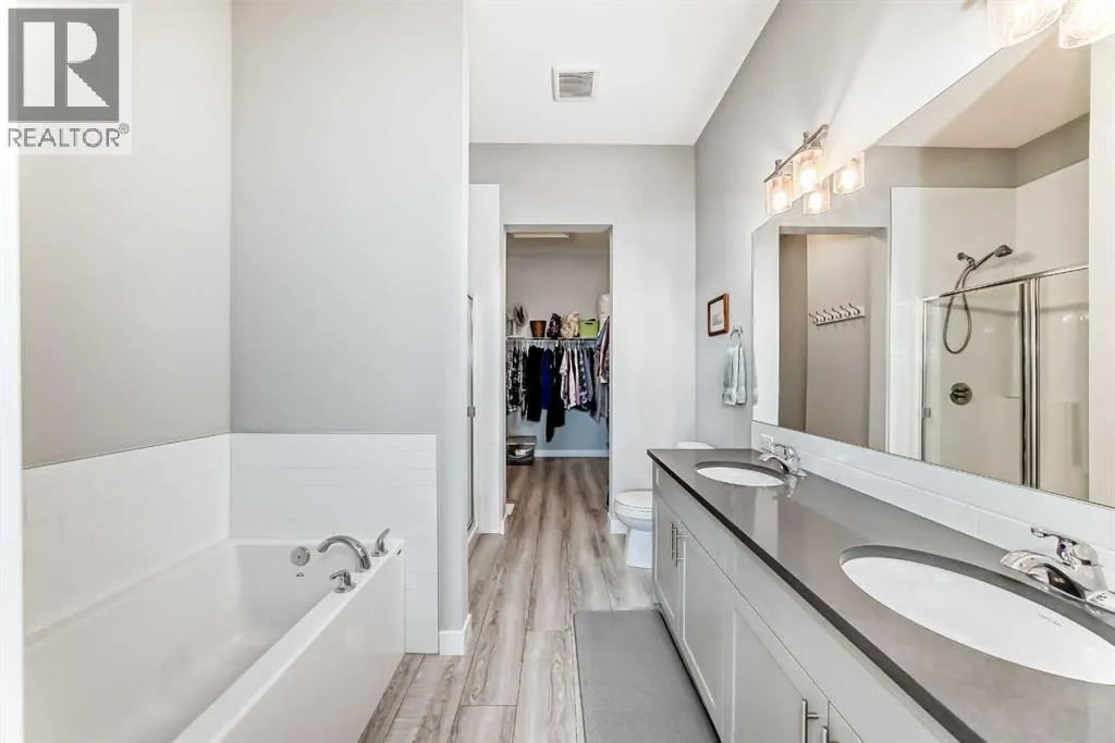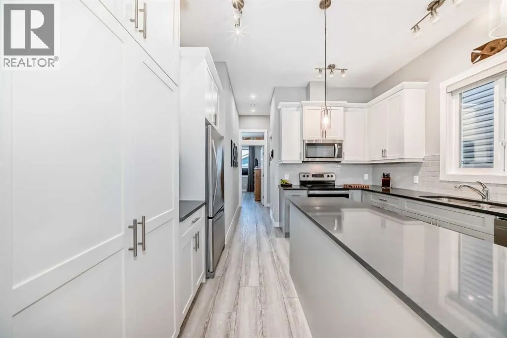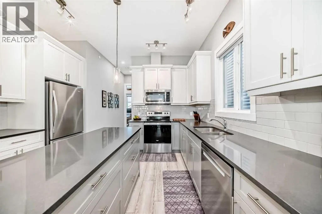 OPEN HOUSE SAT DEC 20TH 12-2PM **WELCOME HOME!** Step inside this beautifully upgraded and meticulously maintained bungalow, where pride of ownership is immediately evident. Nestled in the highly desirable NW Livingston community, this immaculate 3-bedroom, 2.5-bathroom home combines modern elegance with everyday functionality. The exterior boasts durable *Hardie Board Siding* and *Class 4 shingles*, offering extra protection against hailstorms. Triple-pane windows and custom *Hunter Douglas blinds* add both style and energy efficiency, ensuring year-round comfort. Inside, the main level features soaring 10â ceilings, luxury vinyl plank flooring, and an open-concept design that effortlessly connects the living room, dining area, and kitchenâcreating a bright, airy space perfect for both entertaining and day-to-day living. At the heart of the home is the chef-inspired kitchen, complete with sleek two-toned cabinetry, gleaming *quartz countertops*, and a large central island. Itâs fully equipped with stainless steel appliances, a microwave/hood fan combo, abundant cabinetry, and top-notch lighting that makes meal prep and gathering a true pleasure. The spacious primary bedroom is a private retreat, featuring a luxurious 5-piece ensuite with dual vanities, a deep soaker tub, and a walk-in closet. Large windows flood the room with natural light, enhancing the peaceful ambiance. A back boot room and laundry area, as well as a stylish 2-piece powder room, complete the main floor. The professionally developed lower level offers two additional bedroomsâeach with walk-in closetsâalong with a modern 4-piece bathroom. High 9â ceilings and a cozy family room with a gas fireplace provide the perfect place to unwind. Thoughtful lighting and plenty of storage make this space both functional and inviting. You'll also find a Heat Recovery Ventilator (HRV). A *double detached garage* (19'9"x19') offers ample parking and storage, and the property enjoys the convenience of a paved back alley. Located just minutes from Stoney Trail and Deerfoot Trail, this home offers quick access to downtown, shopping, entertainment, and more. Donât miss the chance to make this dream home your own! **Call your favorite REALTOR® today to book your private showing!** (id:27476)