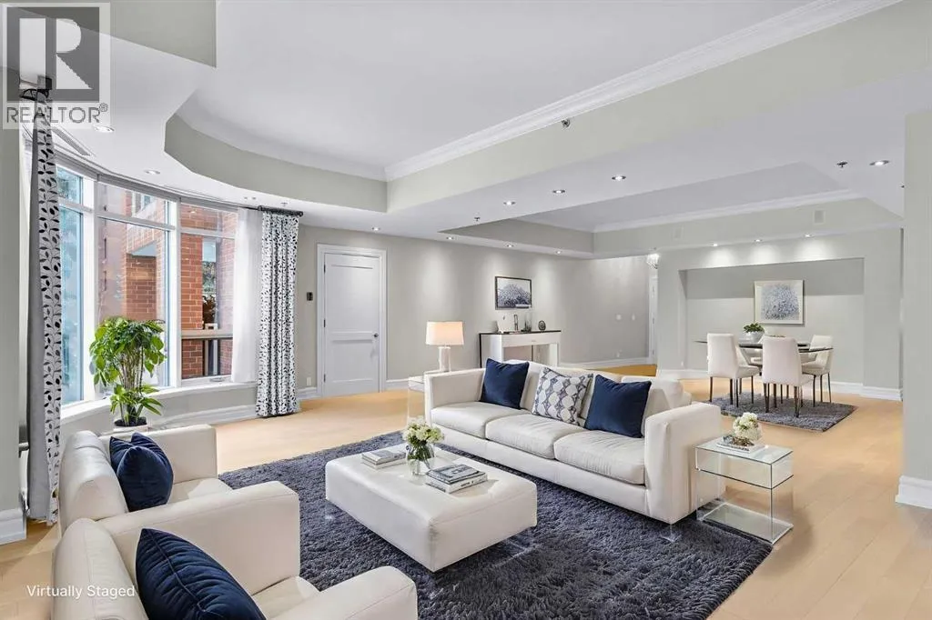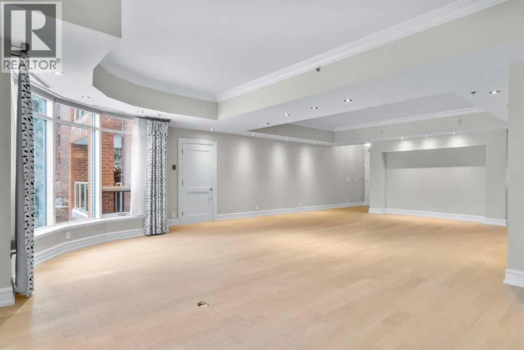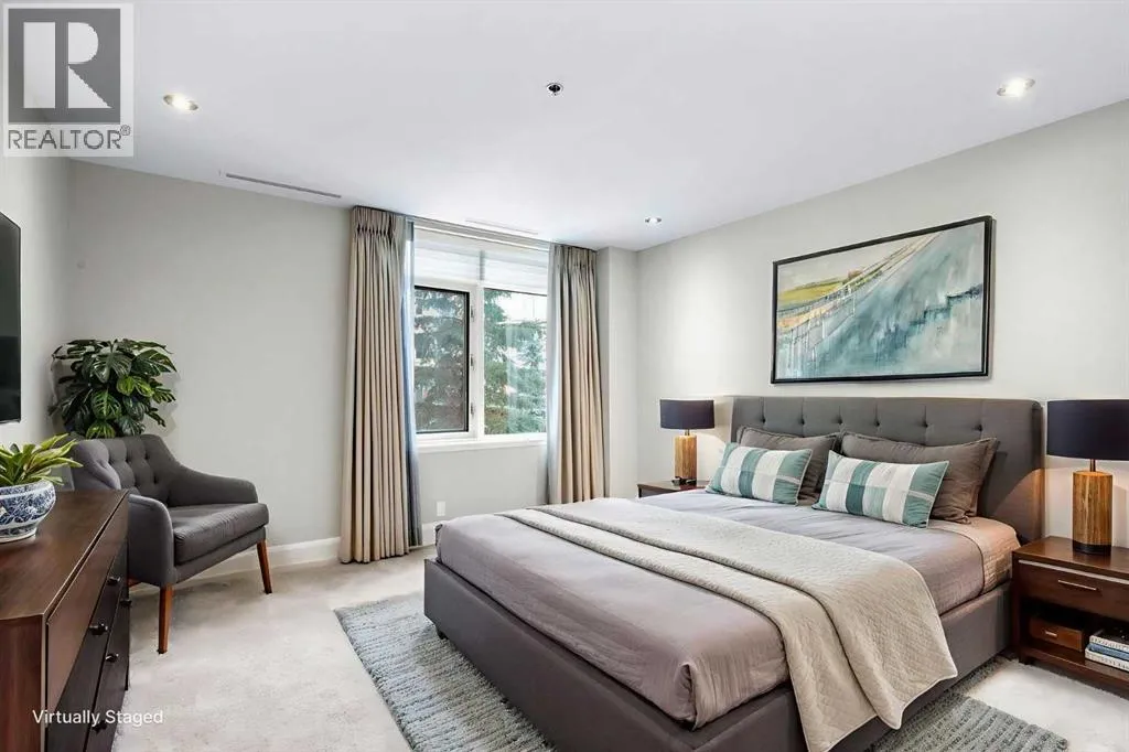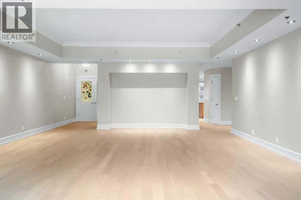 For those who value excellence, this distinctive executive residence in the Princeton Grand, a name synonymous with exclusivity, privacy, and luxury, is set amidst the most desirable residential enclave in Eau Claire. Your lifestyle will appreciate the opulent convenience of a private in-suite elevator coupled with exceptional amenities including 24 hour dedicated concierge, temperature controlled wine room with private storage lockers & tasting room, events area with full kitchen, TVâs and terrace, 2 private guest suites, a fully equipped fitness centre, yoga centre, steam room, dry sauna, showers, change room with lockers, full kitchen & bathroom, full service U/G car wash bay, bicycle storage, and a separate freight elevator. The beautifully manicured grounds create a private park-like setting, nestled along the south bank of the Bow River next to beautiful Prince's Island Park and incredible Pathway System! Walking distance to office towers, shopping, entertainment, restaurants, +15 skywalk system, transportation and the LRT, Peace Bridge, Kensington Shops and Calgary's vibrant City Center. Presenting a rare offering of 2892 sq.ft. of harmoniously appointed living space displaying the highest level of craftsmanship and luxurious interior tailoring, with pride of ownership complimenting the timeless prairie palette that flows seamlessly throughout the integrated floor plan that embraces the stunning backdrop of the Bow River. This exceptional luxury residence features a private elevator for the ultimate in convenience which opens to your stylish and spacious foyer, and then presents an exceptionally open entertaining floor plan, large floor to ceiling windows that provide exceptional natural light, with the open concept living/dining areas overlooking the private treed views to the Bow River. The master quarters overlooks the river and offers a large walk-in closet, relaxing, sensual 5 piece spa inspired ensuite with heated floors, a convenient office area and d irect access to the expansive north terrace overlooking the Bow River and Prince's Island. The very private second bedroom is totally secluded from the living areas. The bright professional-grade gourmet kitchen was designed as the epicenter of the space with direct access to the south terrace, coupled with the north terrace can accommodate gatherings of all sizes. This peaceful and park-like setting offers two spectacular and spacious outdoor living spaces, a stunning 680 sq ft covered deck overlooking the mature trees and Bow River to the north, and a second sunny south facing covered balcony off the kitchen & family room, great for year round BBQs. An exceptional floor plan that's perfect for entertaining. Home includes built-in speaker system, vacuum system, a wine fridge, 1 gas fireplace, high ceilings, large bright windows, 2 titled parking stalls and titled storage locker. Enjoy your refined lifestyle against a backdrop of luxury services, finishes and accoutrements in the Princeton Grand. (id:27476)