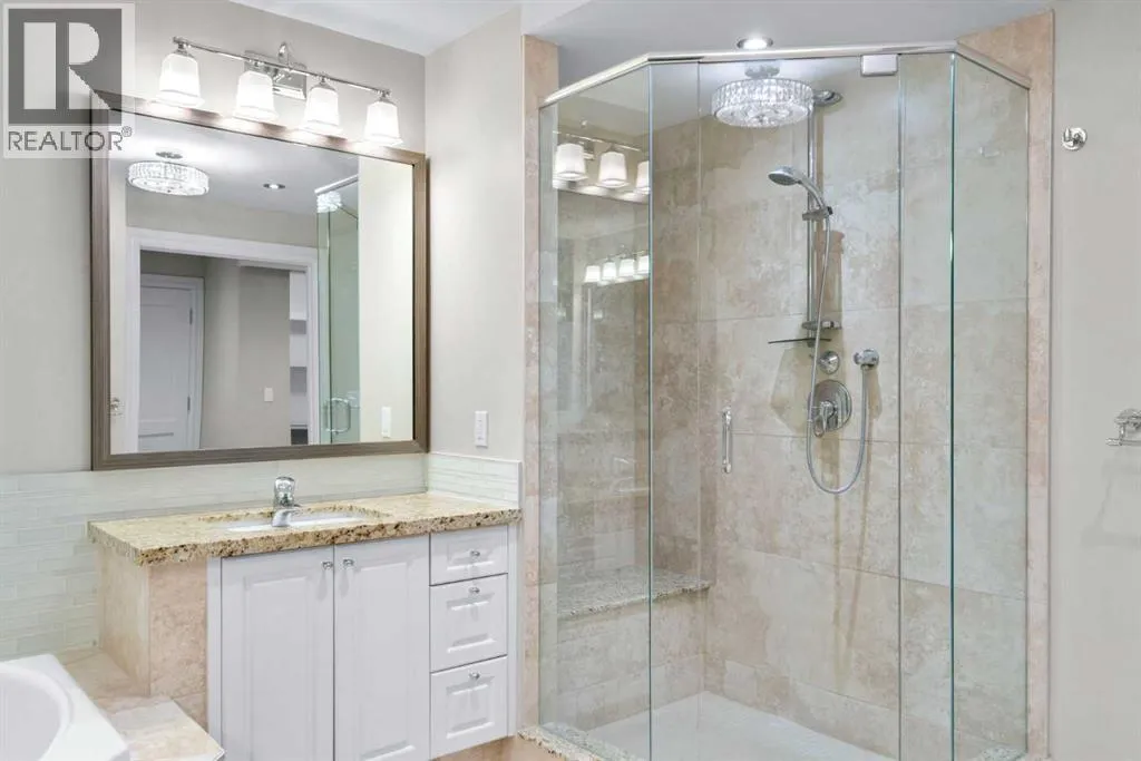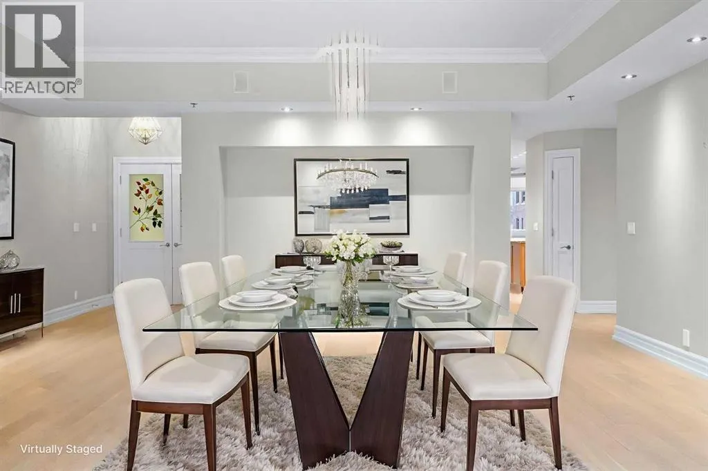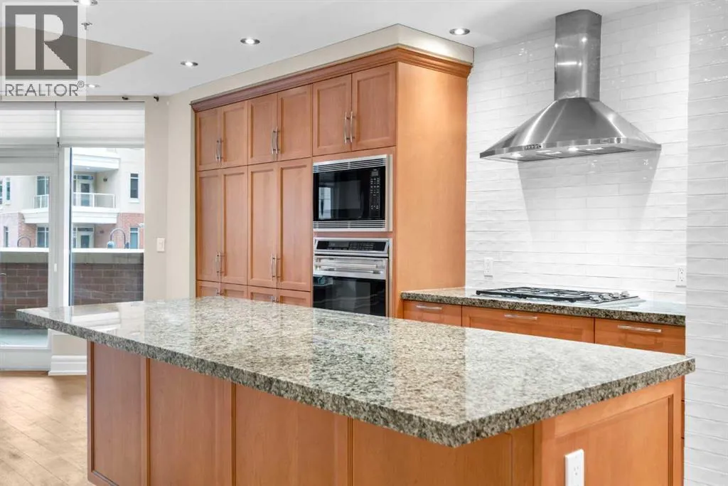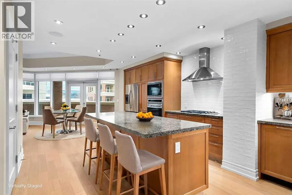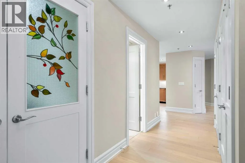 For those who value excellence, this distinctive executive residence in the Princeton Grand, a name synonymous with exclusivity, privacy, and luxury, is set amidst the most desirable residential enclave in Eau Claire. Your lifestyle will appreciate the opulent convenience of a private in-suite elevator coupled with exceptional amenities including 24 hour dedicated concierge, temperature controlled wine room with private storage lockers & tasting room, events area with full kitchen, TVâs and terrace, 2 private guest suites, a fully equipped fitness centre, yoga centre, steam room, dry sauna, showers, change room with lockers, full kitchen & bathroom, full service U/G car wash bay, bicycle storage, and a separate freight elevator. The beautifully manicured grounds create a private park-like setting, nestled along the south bank of the Bow River next to beautiful Prince's Island Park and incredible Pathway System! Walking distance to office towers, shopping, entertainment, restaurants, +15 skywalk system, transportation and the LRT, Peace Bridge, Kensington Shops and Calgary's vibrant City Center. Presenting a rare offering of 2892 sq.ft. of harmoniously appointed living space displaying the highest level of craftsmanship and luxurious interior tailoring, with pride of ownership complimenting the timeless prairie palette that flows seamlessly throughout the integrated floor plan that embraces the stunning backdrop of the Bow River. This exceptional luxury residence features a private elevator for the ultimate in convenience which opens to your stylish and spacious foyer, and then presents an exceptionally open entertaining floor plan, large floor to ceiling windows that provide exceptional natural light, with the open concept living/dining areas overlooking the private treed views to the Bow River. The master quarters overlooks the river and offers a large walk-in closet, relaxing, sensual 5 piece spa inspired ensuite with heated floors, a convenient office area and d irect access to the expansive north terrace overlooking the Bow River and Prince's Island. The very private second bedroom is totally secluded from the living areas. The bright professional-grade gourmet kitchen was designed as the epicenter of the space with direct access to the south terrace, coupled with the north terrace can accommodate gatherings of all sizes. This peaceful and park-like setting offers two spectacular and spacious outdoor living spaces, a stunning 680 sq ft covered deck overlooking the mature trees and Bow River to the north, and a second sunny south facing covered balcony off the kitchen & family room, great for year round BBQs. An exceptional floor plan that's perfect for entertaining. Home includes built-in speaker system, vacuum system, a wine fridge, 1 gas fireplace, high ceilings, large bright windows, 2 titled parking stalls and titled storage locker. Enjoy your refined lifestyle against a backdrop of luxury services, finishes and accoutrements in the Princeton Grand. (id:27476)