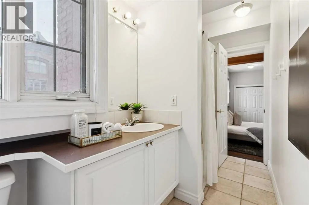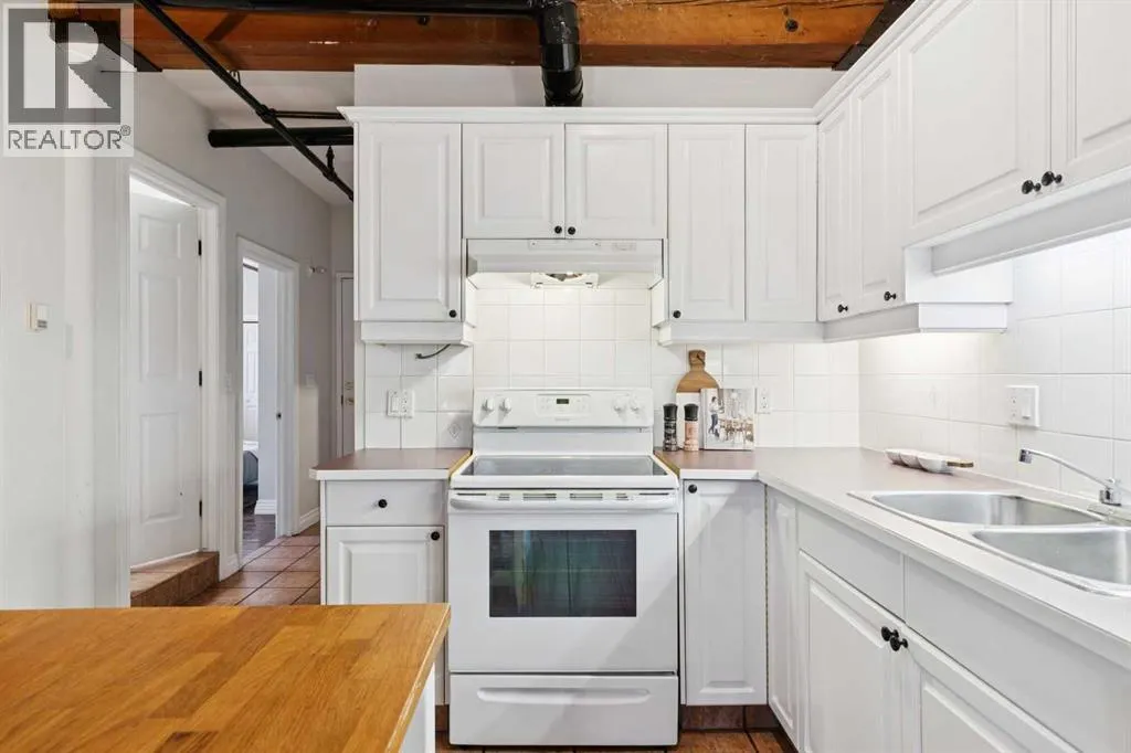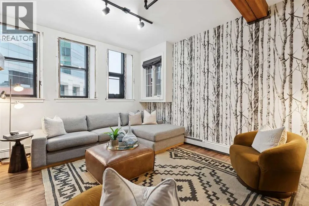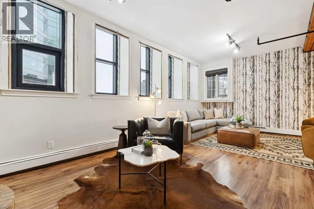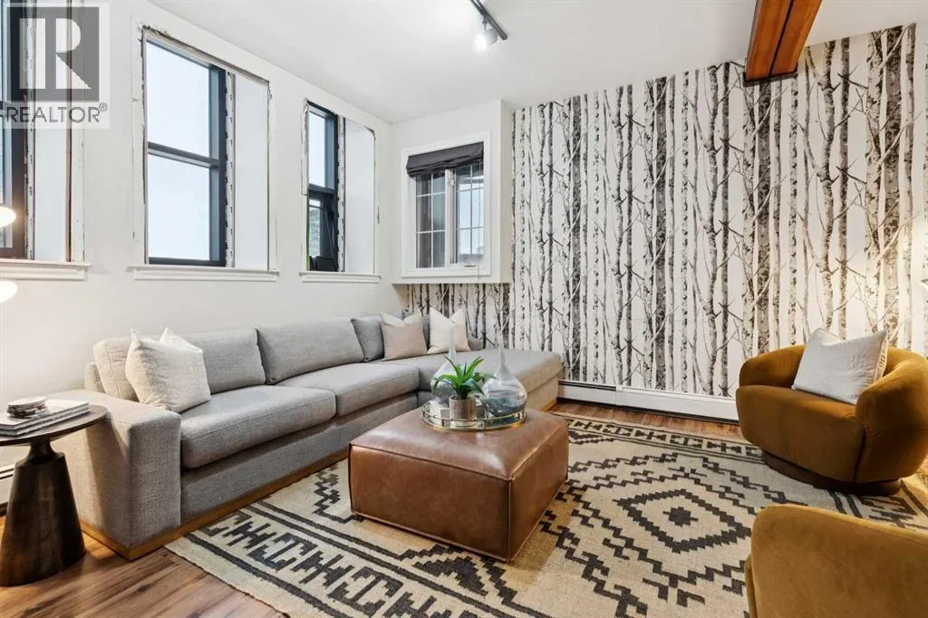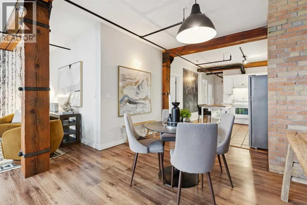 Nestled in the heart of Calgary's Beltline, this extraordinary red brick loft offers a rare opportunity to own a piece of the cityâs rich history. Constructed in 1912 for the Imperial Tobacco Company by the renowned A. Dale and Associates, the architectural firm behind the iconic Calgary Tower, this building underwent a stunning conversion to lofts in 1995. For the first time ever, these timeless residences are available for sale, blending historical charm with modern sophistication. Offering over 1,100 SqFt, this expansive loft exudes character with its original brick walls, exposed wood beams, and soaring ceilings. A wall of windows floods the space with natural light, creating a warm and inviting ambiance reminiscent of a classic New York City loft. The open-concept layout is thoughtfully designed, offering endless possibilities for both living and working. A private den provides the perfect space for a home or business office, while two generously sized bedrooms are complemented by a five-piece Jack and Jill bathroom plus there is an additional three-piece bathroom. The galley-style kitchen features freshly sprayed maple cabinetry with under mount lighting, moveable island, and a seamless flow into the dining and living areas. Whether you envision this space as your personal sanctuary or a dynamic live/work environment, the possibilities are as limitless as your imagination. Beyond the loft itself, the building offers an array of amenities, including a gym, a games room, and a rooftop patio with breathtaking views of the Downtown Skyline. A titled underground parking spot is also included, ensuring convenience in this vibrant urban setting. This is more than a home; itâs a lifestyle. A rare blend of history, elegance, and modernity, this loft is a once-in-a-lifetime opportunity to own a truly unique piece of Calgaryâs architectural heritage. (id:27476)