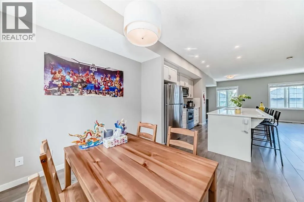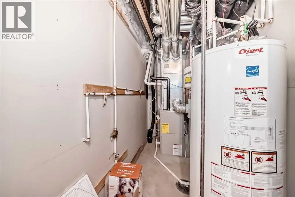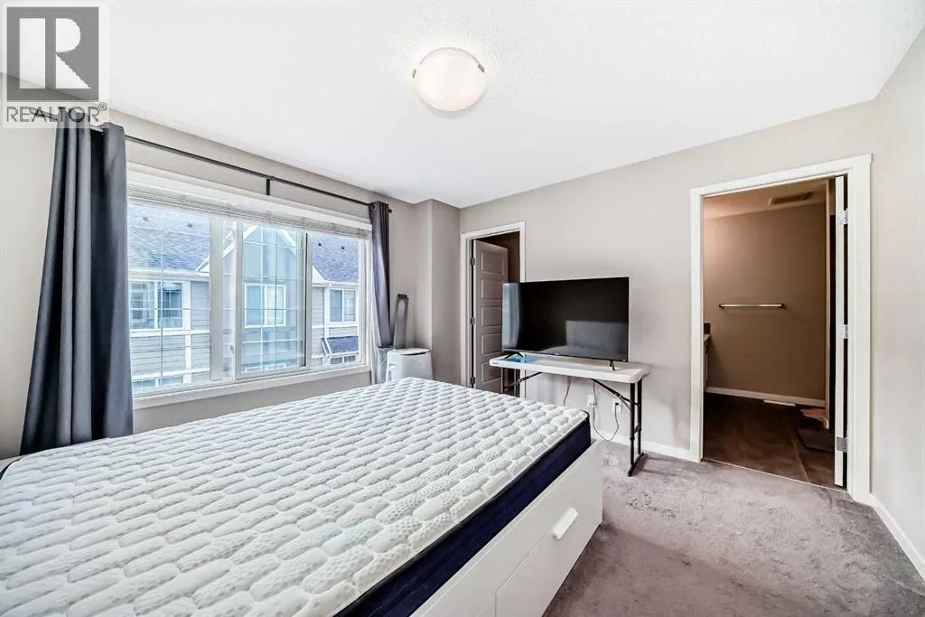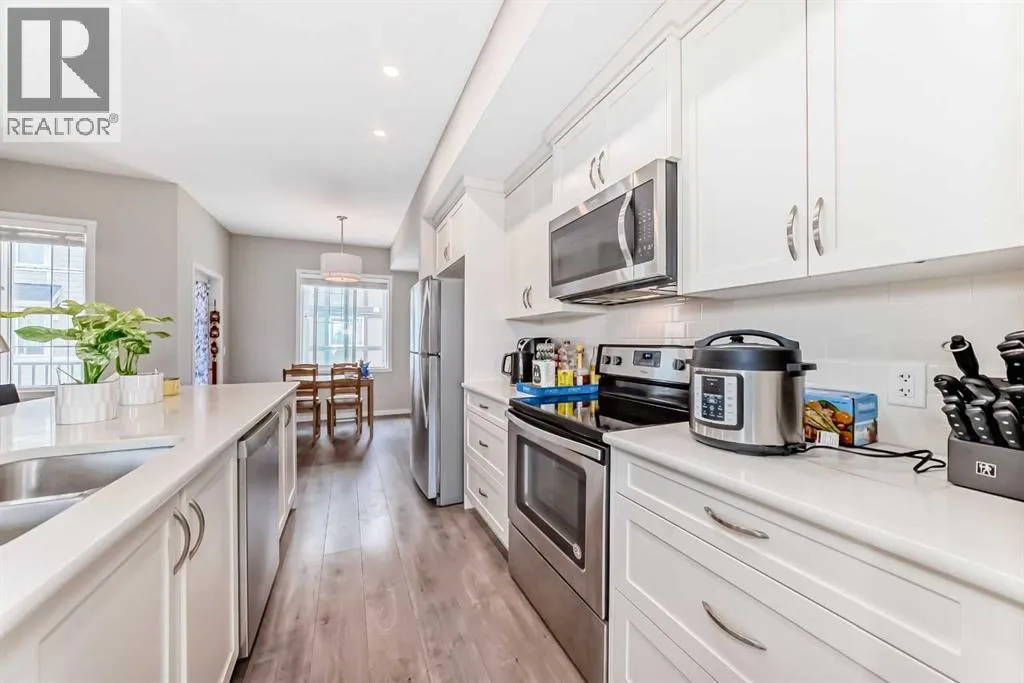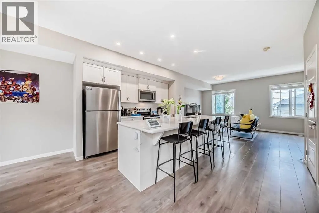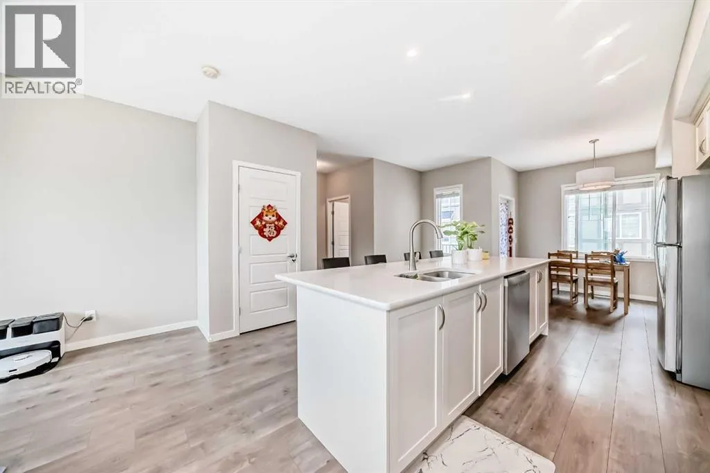 Welcome to your beautiful townhome!As you park in the warm and spacious double garage, youâll step into a welcoming foyer complete with a large closetâperfect for storing coats, shoes, and guests' belongings. This entry level also includes a versatile room ideal for a home office, gym, or cozy den, along with a convenient utility room.Upstairs, the main living area offers an expansive and bright open-concept space. Enjoy warm summer evenings on the attached balcony just off the generous living room. The heart of the home is the stunning kitchen, featuring ceiling-height cabinetry, sleek stainless-steel appliances, and a large white quartz islandâperfect for both meal prep and casual dining. Adjacent to the kitchen, youâll find a spacious formal dining area and an inviting living room, perfect for entertaining. A thoughtfully placed powder room adds convenience and privacy to this level.On the upper floor, youâll find two well-sized bedrooms with ample closet spaceâideal for a growing familyâas well as a conveniently located laundry area. The luxurious primary suite features large windows with custom window treatments, a massive walk-in closet with built-in shelving, and a spa-like ensuite with double sinks, quartz countertops, a separate toilet area, and a spacious 5-foot walk-in shower. An additional four-piece bathroom serves the secondary bedrooms. Please book your showing as soon as possible. (id:27476)