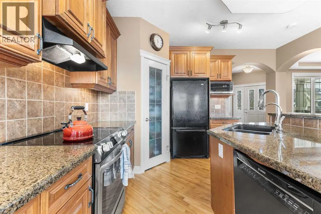 Very rarely do you find a home with so many exceptional features â FILLED WITH NATURAL LIGHT â The Great Room, Kitchen and Nook have 9-foot ceilings and are surrounded by 7 east, south and west-facing knee-to-ceiling windows â DIRECT MOUNTAIN VIEWS â Captivating vistas of the Rockies from the deck, main & 2nd floors â SOUTH-FACING WALKOUT BASEMENT â 9-foot ceilings professionally developed â GIANT 3 CAR GARAGE â Loads of space for your vehicles, bikes and storage. -- This attractive and appealing 3 + 1 bedroom home is nestled in the incomparable community of Discovery Ridge. In a short stroll youâre in GRIFFITH WOODS â the giant 220-acre natural park thatâs filled with bird songs, walking trails, river streams, stepping stones, crystal springs and towering forests. When you choose Discovery, NATURE IS YOUR NEIGHBOUR! -- The BRIGHT & WELCOMING MAIN FLOOR of this beautiful home features the airy and spacious Great Room with gas burning fireplace, sunny nook and open kitchen with rich cherry wood cabinetry and generous-sized island. Youâll enjoy the elegant dining room with a two-tiered ceiling and decorative arches. There is also a generous sized foyer, private powder room, and large mud room with a bench, built-in closets and plenty of storage space. -- 3 BEDROOMS, BONUS ROOM & LAUNDRY UPSTAIRS â The spacious Master has plenty of room for a king-sized bedroom suite â and has south and west-facing windows to see the morning sun on the mountains. The Master Ensuite is a true oasis with a huge soaker tub for two, steam shower, dual sinks, private water closet and skylight. Upstairs there are two additional quiet and comfortable bedrooms and 4-piece bath. The peaceful and serene BONUS ROOM is the perfect place to hang out, watch a movie and gaze at the rugged beauty of the Rockies. Topping off the upstairs is the extremely convenient Laundry station â no need to drag all your sheets and clothes up and down the stairs. -- The BRIGHT AND SPACIOUS WALKOUT BASEMENT features 9-foot ceilings, radiant in-floor heating, and huge west and south-facing windows in the large open area that covers the entire width of the house. Downstairs there is also a 4th bedroom, 4-piece bath, large Storage room, and Utility room with furnace and dual hot water tanks. The home also has Central Air Conditioning. -- PRIVATE, SUN-DRENCHED BACKYARD -- The BACK DECK has commanding views of the neighbourhood park, rolling foothills, the majesty of the Rockies and the vibrant Alberta sky. Itâs a perfect spot for entertaining or just enjoying beautiful summer evenings. Downstairs, the Walkout door opens onto a private covered cobblestone patio. Once outside, youâll love the sunny, south-facing, professionally landscaped back and side yards with mature trees and an attractive variety of perennials. THIS HOME HAS SO MUCH TO OFFER. BOOK YOUR SHOWING TODAY. (id:27476)