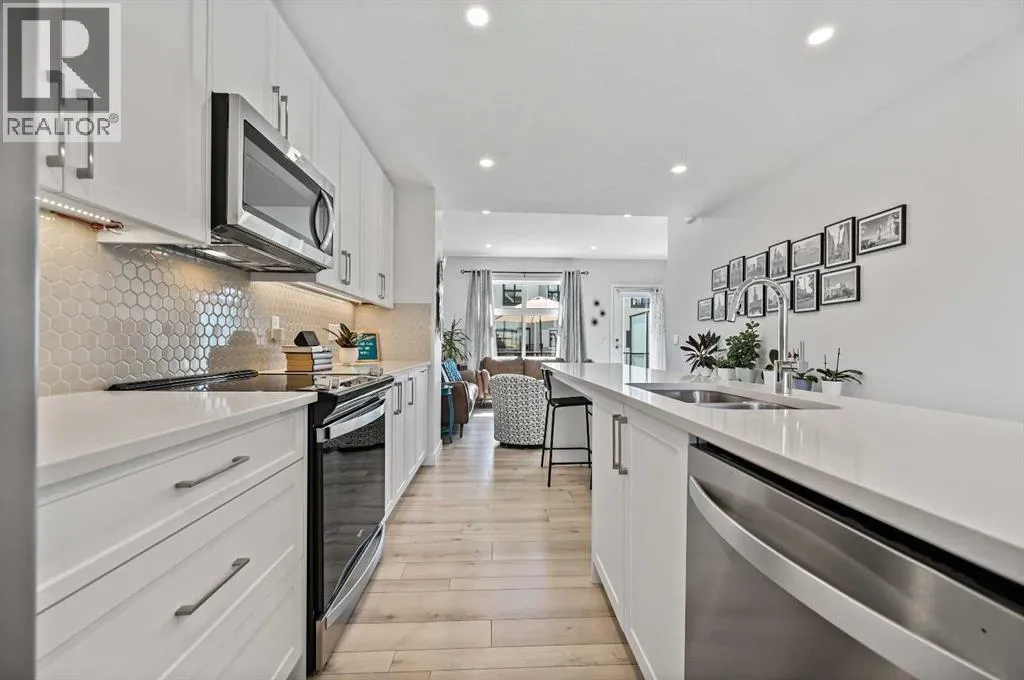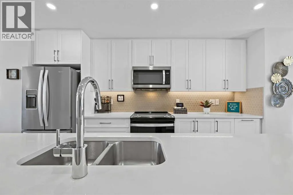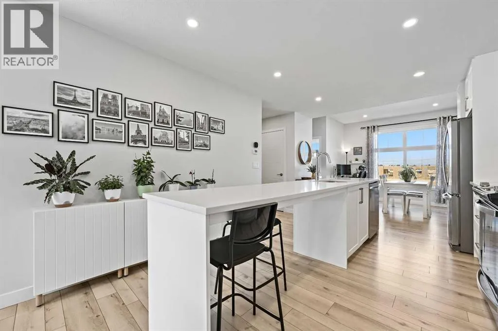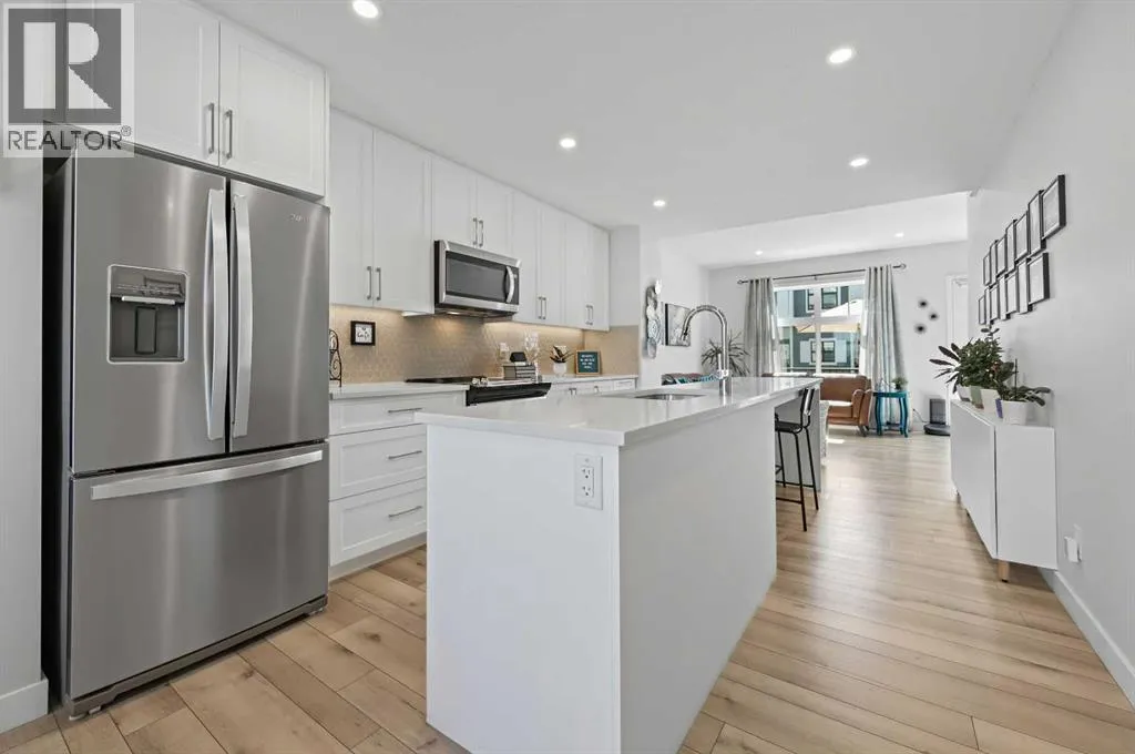 Welcome to this stunning 3-level townhome where modern design meets natural beauty, located steps from Quarry Park and surrounded by over 70,000 sq. ft. of lush community gardens. Offering 3 SPACIOUS BEDROOMS, 2.5 BATHS, and an A DOUBLE ATTACHED HEATED TANDEM GARAGE with rough-in for EV charging, this home blends convenience, style, and sustainability. Step inside and be impressed by the bright, open-concept floor plan with 9-foot ceilings, oversized windows, and a seamless flow from living to dining. The gourmet kitchen showcases quartz countertops, ceiling-height cabinetry, a flush oversized island, sleek stainless steel Whirlpool appliances including a convection oven, and LED under-cabinet lighting for that perfect touch of elegance. The main floor extends outdoors with both a private balconyâideal for your morning coffeeâand a fenced backyard that opens to a walking path. Upstairs, youâll find three inviting bedrooms, including a serene primary suite with a walk-in closet and a beautifully appointed ensuite featuring an over sized walk-in shower with glass sliding doors and gorgeous extended quartz counter top. The added convenience of an in-suite washer and dryer makes daily living effortless. This home was designed with Jaymanâs Core Performance features, including: Solar panels to assist with utilities, coded front door with mobile app and notifications, Smart garage door with mobile app and notifications, Ring camera, Lifebreath HRV giving you fresher, cleaner air and Smart Switches through out that are integrated with Alexa/Google, Luxury Vinyl Plank flooring for durability, triple-pane windows, Ecobee Alexa-enabled thermostat with remote sensor, central air conditioning for your warm Summer months, tankless water heater with circulation pump, Moen fixtures & James Hardie siding. Perfectly maintained by its original owners, the home is accented by a fresh, neutral palette and warm design touches that create an elevated yet cozy atmosphere. Beyond your door , Les Jardins offers unmatched amenities: a full fitness centre, dog park, central gardens, and a truly walkable lifestyle with quick access to Deerfoot and Glenmore Trail. Here, the exterior beauty seamlessly matches the interior charmâlow-maintenance, sustainable, and built for the way you live. Nothing Compares. Welcome home to Les Jardins. (id:27476)