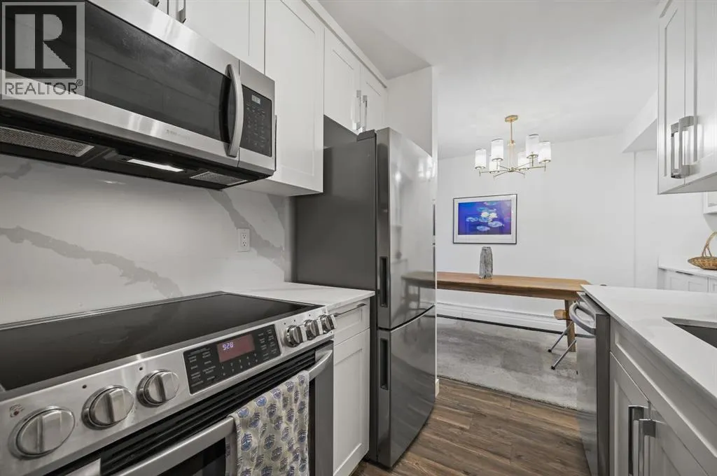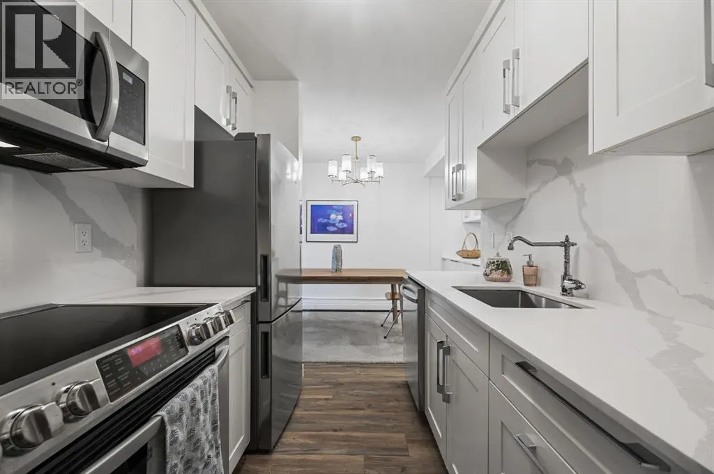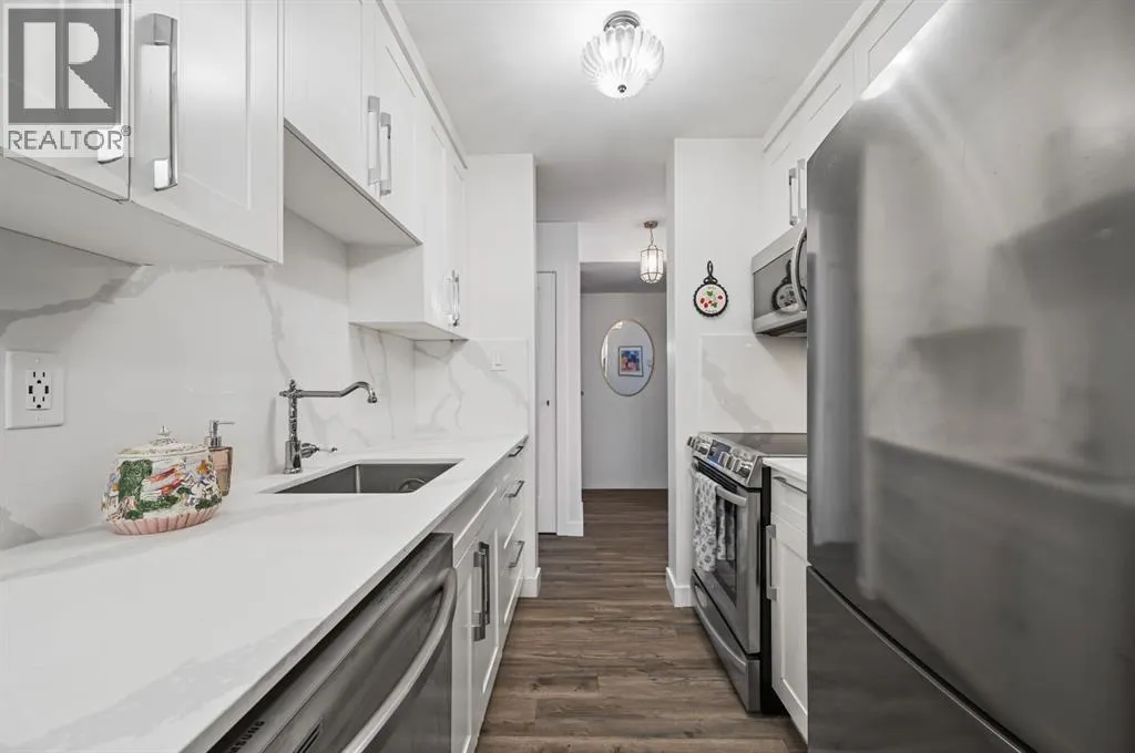 Welcome to this well-maintained and competitively priced two-bedroom condo offering over 809 sq. ft. of comfortable living space at the popular Village Green complex. The unit benefits from extensive exterior upgrades completed in 2017, including a new roof, windows, doors, and siding, giving the building a fresh, modern look and added value. Inside, the interior finishes have been completely updated. Laminate flooring throughput, ceramic tiles in bathroom, custom closets, updated lighting & plumbing fixtures. The layout is thoughtfully designed with a separate bedroom wing for added privacy, along with full-sized dining and living areas that make the home feel spacious and inviting. The modern kitchen features stainless steel appliances, quarts countertops, along with quarts backsplash and ample cabinetry, making it both functional and stylish. Dining room offers custom built-ins for extra added storage & countertop space. Both bedrooms include custom built-in closets offering convenience and storage. The unit also includes two separate entries, adding convenience and privacy for residents. Located in a desirable area with easy access to public transportation, the C-Train line, Heritage Drive, MacLeod Trail, and Blackfoot Trail, this condo is close to everything you needâshopping, schools, parks, and more. Whether youâre looking to invest or purchase your first home, this is a fantastic opportunity to own a stylish, move-in-ready condo in a well-managed complex. (id:27476)
