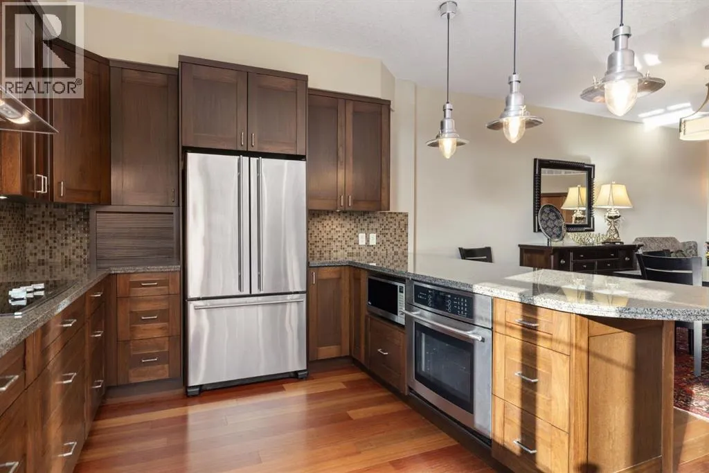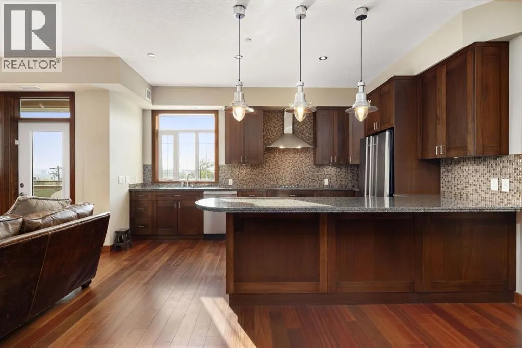 An exceptional opportunity to experience refined urban living in one of Calgaryâs most thoughtfully designed residences. This elegant three bedroom, two full bathroom corner home offers breathtaking southwest city and mountain views, two private balconies, and two titled parking stalls in the heated underground parkade. Originally designed as the Havenworth show suite, this residence was meticulously crafted to showcase the very best the building has to offer. Premium upgrades, curated finishes, and a layout that balances beauty with everyday functionality set this home apart. Lovingly maintained by the original owners, pride of ownership reflects throughout. Soaring 9" ceilings, an open concept layout, and floor to ceiling windows create an immediate sense of space and light. Expansive sightlines frame the stunning views, while both the primary suite and adjacent second bedroom open directly onto spacious balconies, a rare feature offering seamless indoor outdoor living and peaceful retreats for morning coffees or evening sunsets.The chef inspired kitchen is both striking and functional, featuring exotic hardwood flooring, custom cabinetry crafted from Lyptus hardwood and African mahogany, high end Miele and Jenn Air appliances, granite countertops, generous prep space, and ample storage. The living and dining areas flow effortlessly together, anchored by a dramatic floor to ceiling fireplace that creates a warm and inviting atmosphere for entertaining or relaxing.All three bedrooms are generously sized. The primary suite offers a luxurious four piece ensuite with dual vanities, an oversized walk in shower, and a spacious walk through closet with custom built ins. The second four piece bathroom features a deep soaker tub, ideal for unwinding at the end of the day.Additional features include air conditioning, in suite laundry with extra storage, a private storage cage, and the comfort of a cozy fireplace for winter evenings. Havenworth offers more than just a hom e, it offers a lifestyle. Residents describe the community as warm, friendly, and welcoming, with tranquil cedar finished common areas that create a true sense of belonging.Ideally located across from the Calgary Winter Club and minutes from Nose Hill Park, Confederation Park Golf Course, schools, shopping, and pathways, this home offers the perfect balance of serenity and connectivity with easy access to major routes. This is a rare opportunity to embrace a lifestyle defined by space, elegance, and uncompromising quality. Book your private showing to experience this stunning home for yourself! (id:27476)