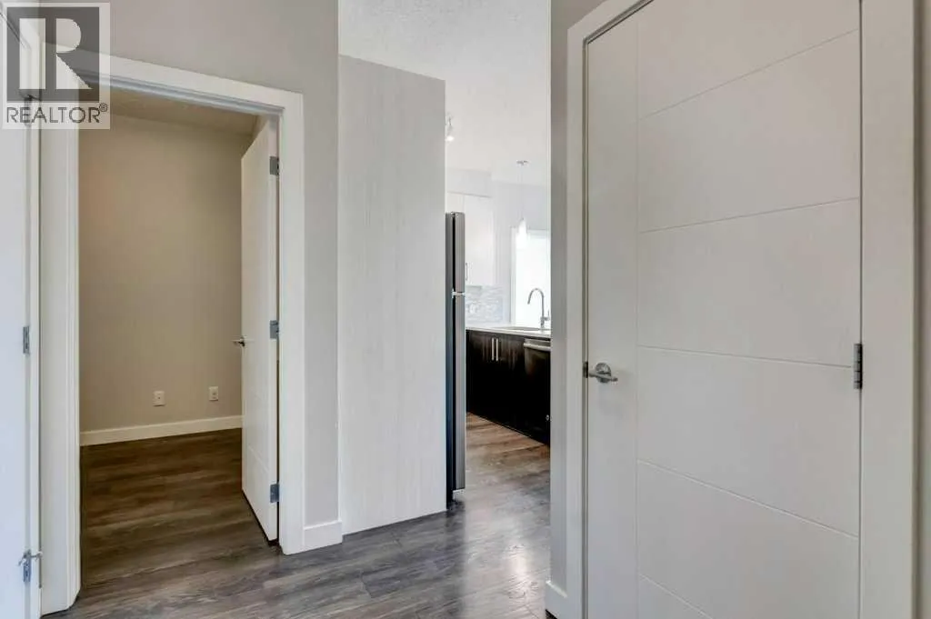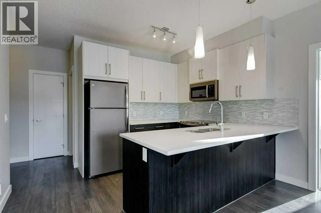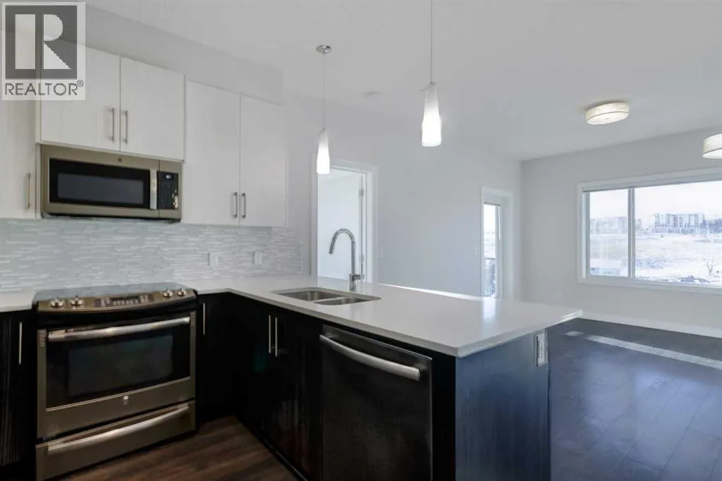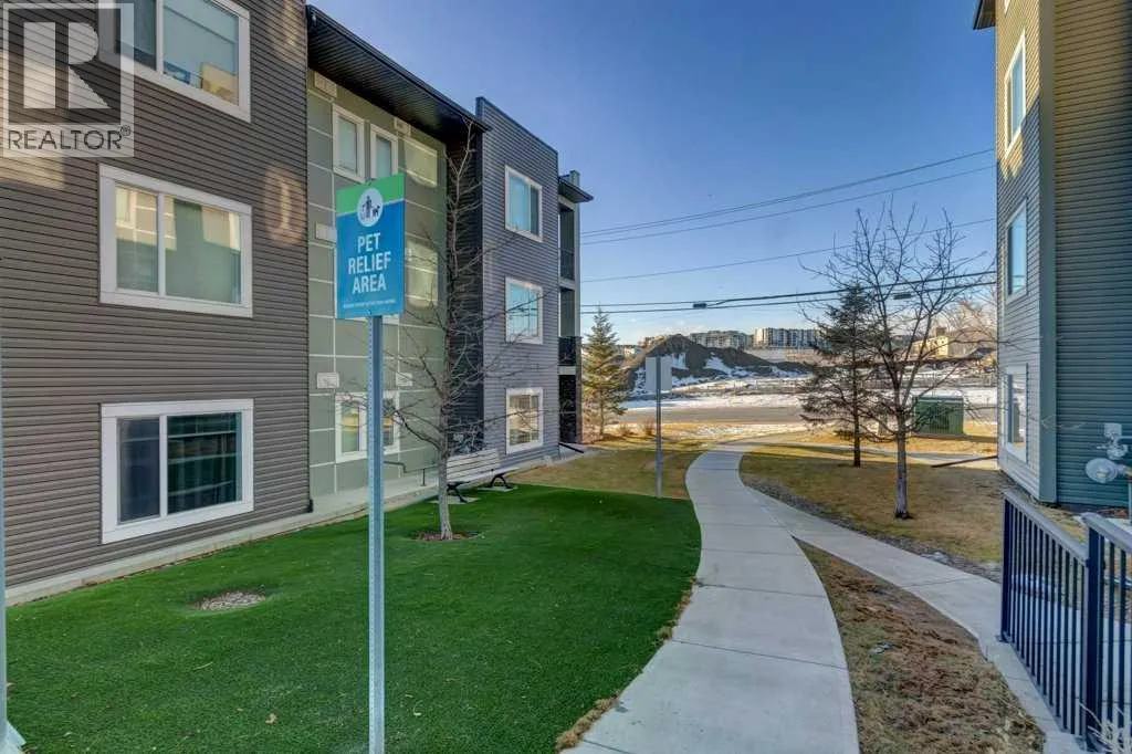 Welcome home to this immaculate, top-floor, south-east corner condo â a beautifully maintained 2-bedroom, 2-bath + den home located in one of NW Calgaryâs most desirable communities.This premium corner unit offers an outstanding layout with abundant natural light throughout the day, thanks to its ideal SE exposure and extra windows. Quality upgrades include glass tile backsplash, rich LVP flooring, 9-foot ceilings, granite countertops in both the kitchen and bathrooms, an upgraded lighting package, comfortable in-floor heating throughout, and a bright, welcoming atmosphere.A spacious front entry greets you with double closets and discreetly tucked-away in-suite laundry. The open-concept living area is perfect for both everyday living and entertaining, featuring flat-panel cabinetry, Matte stainless steel appliances with new Microwave, generous storage, and a large peninsula island with breakfast bar.Step out onto your private SE-facing corner balcony and enjoy sunny mornings and warm afternoons â an ideal spot for coffee, relaxation, or entertaining.The primary suite features a walk-through closet to a private 4-piece ensuite. A second bedroom, additional full bathroom, and versatile den provide excellent flexibility for professionals, couples, or small families.Additional highlights include:- In-floor heating for year-round comfort- Titled underground parking stall conveniently located directly in front of the elevator- Secure bike storage- Pet-friendly building (with board approval)- Dedicated pet relief area located just outside the front entrance between the buildingsThis quiet, well-managed complex is surrounded by an extensive pathway network that winds throughout the community and connects seamlessly to Kincora and Evanston, making it easy to enjoy walking, biking, and the outdoors. Close to schools, shopping, restaurants, and everyday amenities, with quick access to Stoney Trail, Costco, CrossIron Mills, and the QEII.This home truly d elivers on comfort, light, and convenience â all from a top-floor corner location with premium exposure. Be sure to view the 3D Virtual Tour. (id:27476)