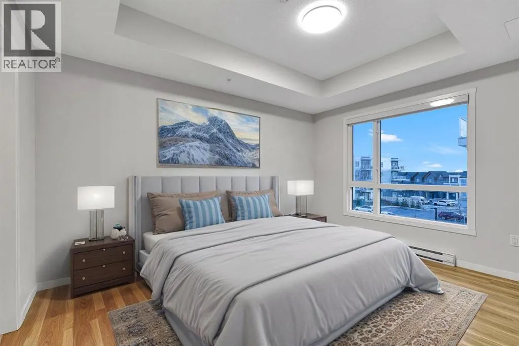 Discover life at Seton Summit, one of Calgaryâs most desirable master-planned communities by Cedarglen Living. This beautifully appointed third-floor residence offers three bedrooms and two full bathrooms within 1,189 square feet of intelligently planned living space (1,269 sq.ft. builder size). The open layout is enhanced by 9-foot knockdown ceilings, luxury vinyl plank flooring, and an abundance of natural light throughout.With sunny southern exposure, the home opens onto an impressive balcony stretching more than 20 feetâan ideal setting for morning coffee, evening relaxation, or hosting friends. The kitchen is a standout, featuring full-height cabinetry, quartz countertops, an undermount sink, stainless steel appliances, upgraded lighting, a walk-in pantry, and a generous island that connects effortlessly to the living and dining areas.The primary bedroom offers a private and peaceful retreat, complete with a walk-in closet and a well-appointed four-piece ensuite with dual sinks and a walk-in shower. Two additional bedrooms allow for versatility, whether accommodating family, guests, or a dedicated home office. A conveniently located laundry and storage room, along with a second full bathroom, round out the efficient floor plan.Additional highlights include clear glass balcony railings, triple-pane windows, and air conditioning for year-round comfort. Residents also benefit from low condo fees, ample visitor parking, separate storage, and dedicated bike storage. The building is pet-friendly, allowing up to two pets weighing up to 35 kg. Underground titled parking and included roller blinds add to the everyday convenience.Located just steps from the worldâs largest YMCA, the Seton HOA, shopping, dining, cafés, and the South Health Campus Hospital, this home offers an exceptional combination of lifestyle, comfort, and practicality in one of Calgaryâs most vibrant communities. (id:27476)
