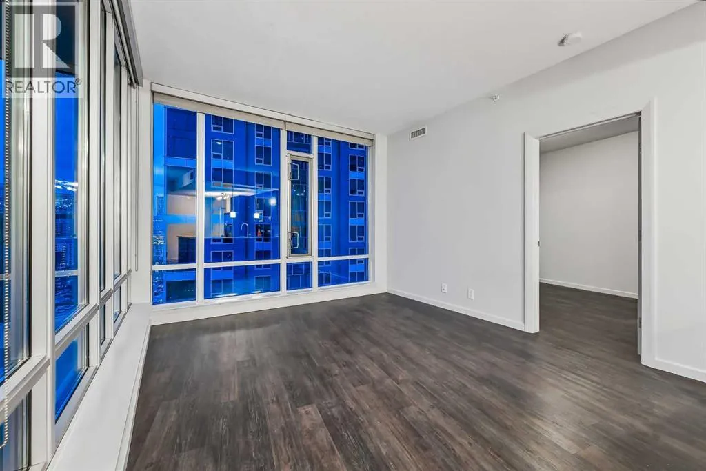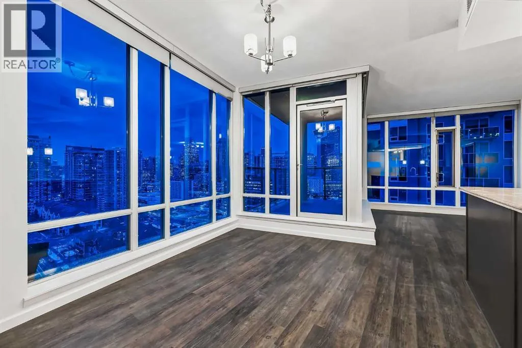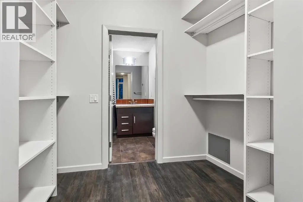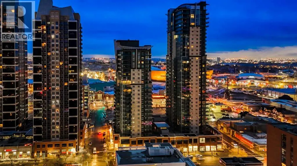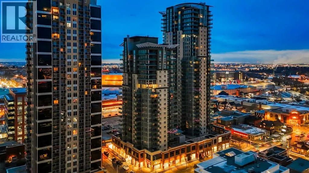 Exceptional 16th-Floor Unit with Breathtaking Panoramic Views! This beautifully appointed unit on the 16th floor offers stunning, uninterrupted views of both the mountains and downtown skyline. Ideally situated within close proximity to the LRT and the MNP Community & Sport Centre, this residence combines convenience with luxury. The upgraded interior features high-quality finishes, including maple cabinetry, granite countertops, stainless steel appliances, luxury vinyl flooring, tile, and floor-to-ceiling windows that maximize natural light and panoramic vistas. The entryway includes a walk-in coat closet with custom built-in storage for added organization. A dedicated home office area is integrated into the layout, complete with a granite work surface. The in-suite laundry room offers additional storage space for everyday practicality. The generously sized second bedroom enjoys remarkable views and includes a walk-in closet with a convenient cheater door leading to a well-appointed bathroom featuring a large walk-in shower. The kitchen, with its modern design, opens seamlessly to the dining and living areas, creating an ideal space for entertaining. The private balcony extends the living space outdoors, offering an excellent setting for barbecuing or simply taking in the spectacular scenery. The comfortable living room provides an inviting atmosphere for relaxation and social gatherings. The primary bedroom is a peaceful retreat, showcasing expansive views and a walk-through closet that leads to a luxurious four-piece ensuite bathroom. Residents also enjoy access to a well-equipped amenity center, which includes an exercise room, hot tub, sauna-equipped dressing rooms, a gathering space with pool table, theater room and patio access, one being the rooftop! Additional features include assigned storage and one titled parking stall. Located just a couple of blocks from the Stampede Grounds and the C-train station, this prime location offers easy access to downtown am enities, dining, entertainment, and much more. This building is 18+ and no dogs are allowed. Book your showing and come on Buy! (id:27476)
