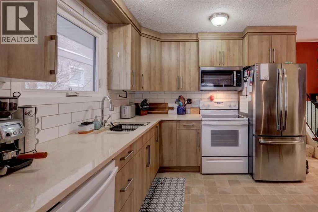 HOME SWEET HOME!!! Welcome to your cozy open plan home with spacious rooms on 4 levels! This 3 bedroom, 2 full bathroom home is located on a quiet cul de sac and walking distance to parks, schools, public transportation, shopping and amenities. The home is well loved and feels like home. On the upper level you will find a huge primary retreat with room for a king size bed, walk in closet, full ensuite bathroom and upper deck (with stairs) leading to your east facing backyard. This is ideal for those that love the morning sun and convenience of back yard access from your bedroom. The main level is an open plan with a large sunken living room with gorgeous gas fireplace (oak surround and mantle) and a sunny west bay window so you can watch the evening sunsets. The adjacent open plan country kitchen has lots of new cabinets and room for a larger dining table. This space is ideal for those that like to entertain. The main floor also has a convenient mud room/foyer. The lower level has 2 spacious bedrooms with large egress windows and a large modern full 4 piece bathroom. The basement is an open undeveloped space with an partial crawl space for handy storage. You will find the utility room and laundry nicely tucked into one corner of the basement. The other portion of the basement could easily be developed into a recreation room, gym or office combination. Interior updates include a new gorgeous and bright kitchen with a blonde modern tone cabinet to the ceiling, newer appliances and white subway backsplash with quartz countertops and undermount sink. Exterior updates include new soffits and gutters (2025), newer windows, siding and roof. Outside there is a fully fenced yard and nicely landscaped yard with vegetable garden, a parking pad for 2 cars with space to build a double garage with lane access and a raised upper deck with stairs to the yard. This is a turn key property ready to turn into your home. (id:27476)
