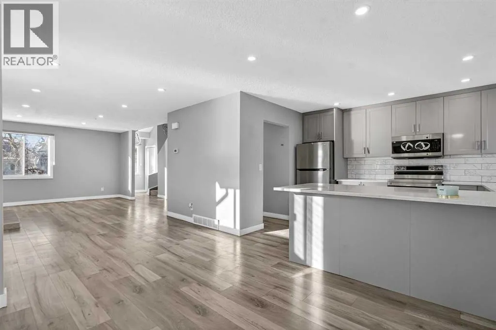 CORNER LOT! One of the largest half-duplex lots in the area (approximately 4,500 sq ft) with back lane access! Fully renovated and thoughtfully designed, this home features an illegal basement suite with a separate entrance, offering excellent mortgage-helper potential and two fully livable suites. This freshly updated property provides over 1,800 sq ft of quality living space, featuring 5 bedrooms and 3 bathrooms with a simple, functional open-concept layout throughout. The main floor showcases a spacious family room with a cozy fireplace, an updated kitchen with modern appliances, a dining area with direct access to the deck, and a convenient half bath. The upper level includes three bedrooms and a full bathroom, with the primary bedroom offering direct access to the bath. The basement illegal suite is complete with its own kitchen, family room, two bedrooms, and a full bathroom. Separate laundry setups for both suites add extra convenience. Located in the community of Temple, this home offers easy access to schools, shopping, and essential amenities, with quick connections to 32 Avenue NE. Exceptional value in a prime location! (id:27476)