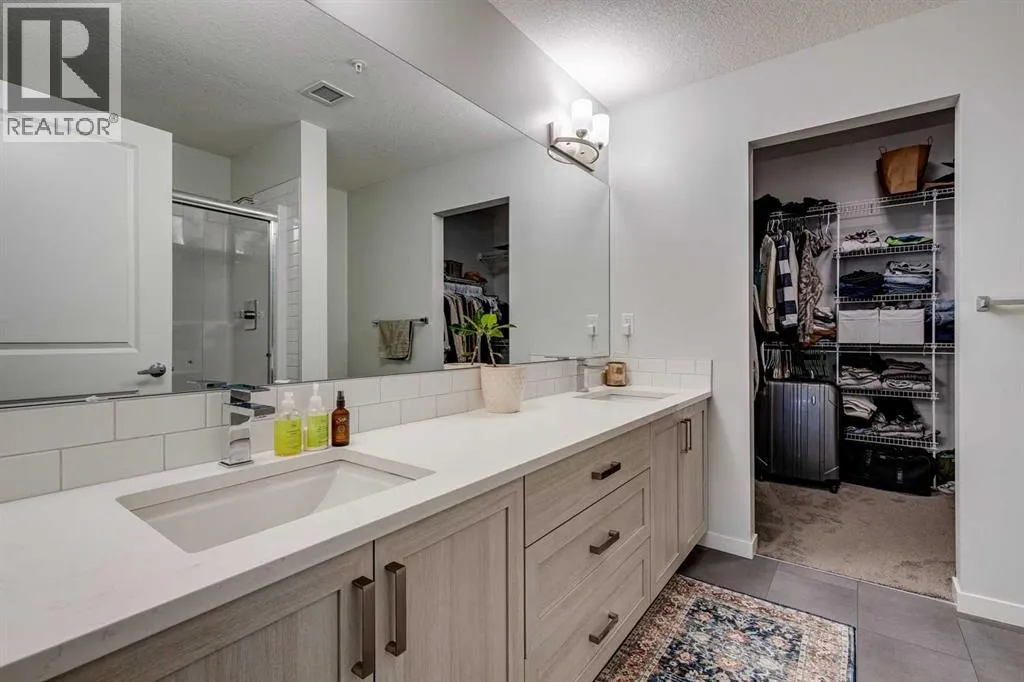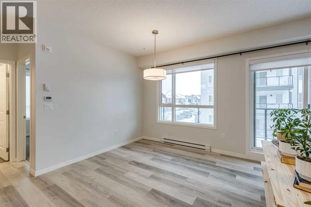 Welcome to this beautifully upgraded 2-bedroom, 2-bathroom condo in the vibrant, ever-growing community of Carrington. Blending modern style with everyday comfort, this bright and spacious home is perfect for first-time buyers, downsizers, or savvy investors. The open-concept floor plan is enhanced by 9-foot ceilings and durable luxury vinyl plank flooring, while expansive windows fill the space with natural light and create an inviting atmosphere for both relaxing and entertaining. The contemporary kitchen is a true showpiece, featuring full-height cabinetry, sleek quartz countertops, stainless steel appliances, and a generous island with seatingâperfect for casual meals or hosting family and friends. The living area flows seamlessly onto a private balcony, offering a peaceful spot to enjoy morning coffee or unwind at the end of the day. A thoughtful split-bedroom design provides excellent privacy, making this layout ideal for roommates, guests, or a dedicated work-from-home setup. Both bedrooms are spacious and well-appointed, with the primary suite offering a walk-through closet and a stylish ensuite. A second full bathroom and an oversized laundry/storage room add to the homeâs convenience and functionality. Titled underground parking completes the package. Situated steps from scenic parks, pathways, and Carringtonâs expanding selection of shops and amenities, this location also ensures effortless connectivity with quick access to both Stoney Trail and Deerfoot Trail. Stylish, practical, and perfectly locatedâthis exceptional condo is ready for its next owner. Book your private showing today. (id:27476)
