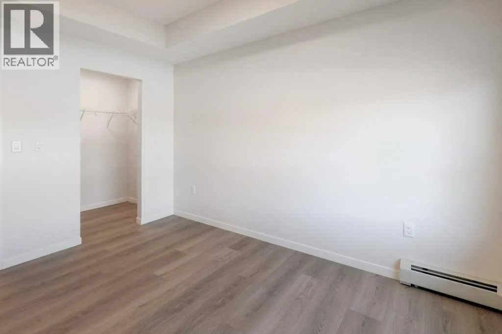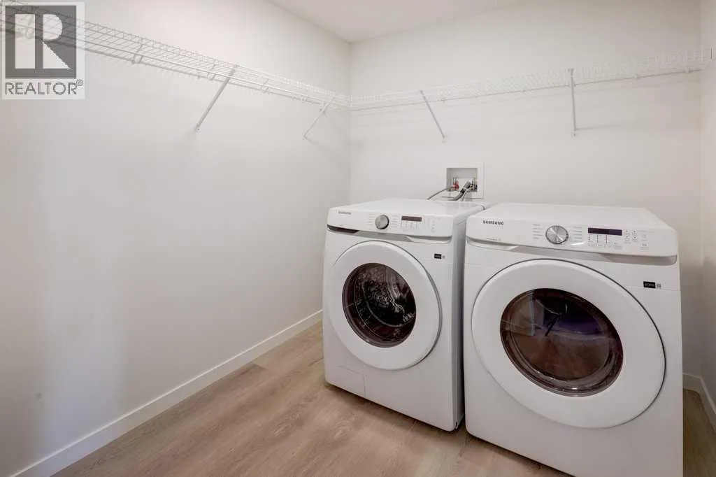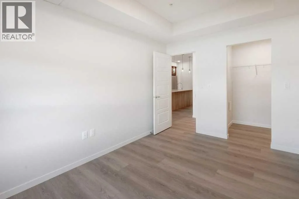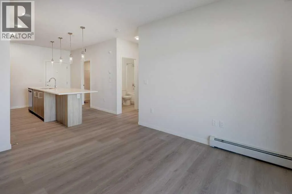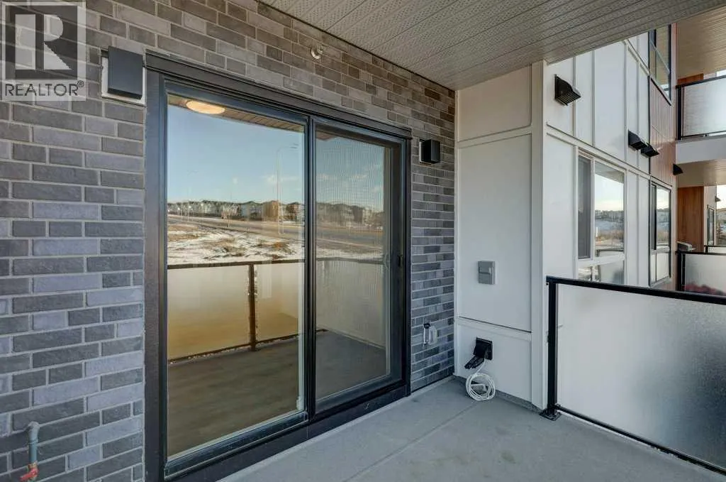 INTRODUCING GLACIER RIDGE, IN BEAUTIFUL NORTHWEST CALGARY. BUILT BY CEDARGLEN LIVING, WINNER OF THE Customer Insight BUILDER OF CHOICE AWARD, 6 YEARS RUNNING! BRAND NEW "GR04" unit with high-spec features. You will feel right at home in this well thought-out, 590.72 RMS sq.ft. 1 bed, 1 bath home with open plan, 9' ceilings, LVP flooring throughout (NO CARPET), Low E triple glazed windows, BBQ gas line on the patio, Fresh Air System (ERV), A/C rough-in, and so much more. The kitchen is spectacular with full height, two tone cabinets, quartz counters, upgraded bank of drawers for pots and pans, undermount sink, rough-in water line to the fridge and S/S appliances. The island is extensive with built in flush breakfast bar, which transitions into the spacious living area, perfect for entertaining. The spacious primary bedroom has a large bright window (triple pane windows) and sizeable walk-in closet. Right beside your bedroom is a 4pc bath with quartz counters, upgraded tiles to the ceiling, and undermount sink. Nearby is the spacious laundry/storage room, this is a must see (washer & dryer included). Highlights include: Hardie board siding, designer lighting package, sound reducing membrane to reduce sound transmission between floors, clear glass railing to balconies and 1 titled underground parking stall included. A once in a lifetime community in Northwest Calgary. Framed by views of the Rocky Mountains and distinguished by natural coulees that cross the land, Glacier Ridge offers a rare chance for families to live in a new community. PET FRIENDLY COMPLEX, IMMEDIATE POSSESSION AVAILABLE AND DON'T FORGET TO CHECK OUT THE VIRTUAL TOUR. (id:27476)