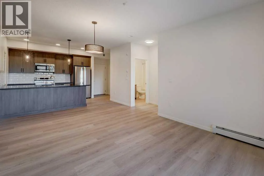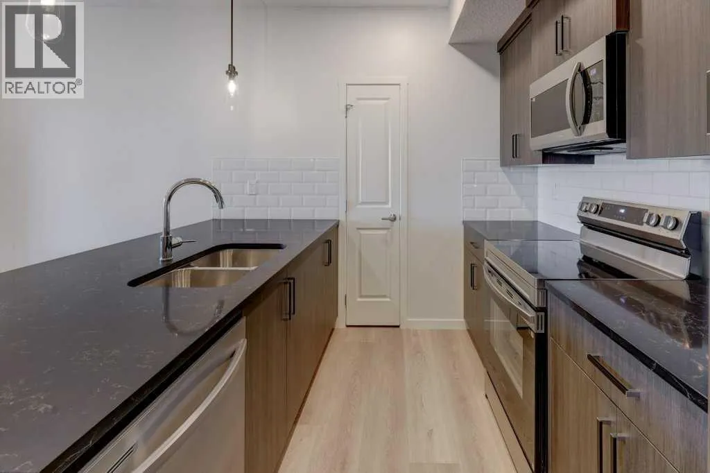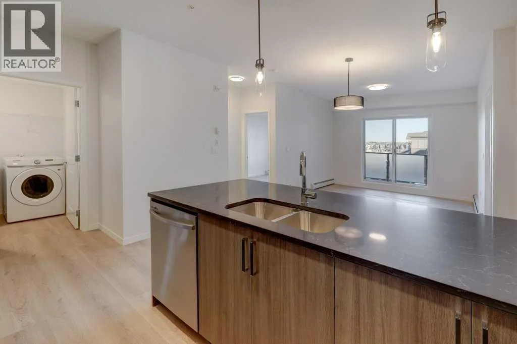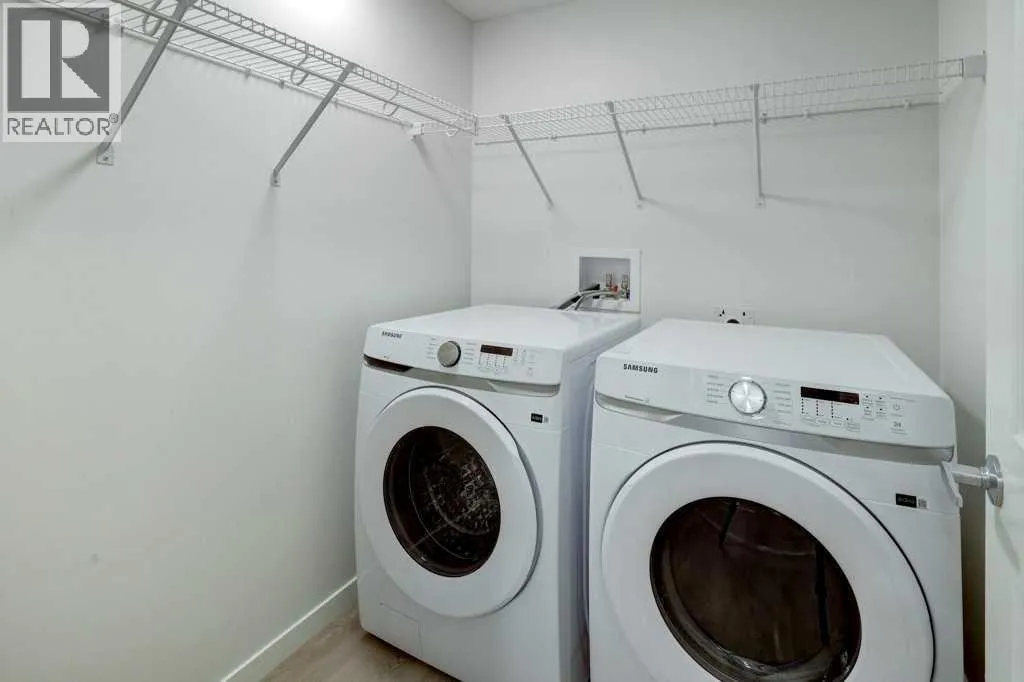 INTRODUCING GLACIER RIDGE, IN BEAUTIFUL NORTHWEST CALGARY. BUILT BY CEDARGLEN LIVING, WINNER OF THE Customer Insight BUILDER OF CHOICE AWARD, 6 YEARS RUNNING! BRAND NEW "GR08R" unit with high-spec features. You will feel right at home in this well thought-out, 902.12 RMS sq.ft. 2 bed, 2 bath home with open plan, 9' ceilings, Low E triple glazed windows, BBQ gas line on the patio, Fresh Air System (ERV), and so much more. The kitchen is spectacular with full height cabinets, quartz counters, undermount sink, rough-in water line to the fridge and S/S appliances. The island is extensive with built in flush breakfast bar, which transitions into the spacious living area, perfect for entertaining. The spacious primary bedroom has a large bright window (triple pane windows) and huge walk-in closet. You'll be impressed with the 4pc ensuite with double vanities and stand up shower. The second bedroom is located on the other side of the unit for privacy and a 4pc bath with quartz counters, and undermount sink is located next to it. Nearby is the spacious laundry/storage room, this is a must see (washer & dryer included). Highlights include: Hardie board siding, designer lighting package, sound reducing membrane to reduce sound transmission between floors, clear glass railing to balconies and 1 titled underground parking stall included. A once in a lifetime community in Northwest Calgary. Framed by views of the Rocky Mountains and distinguished by natural coulees that cross the land, Glacier Ridge offers a rare chance for families to live in a new community. PET FRIENDLY COMPLEX, IMMEDIATE POSSESSION AVAILABLE AND DON'T FORGET TO CHECK OUT THE VIRTUAL TOUR. (id:27476)