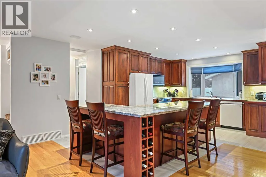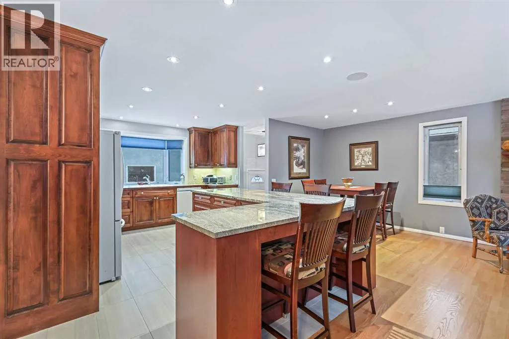 Jewel of a Deal!!! Welcome to an outdoor enthusiastâs dream lifestyle in a prime Fish Creek Park location. This highly desirable community places you just steps from pathways, biking and hiking trails, creeks, ponds, an ice rink, parks, schools, shopping, soccer fields, a skate park, health care services, transit, and major south expresswaysâoffering unbeatable convenience and year-round recreation.This beautifully air-conditioned, remodelled, urban-style home is meticulously crafted and loaded with upgrades, truly reflecting custom-home quality throughout. Offering over 2,400 square feet of developed living space, the layout includes three bedrooms upstairs, two additional bedrooms downstairs, and three full bathrooms. The impressive 12' x 12' primary bedroom features its own ensuite and french doors leading directly to a spacious 20' x 20' patioâperfect for relaxing or entertaining. Updated bathrooms include a main-floor steam shower. Be sure to check out the floor plan and 3D tour.The open-concept design showcases a bright kitchen that seamlessly overlooks the dining area and great room, creating an ideal space for everyday living and gatherings. The main living area is warm and inviting with a cozy wood-burning fireplace, rich hardwood floors, newer windows, updated casings, doors, and passage doors. Fit and finish details include updated lighting and plumbing fixtures, modern hardware, built-in ceiling speakers, flat painted ceilings, and many additional thoughtful touches throughout.The remodelled kitchen is expertly designed for both efficiency and entertaining, featuring a granite-topped island with a flush eating bar, raised-panel custom cabinetry, and elegant trim details. Outside, the home offers rich, modern curb appeal with stucco exterior finishes and newer concrete walkways.This is a home you must add to your Must-See List. Canyon Meadows continues to be recognized as one of Calgaryâs most desirable communities, praised for its incredible acce ss to parks, green spaces, pathways, recreation facilities, transit, and everyday amenitiesâmaking it a top choice for outdoor lovers and active lifestyles alike.Donât miss this exceptional opportunity. Call your friendly REALTOR® today to book your private viewing! (id:27476)
