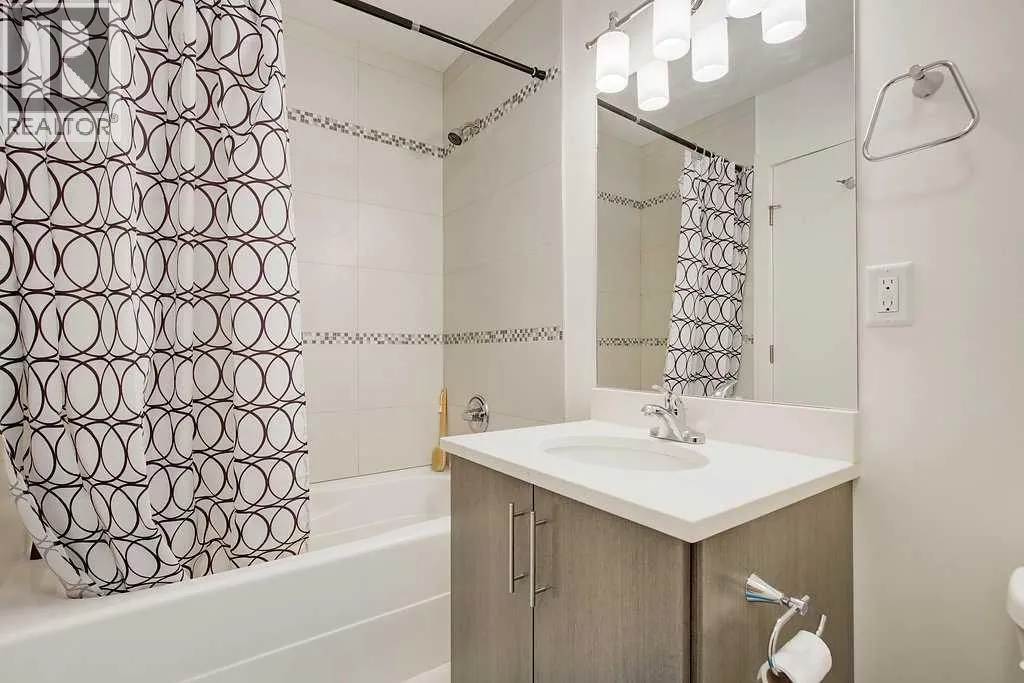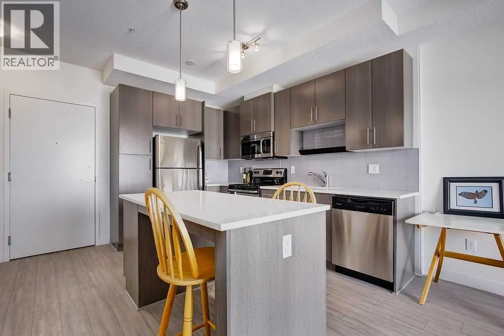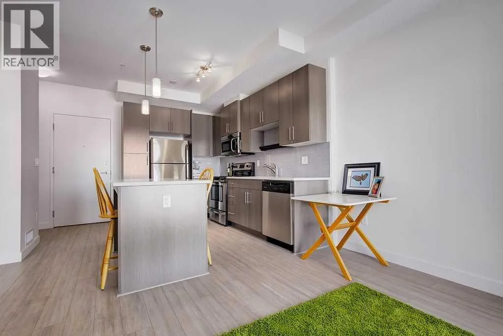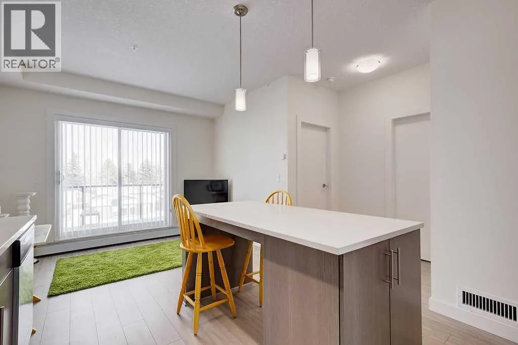 This stylish one-bedroom condo offers an impressive blend of comfort, convenience, and lifestyle amenities. The unit includes a titled, heated underground parking stall ideally located near the entrance, along with a separate titled storage locker and exclusive lake access. The home showcases sleek white quartz countertops, a functional eat-up kitchen island, and a modern open-concept layout designed for both everyday living and entertaining. The bedroom features a generous window and plenty of closet space, while the bathroom offers a deep soaker tub and a quartz-topped vanity. The bright and welcoming living area seamlessly extends to a spacious patio, creating an ideal space to relax or entertain. Set in the desirable community of Midnapore, residents enjoy a vibrant neighborhood atmosphere with quick access to Shawnessy and Lacombe LRT stations, shopping, grocery stores, schools, and a variety of dining options. Outdoor enthusiasts will appreciate the close proximity to Fish Creek Provincial Park, known for its extensive walking and biking trails. (id:27476)