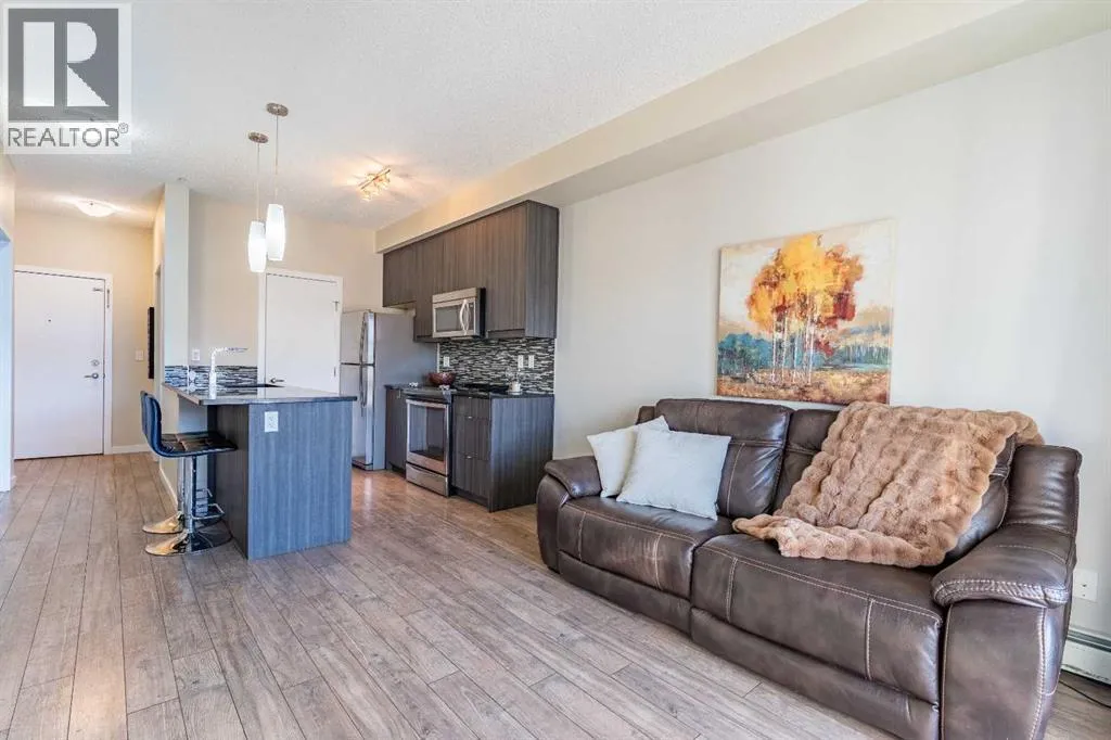 *** OPEN HOUSE SATURDAY JANUARY 10TH: 2:00 PM - 4:00 PM *** Experience the ultimate lakeside lifestyle in this stunning 2-bedroom, 1-bathroom main-floor condo located in the highly sought-after Ebony Apartments in Mahogany. This bright and functional residence is an exceptional opportunity for first-time buyers, downsizers, or investors looking for a home that perfectly balances comfort, value, and convenience. As you step inside, you are greeted by an inviting open-concept floor plan elevated by soaring 9-foot ceilings and flooded with natural light, creating a spacious atmosphere that is perfect for entertaining. The modern chef-inspired kitchen serves as the heart of the home, featuring full-height cabinetry, sleek granite countertops, and a stylish tile backsplash. The extended kitchen island offers additional seating and is highlighted by chic pendant lighting, all complemented by a full suite of premium stainless steel appliances. The airy living room flows seamlessly to a generous covered patio, which comes equipped with a BBQ gas hook-up, making it an ideal spot for year-round outdoor relaxation. Both the primary and secondary bedrooms provide flexible space for guests or a home office and share a well-appointed 4-piece bathroom. For added convenience, the unit includes an in-suite laundry room, dedicated storage space, and a titled parking stall, with plenty of visitor parking just steps from your door. Residents of Ebony enjoy exclusive access to incredible on-site amenities, including a private fitness center, bike storage, and a childrenâs playground. Living in Mahogany means more than just a beautiful home; it grants you unparalleled access to Calgaryâs premier lake community where you can enjoy swimming, boating, and fishing. You are perfectly positioned just moments away from the Mahogany Village Market, offering a vibrant array of shopping, dining, and daily essentials. With quick access to transit and Stoney Trail, this low-maintenance home provides a seamless connection to the rest of the city while maintaining a tranquil resort-style feel. Donât miss your chance to own in one of Calgaryâs most desirable neighborhoodsâbook your private showing today and start living the lake life youâve always dreamed of. (id:27476)