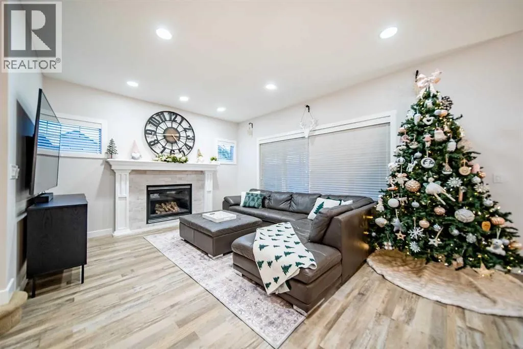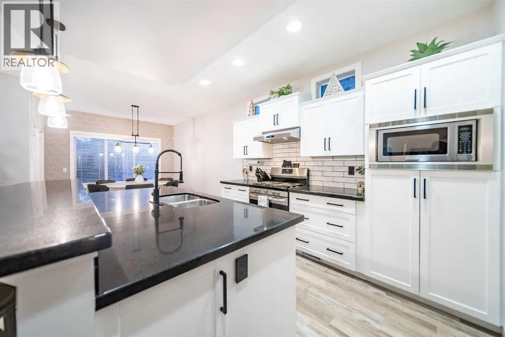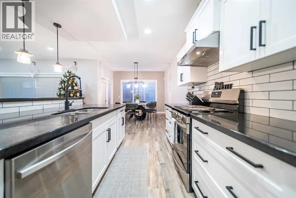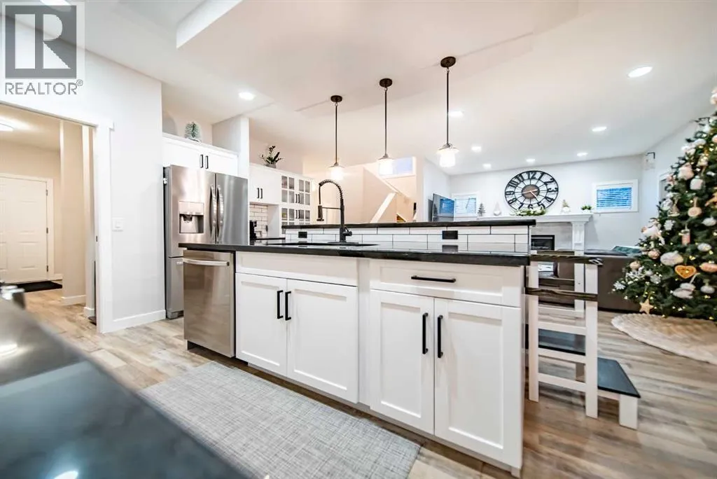 Tucked away on a quiet cul-de-sac and perfectly positioned across from scenic walking paths, tranquil ponds, and a family-friendly playground, this beautifully updated two-storey home offers both comfort and convenience. The exterior has been refreshed with durable, low-maintenance Hardie board siding, along with new shingles, soffit, fascia, and eavestroughs, creating lasting curb appeal. Inside, the newly renovated main floor shines with luxury vinyl plank flooring and a fresh, modern palette. A recent coat of paint extends seamlessly across the walls, kitchen cabinets, and ceilings, giving the space a bright, cohesive feel. The kitchen has again been elevated by new tile on the backsplash matching perfectly with a newly tiled fireplace that anchors the living area, while adding warmth and character. Conveniently located off the attached garage entry are brand-new (2024) washer and dryer units, making everyday routines effortless. Upstairs, the spacious primary bedroom provides a relaxing retreat with a walk-in closet and a well-appointed five-piece ensuite. Two additional generously sized bedrooms and a full bathroom complete the upper level, offering ample room for family or guests. The fully developed basement expands the living space with an additional bedroom, a versatile bonus room ideal for a home office, gym, or recreation area, and a full bathroom. Recent mechanical upgrades include a new furnace installed in 2023, along with air conditioning for year-round comfort. Outside, the property is fully landscaped and equipped with a new irrigation system, huge backyard perfect for entertaining or relaxing, featuring a large deck with a pergola that creates an inviting outdoor living space. (id:27476)