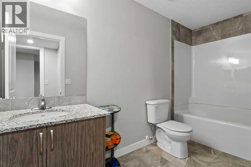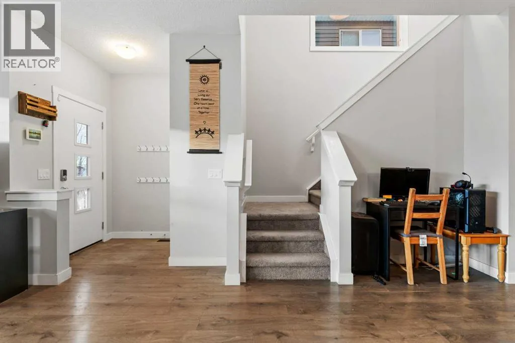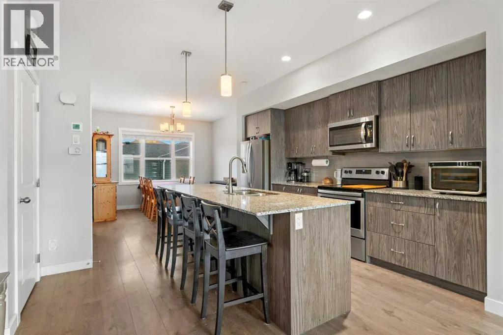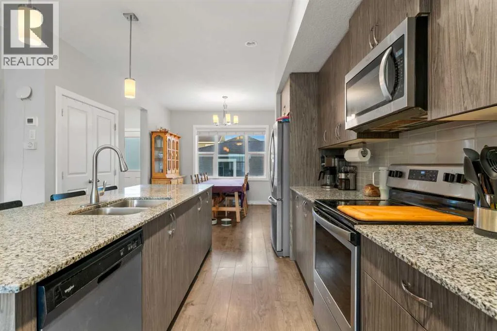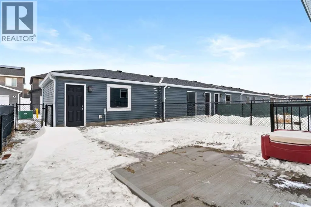 Welcome to this modern, no condo fee, fully developed, end-unit townhome, built in 2019 by Shane Homes. Offering a separate side entrance for a potential secondary suite (with city of calgary permits and approval), this home presents an exceptional opportunity for multi-generational living or future rental income. The main floor welcomes you with a spacious front entry leading into a bright, open-concept living, kitchen, and dining area. The modern kitchen features contemporary cabinetry, quartz countertops, a large eat-up island, pantry, and stainless steel appliances. A convenient 2-piece bathroom and a generous boot room with direct access to the fully fenced backyard and double garage complete the main level. Upstairs, the second floor offers a laundry room, three well-appointed bedrooms, including a spacious primary retreat with a walk-in closet and private ensuite bathroom. The fully developed basement, completed by the builder, continues the homeâs cohesive design and modern finishes. This level includes a large bedroom, 4-piece bathroom, mechanical/storage room and a spacious living/entertaining room, making it ideal for guests, extended family, or future suite potential. The home features a new roof and siding (2025), New washing machine (2025), and additional outlets for furture kitchen/wet bar development in the basement. Cornerstone is an established community offering 95 Acres of land dedicated to parks, 5 access points to easily enter and exit the community, 14 kms of pathways, 5 future school sites, 180 Acres of natural wetlands, Commercial space equipped with major amenities and 3 playgrounds. (id:27476)