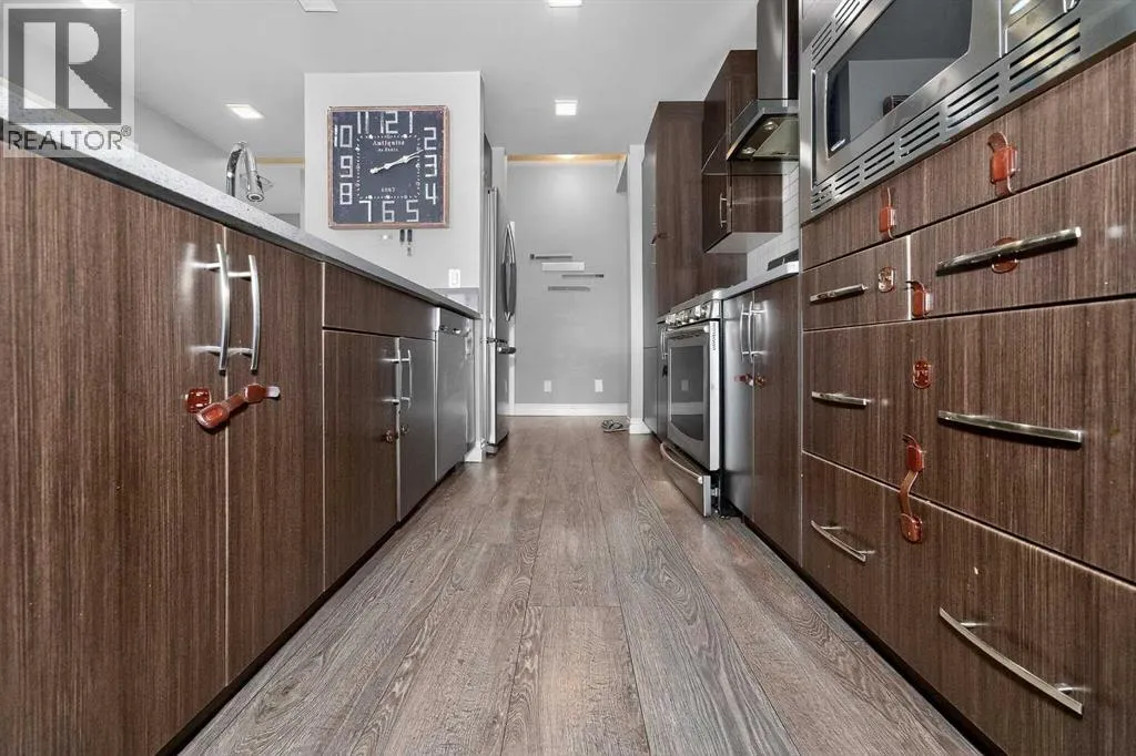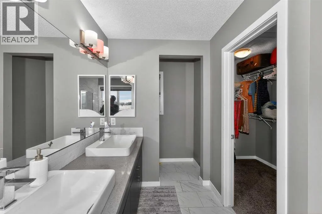 Location Location Location..... ACTUAL WALKOUT HOME BACKING ONTO POND W/ MANY UPGRADES! DOWNTOWN & MOUNTAIN VIEWS! Experience the ultimate walkout home backing onto a serene pond, showcasing numerous exquisite upgrades! Revel in stunning downtown and mountain vistas from your living space. The residence boasts upgraded wide plank laminate flooring throughout, with a spacious living room featuring expansive windows that overlook the tranquil pond. The gourmet kitchen is a chefâs dream, equipped with luxurious quartz countertops with a striking waterfall edge on the island, a chimney hood fan, gas stove, built-in microwave, garburator, energy-efficient LED panel lighting, and a sleek upgraded faucet. The inviting fireplace adds warmth and ambiance. Step outside onto two private decksâone at the sunny south-facing back with a gas BBQ line, perfect for entertaining, and a side deck for more intimate gatheringsâboth offering breathtaking views. Upstairs, enjoy a generous bonus room and a spacious master suite with a luxurious 5-piece ensuite and a full main bath, both featuring upgraded sinks, faucets, quartz counters, and elegant 12âx24â tiles. Two additional sizable bedrooms, an upstairs laundry with a gas dryer (reducing energy costs), and a versatile bonus room with an existing home theatre system enhance the appeal. The walkout basement featuring 9-foot ceilings, insulated subfloors, and elegant double French doors, providing endless possibilities. Outside, indulge in the tasteful brick patio, cozy firepit, and professionally landscaped yard. Modern Hunter Douglas blinds add a touch of sophistication.Conveniently located near public transit, a future school, numerous amenities, and major roads, this home offers spectacular views of downtown and the mountains from both the kitchen and bedroom windowsâwatching airplanes land and take off will ignite your enthusiasm. This exceptional property truly combines luxury, comfort, and breathtaking sceneryâdonât miss your ch ance to make it yours! (id:27476)