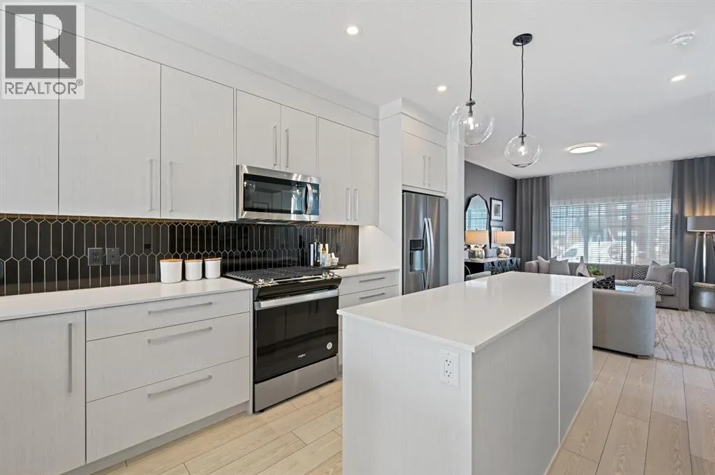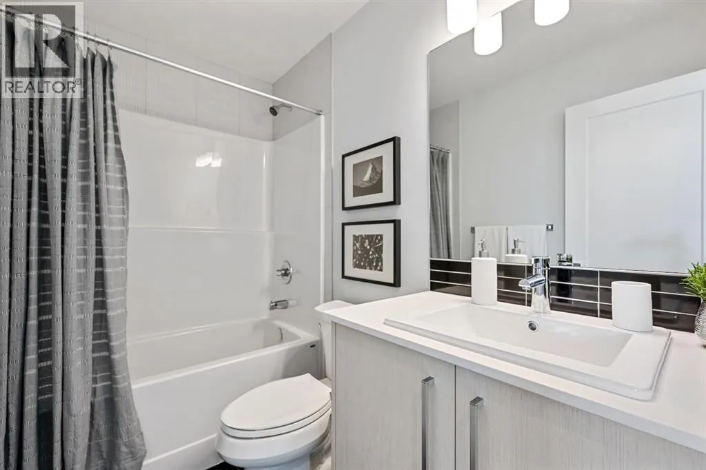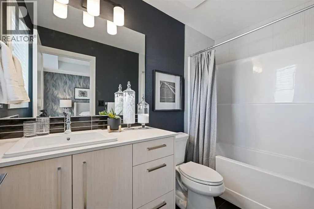 Experience style and thoughtful design in this brand-new TRUMAN-built home, ideally located near playgrounds, shopping, and just minutes from the Calgary South Health Campus and Stoney Trail.Step inside to an inviting open-concept layout that seamlessly connects the kitchen, dining, and living areasâperfect for both entertaining and everyday comfort. The bright kitchen showcases full-height cabinetry with soft-close doors and drawers, quartz countertops, a spacious eating bar, stainless steel appliance package, and a walk-in pantry. Elevated details include luxurious LVP flooring, a stylish 2-piece bathroom, and a practical mudroom designed for modern family living.Upstairs, a central bonus room offers flexible space for relaxation or work. The primary bedroom provides a serene retreat, featuring a 3-piece ensuite, and a generous walk-in closet. Two additional bedrooms, a full bathroom, and a conveniently located laundry area complete the upper levelâbalancing style, comfort, and functionality.A separate side entrance leads to the unfinished basement, offering future potential for a, home gym, or additional living space tailored to your needs.Move-in ready and built with TRUMANâs signature craftsmanship, this home blends quality, design, and comfortâhelping you Live Better. *The photo gallery showcases a similar home with comparable layout and features; finishes may vary. (id:27476)