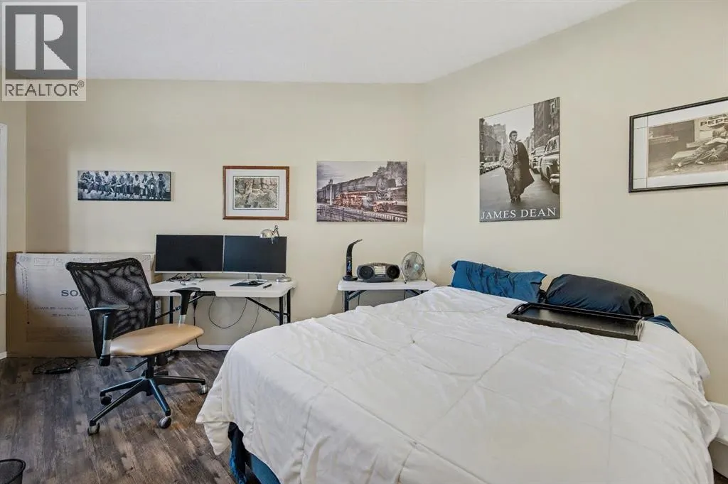 Amazing VALUE for this great condo with a large BALCONY overlooking the courtyard. This BEAUTIFUL and well-maintained unit features an OPEN layout with 9-foot ceilings â perfect for living and entertaining. The kitchen features a large eating bar overlooking the dining area and living room. The spacious living room has patio doors that lead to your BALCONY.The large bedroom has a walk-in closet and a sitting area, or plenty of room to set up a home office. There is also INSUITE LAUNDRY and storage. This unit comes with a titled PARKING STALL just steps from the main entrance.This condo is perfect for first-time buyers, downsizing, or investors. Condo fees include heat, electricity, water, and more. The concrete building offers a nice, quiet place to come home to, with a welcoming lobby.Excellent location! Close to shopping, transit, amenities, and easy access to major roadways. Only minutes to downtown. Donât miss out on this great condo at an affordable price! (id:27476)