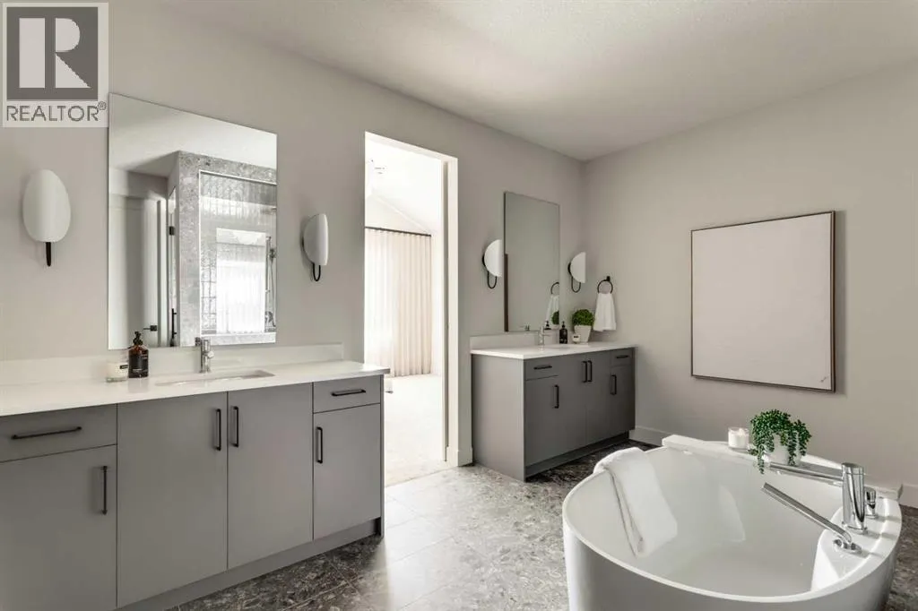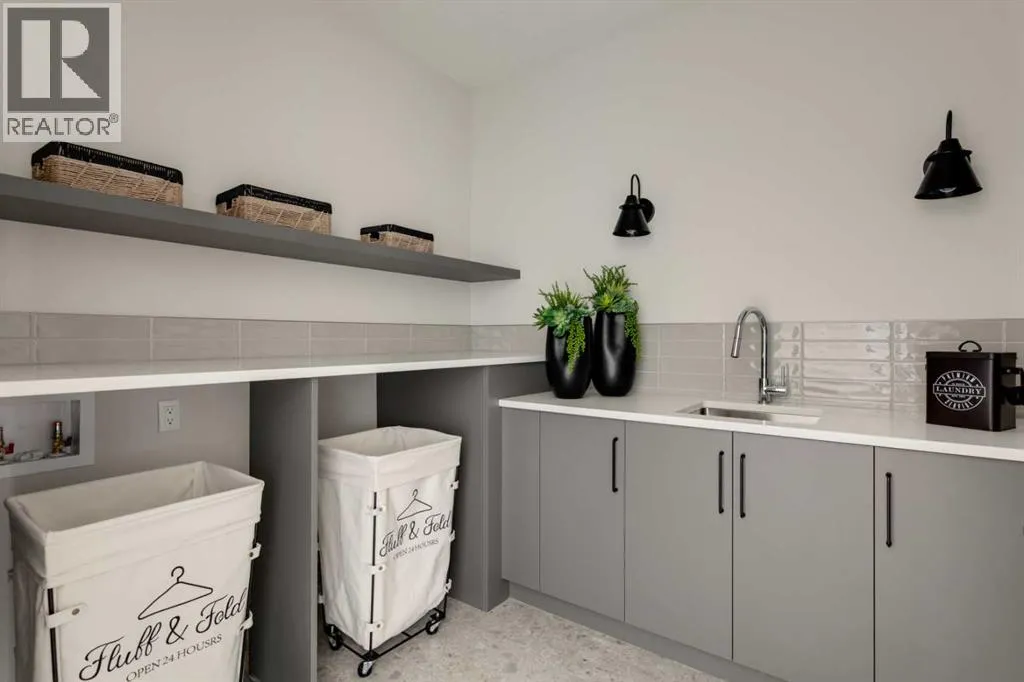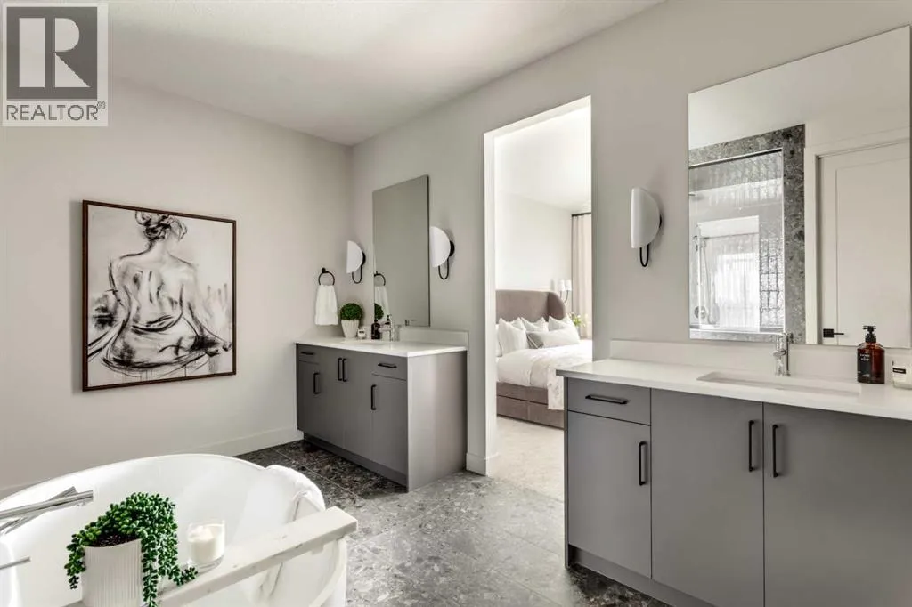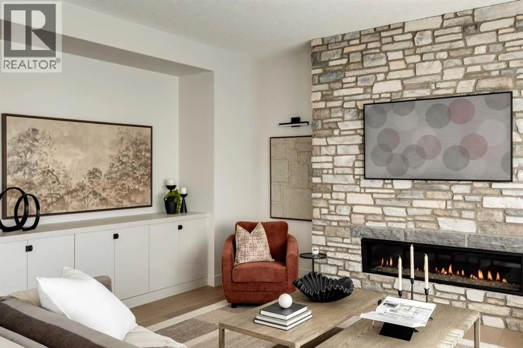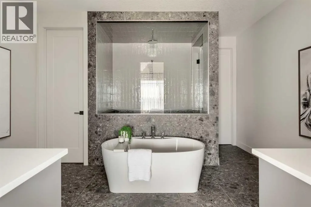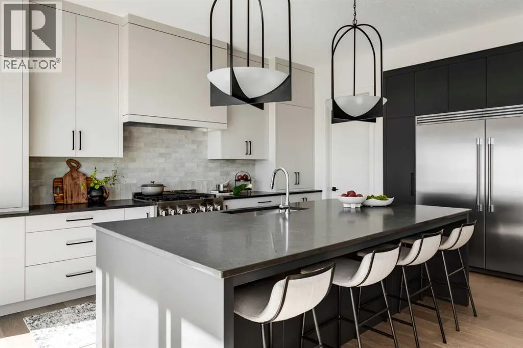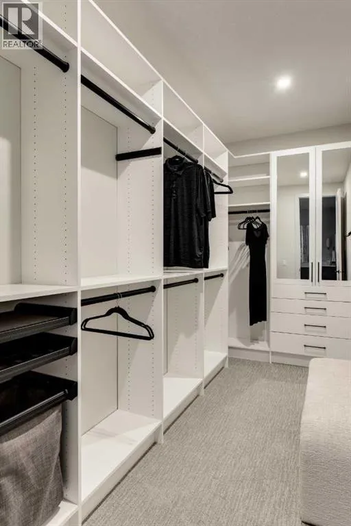 Welcome Home to Lupi Luxury Homes 8 Rockcliff Hill NW, this distinguished residence epitomizes the pinnacle of luxurious living. 4 oversized bedrooms each with their own ensuites and walk-in closets. This lovely home seamlessly integrates with its surroundings through a thoughtfully designed layout, boasting 6 bedrooms and 6 bathrooms. A standout feature is the 3-car garage with ceiling heights to accommodate a car lift. As you step inside, a wealth of high-end amenities unfolds, illuminated by natural light streaming through triple-pane Loe2 windows. The gourmet kitchen, with rich white cabinetry to the 10â ceiling and darker oversized island, showcases a built-in stainless steel, double fridge / freezer and upgraded gas range, dishwasher, microwave, hood fan, bar fridge, creating a culinary haven for residents and guests. Elevating the living experience, the residence boasts large deck off the professionally landscaped oversized back yard. A captivating stone fireplace becomes a central focus, infusing the space with warmth and inviting ambiance. The master ensuite is a true retreat, featuring a curb less walk in shower, soaker tub and his and hers vanity sinks and a large walk-in closet. Technological sophistication with a security system includes, and various powered window coverings. The home is adorned with exposed aggregate concrete, a high-end double furnace system with two air conditioning units included, ensures year-round comfort. Elegance permeates every corner, from an exquisitebutler's pantry to wide plank hardwood flooring, custom-built lockers. Main floor bedroom or den indulges with bulkhead ceiling detail adding a touch of opulence, while having private access to the 3-piece main floor bathroom. The lower development reveals a 6th bedroom, 6th bathroom and a large rec room and media area. Plenty of storage in utility and storage rooms. An elegant open staircase at the foyer, adorned with oakl spindles and an oak rail, warmly welcomes residents an d guestsinto this exceptional residence. Don't miss the opportunity to make this dream home yours. Schedule a showing today and immerseyourself in the unparalleled experience of refined living at 8 Rockcliff Hill NW (id:27476)