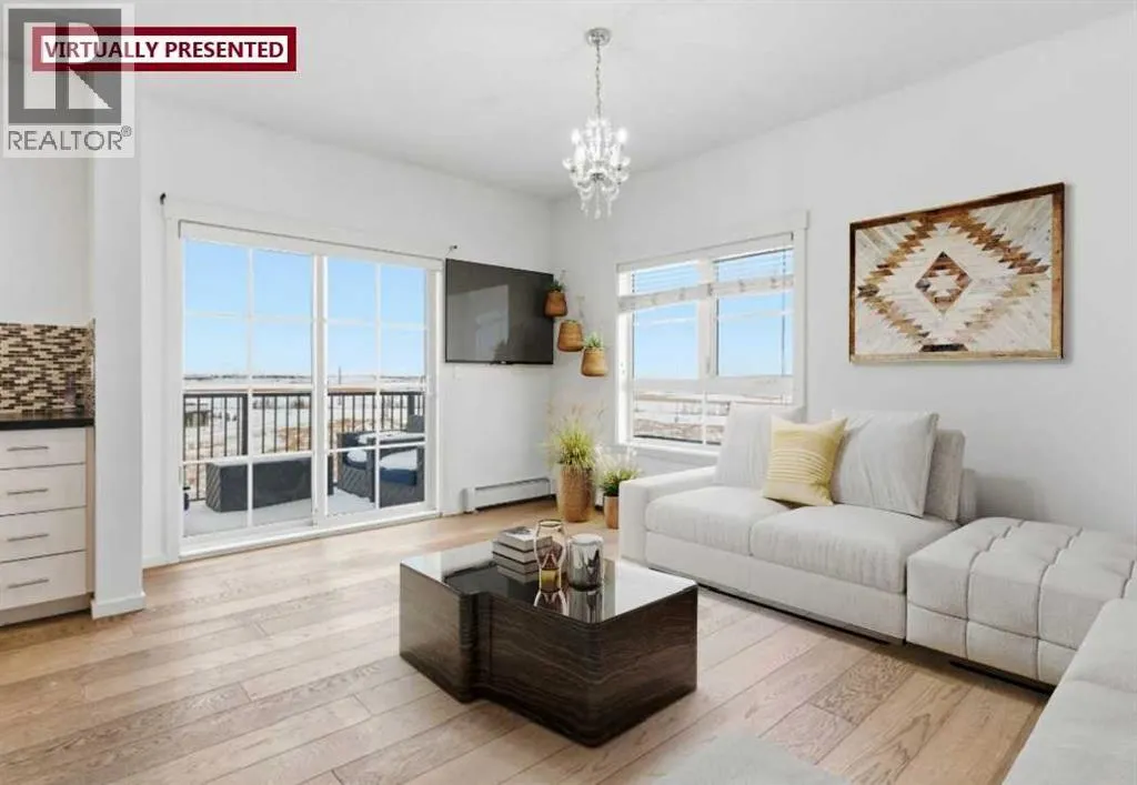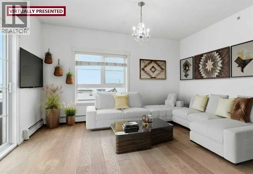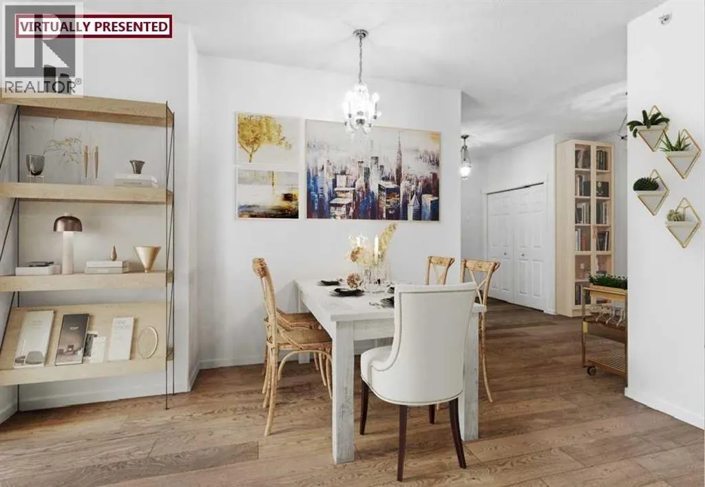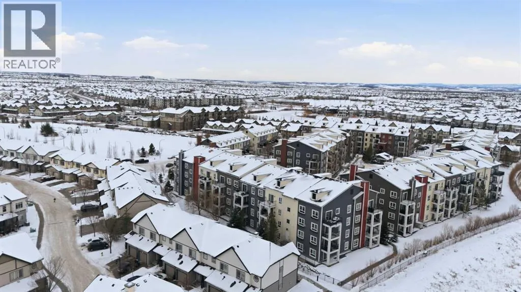 One of a kind location and unique TOP FLOOR CORNER UNIT: Gorgeous layout with East AND North corner windows + patio doors, a fully open balcony with sunsets and Mountain views Westward, as well as sunrises to the East. Welcoming interior offers enough comfortable area by the entry for a complete home office, study or library/sitting area, in addition to an oversized foyer and laundry combined. The open plan moves into a big central dining room, the beautiful wrapped kitchen with chopping-and-seating island and finally the spacious corner living room. For privacy, 2 great bedrooms are located on opposite sides of the lifestyle use rooms, and each has one of 2 full bathrooms - the primary even has a full walk-through dressing room closet. See iGuide 3D link and Detailed Plans for all the superbly balanced information - some photos include Virtual Furniture, appropriately fit for enhancing all the room spaces. Copperfield Park is a 2012 complex with only 5 low rise buildings and 14 townhomes, attractively landscaped outdoor spaces, closest to to South Pointe Shopping Plaza, Deerfoot Trail, plus, getting onto Stoney/201 East/South at 114th Avenue SE. Enjoy Titled underground Parking, large Storage and secured mail/package delivery. (id:27476)