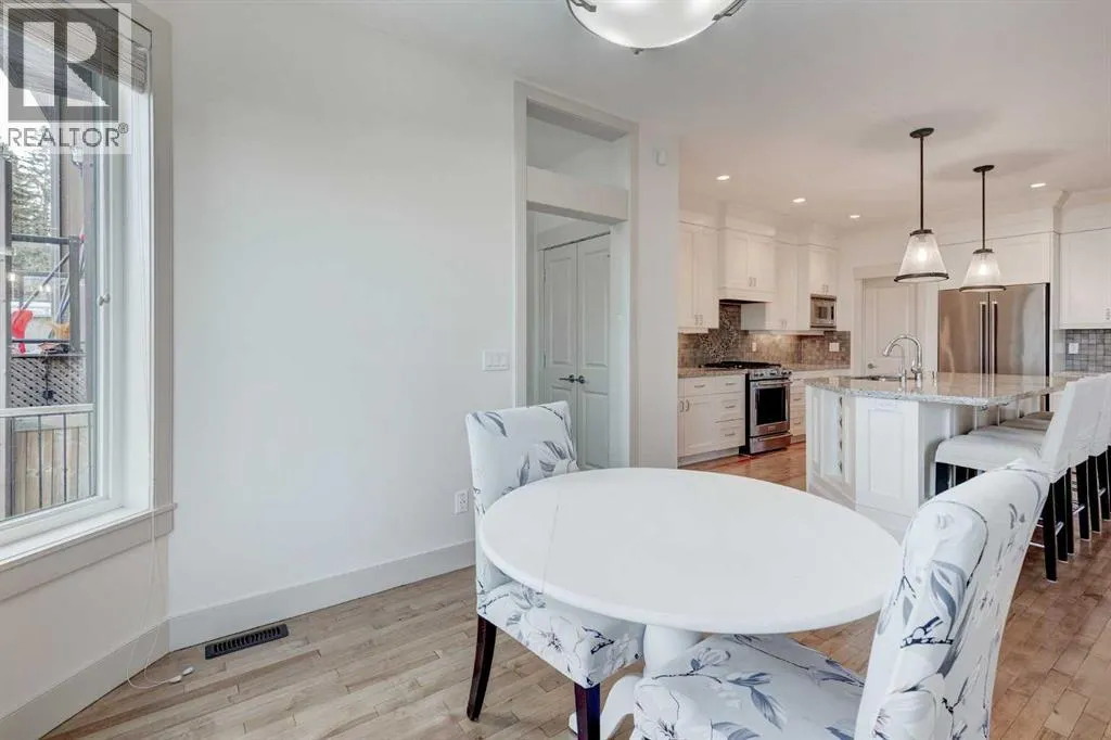 Step into this stunning two-storey home located in the inner city area of Shaganappi. Throughout the home, fresh paint and brand-new carpet elevate the overall look and feel, making it truly move-in ready. As you enter, you'll be greeted by vaulted ceilings and a spacious foyer that sets the tone for the rest of the home. The main level features beautiful hardwood floors and an open kitchen filled with light. This kitchen is a chef's delight, boasting a large island with granite countertops, breakfast bar seating, ample counter and storage space, a gas stove, stainless steel appliances, and a pantry. From the kitchen, youâll find a bright, spacious living room accentuated by a cozy fireplace with built-in shelves and storage, large windows, and numerous pot lights, creating a warm and inviting atmosphere. The main floor also boasts a formal dining room, perfect for family gatherings, a mudroom leading to the back deck, and a 2 piece bathroom completes the main level. Upstairs, the large primary bedroom is a true retreat with vaulted ceilings, a walk-in closet with built-in organizers, and a spacious five-piece ensuite featuring a soaker jet tub, double vanity, stand-up shower, and generous counter and storage space. Three additional bright bedrooms provide ample space for family or guests, and all bedrooms are serviced by a convenient upper floor laundry room with storage. The finished basement is designed for entertainment and versatility, featuring a large wet bar with plenty of counter and cupboard space, a sink, and its own fridge and dishwasher. The basement also includes a family room with abundant space for various activities and a fifth and final bedroom with an ensuite bathroom, perfect for guests or a home office. This home also enjoys the benefit of 2 furnaces and 2 air conditioning units, ensuring ultimate control over the temperature. The exterior of the home is equally impressive, with a low-maintenance backyard that includes a large wood deck, a concr ete patio, and a landscaped grass area surrounded by a garden, providing a private and serene outdoor space. The double detached heated garage with garage door controls opens to the back alley, ensuring convenience and security. Located in the desirable Shaganappi neighbourhood, this home offers an unbeatable location. Just steps from an LRT station and the Shaganappi golf course, it is also close to schools, parks, shopping options including a Walmart, and the vibrant 17th Avenue. The proximity to downtown Calgary and the Bow River, combined with easy access to the rest of the city via Bow Trail, makes this an ideal home for those seeking both convenience and luxury. Don't miss the opportunity to make this exceptional property your own. Don't miss the opportunity to make this freshly updated and beautifully maintained property your own. Book a showing today and experience the best of Calgary living. (id:27476)