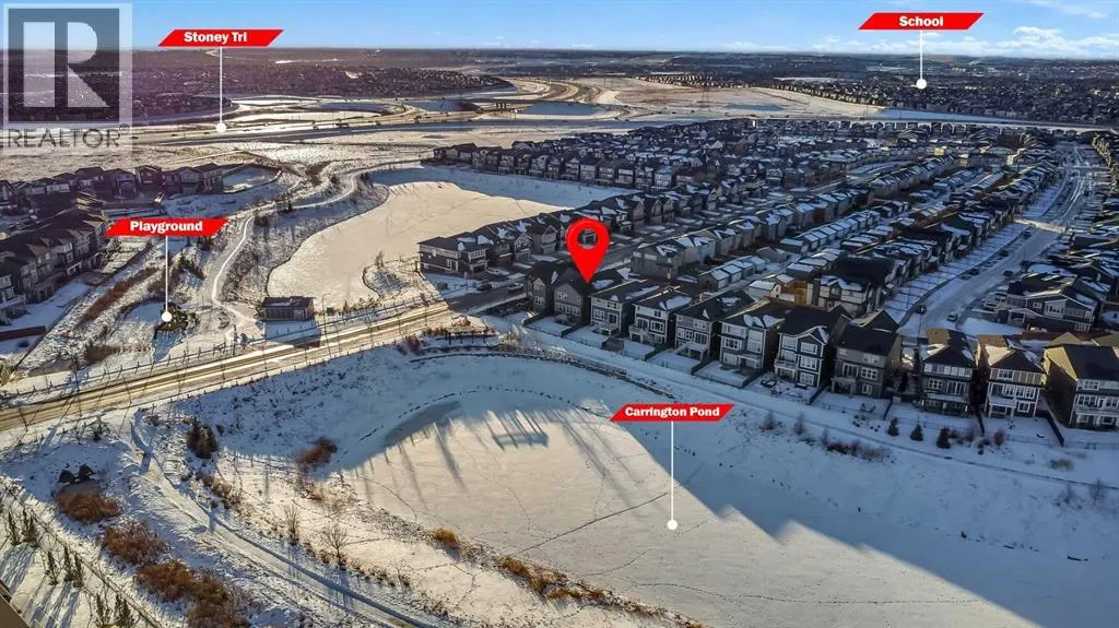 Stunning 7-Bedroom Home with Pond Views in CarringtonWelcome to 14 Carrington Road, a beautifully upgraded home offering 2,661 sq. ft. of developed living space on an oversized lot with serene pond views. Thoughtfully designed and impeccably maintained, this home features 9â ceilings, quartz countertops, upgraded lighting, custom window coverings, and top-of-the-line stainless steel appliances throughout.Enjoy the convenience of laundry on both upper and lower levels, air conditioning, a separate side entrance, and a fully developed basement âperfect for extended family or added flexibility.The main floor offers a versatile flex room, a bedroom, a 3-piece bath, and a spacious great room with an electric fireplace. The gourmet kitchen is complete with a large island eating bar and ample cabinetry, ideal for both everyday living and entertaining.Upstairs, youâll find four generously sized bedrooms fully ensuite, a vaulted bonus room, a full bathroom, and upper-level laundry.The fully developed lower level features two bedrooms, a full bathroom, and a spacious kitchen with abundant storage, creating a comfortable and functional private space.Additional highlights include:Oversized double attached garageOversized sunshine basement windowsLarge deck overlooking the pondPrime location close to parks, green spaces, shopping, public transit, and all amenitiesThis exceptional home offers space, functionality, and an unbeatable location. Donât miss this incredible opportunity to live in a developed and established communityâbook your showing today (id:27476)