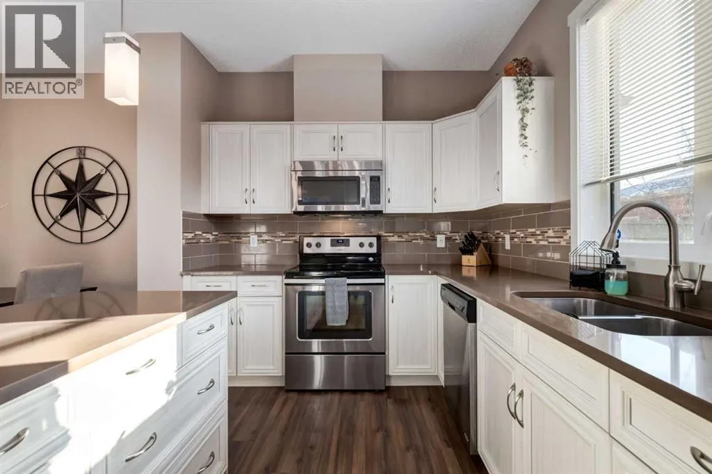 Welcome to a home that truly has it all; NO CONDO FEES, FULLY DEVELOPED, A DOUBLE DETACHED GARAGE, AIRCONDITIONING and the COVETED LAKE LIFESTYLE! This bright and open floor plan features 9â ceilings, abundant natural light and updated, modern finishes throughout. The kitchen is designed for both function and entertaining, showcasing quartz countertops, stainless steel appliances, a sleek backsplash, pantry and kitchen island. The kitchen seamlessly opens to the dining and living area, creating an ideal layout. A convenient two piece bathroom and a functional mudroom complete the main floor, adding to the homeâs thoughtful and practical design. Upstairs, youâll find two spacious primary bedrooms, each complete with a private ensuite and walk in closet; perfect for families, guests, or shared living. The builder developed basement adds exceptional value, offering a dedicated laundry room, a second living or workout space, an additional 4 piece bathroom and a third bedroom or den. Outside, enjoy the south facing, fully fenced backyard that provides privacy and sunshine. Ideally located just steps from the lake and playgrounds and within walking distance to shops, cafés, and restaurants, this home delivers lifestyle, convenience and comfort in one exceptional package. Book your private showing today! (id:27476)
