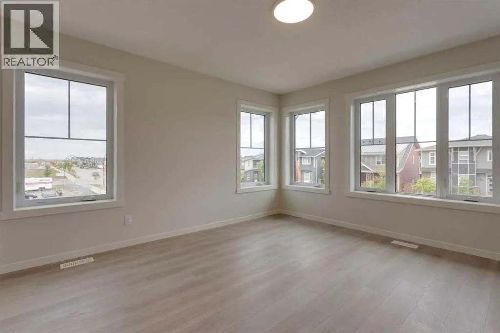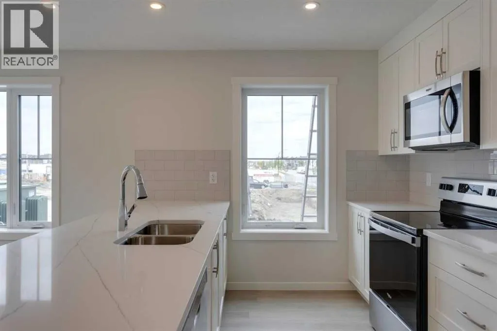 Welcome to the Empire II by Avalon Master Builder â a 1,430 sq ft., 3-bedroom, 2.5-bath townhome that blends modern style with exceptional energy efficiency. The open-concept main floor features a spacious kitchen island, sleek White Ice quartz countertops, and a 6-piece Whirlpool appliance package, with durable luxury vinyl plank flooring throughout. Upstairs, youâll find three generous bedrooms, including a primary bedroom with a walk-in closet and ensuite, plus convenient upper-floor laundry. A smart under-stair storage cubby adds extra functionality. Enjoy your south-facing, fully fenced backyardâperfect for kids, pets, or entertainingâcomplete with BBQ gas line, landscaping, and irrigation. Built to exceed 2030 building code standards, this EnerGuide-certified home includes superior insulation, triple-pane windows, and advanced construction techniques to keep utility costs low and comfort high. Every detail is designed for todayâs lifestyle and tomorrowâs sustainability. Photos are representative. (id:27476)