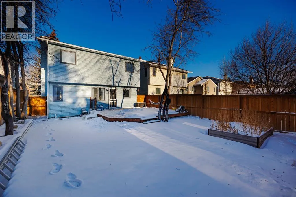 Looking for that perfect Christmas gift? Why not your first home! This is one the entire family will love. On a quiet street in the heart of MacEwan, this quaint starter home is ideal for every member. Close to schools, parks and a short jaunt to downtown, you will be pleasantly surprised by this centrally located community. Not only that, but take advantage of its proximity to Nose Hill Park, an adventure any day! This well appointed home offers 3 bedrooms, 2 full bathrooms and 2 half bathrooms. The main floor is bright and well laid out for multiple lifestyle options and the kitchen opens up onto a large deck and yard. Upstairs you will find the 3 bedrooms, including an ensuite off the primary bedroom. The basement is fully finished, offering a Den, bar area and open recreation space, perfect for play or entertainment. MacEwan is home to a prolific pathway system and this home is just up the hill from the elementary schools. New fence and gate as well as LED Christmas for the season! 'Wrap' this place up soon and you'll be starting off 2026 in your new home! (id:27476)