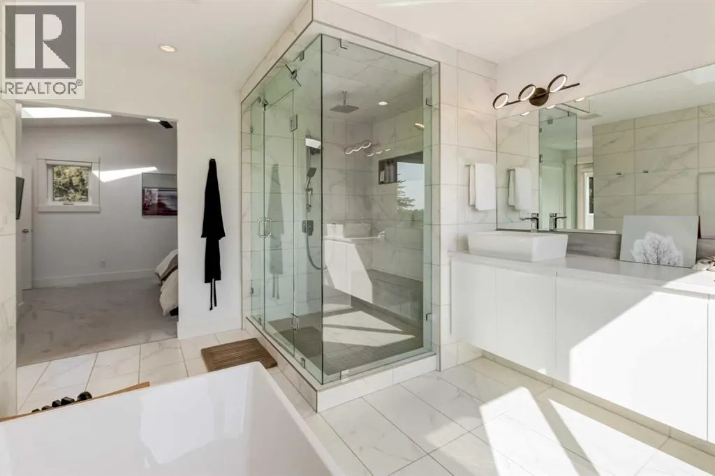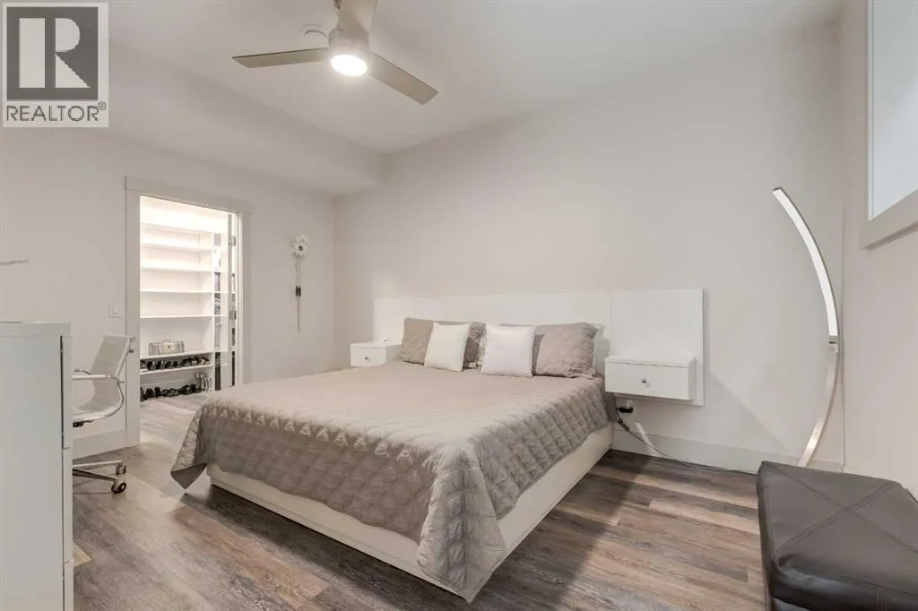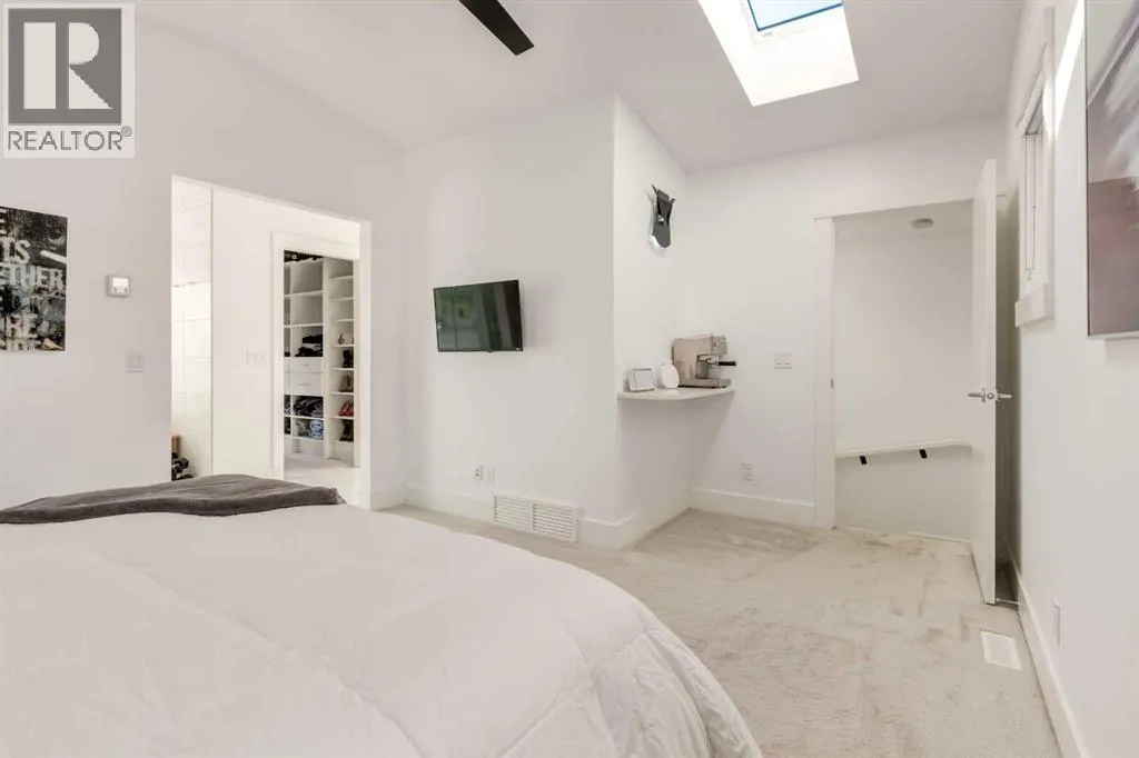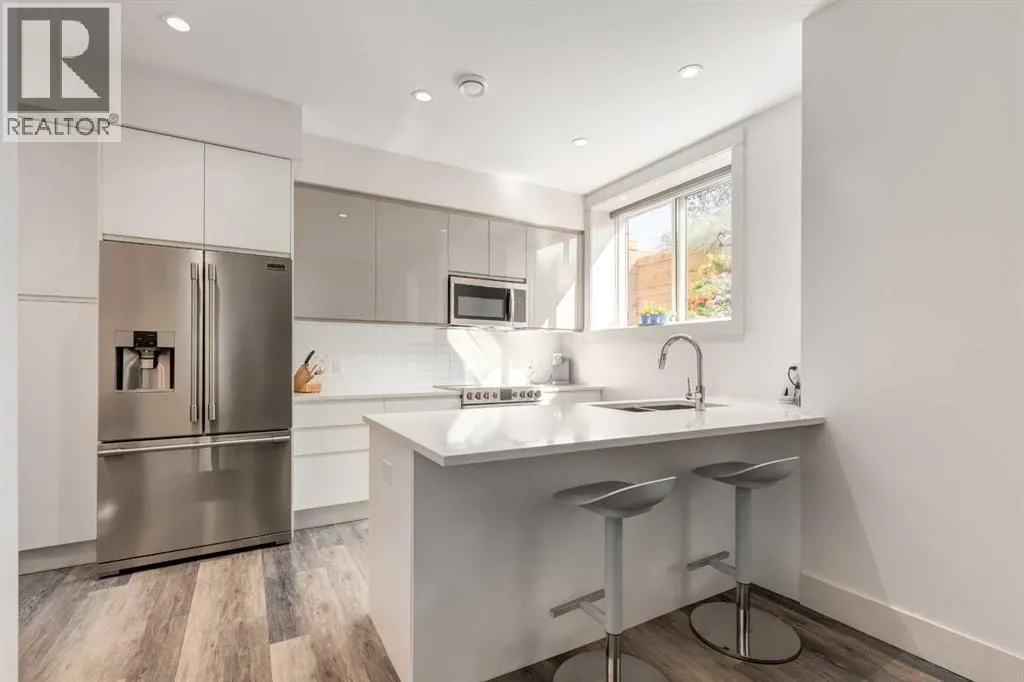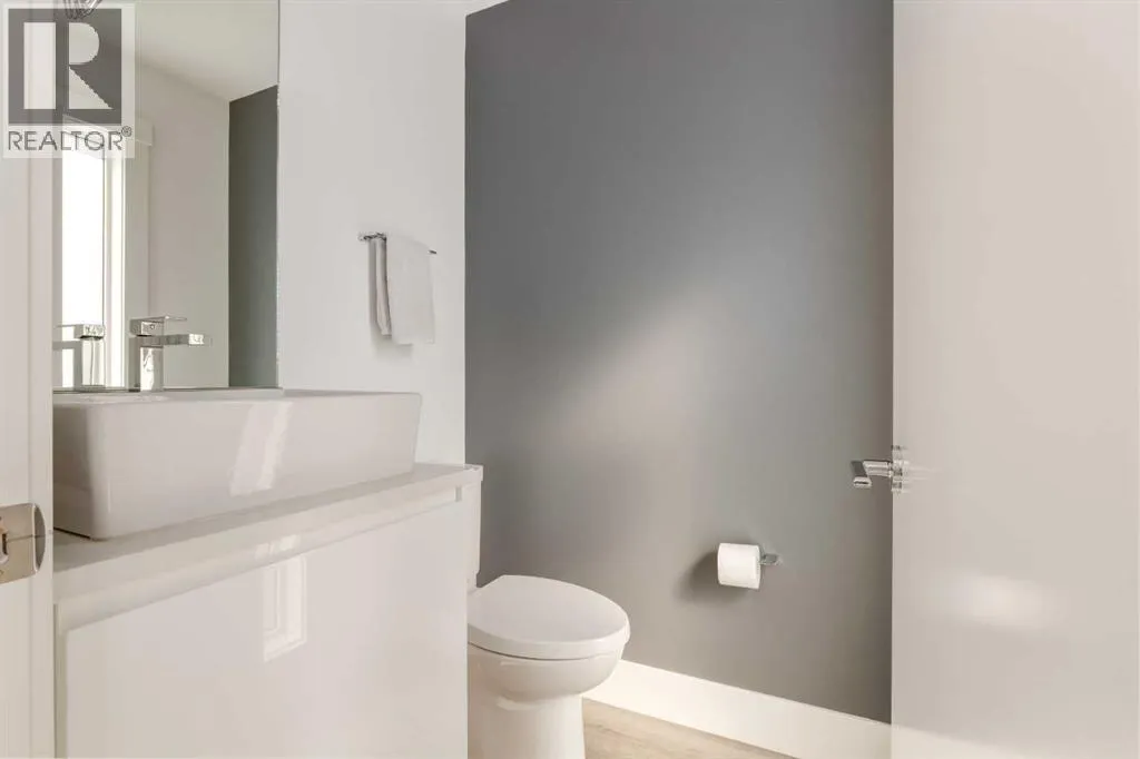 The home with the yellow door... yes, that one. Now is your chance to own this striking modern residence tucked into the sought-after community of Highwood. Situated on an extra-wide lot, this thoughtfully designed home offers over 2,900 sq ft of living space across three levels, plus a fully developed basement, all created to maximize light, volume, and livability. Clean architectural lines, a soft neutral palette, and expansive windows set a calm, airy tone throughout. Soaring ceilings, sleek finishes, and two dramatic open-to-below spaces are flooded with natural light from four skylights, creating a sense of space that feels both intentional and inviting. The kitchen balances form and function beautifully, featuring stainless steel appliances, a gas range, custom soft-close Italian cabinetry, and white quartz countertops with a waterfall island, designed for both everyday living and entertaining. The main living area is anchored by a distinctive BioFlame fireplace and opens seamlessly to a 600 sq ft deck and professionally landscaped, west-facing backyard, ideal for sunset evenings. The second level offers three bedrooms, including one with a private ensuite and heated floors, while custom built-ins throughout the home ensure effortless organization. The third-floor primary retreat feels like a private spa, complete with in-floor heating, an oversized shower, and serene finishes. Step onto your private balcony and take in downtown views- perfect for enjoying fireworks from the comfort of home. The legal one-bedroom basement suite is equally polished, with a private side entrance, custom Italian kitchen, radiant floor heating, soundproofed construction, oversized shower, and generous storage. With long-term tenants eager to stay, itâs an ideal income opportunity or multi-generational solution. Additional highlights include an oversized 22â x 24â insulated garage with 220V EV charging, custom window coverings, USB outlets throughout, high-efficiency furnace and ho t water tank, roughed-in A/C, and a quiet cul-de-sac location with an east-facing front overlooking a lush park. Surrounded by mature trees and excellent schoolsâincluding public, Catholic, French, Spanish, Mandarin, and Foundations for the Future, Highwood is a true hidden gem. With Confederation Park, outdoor rinks, golf, pools, playgrounds, bike paths, transit, and the future Green Line LRT all nearby, this home offers the perfect balance of design-forward living and everyday convenience. A rare opportunity where modern minimalism, refined craftsmanship, and inner-city lifestyle come together seamlessly. (id:27476)