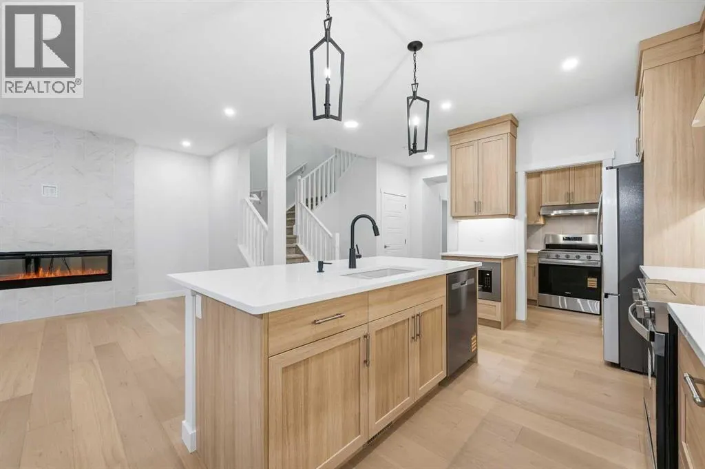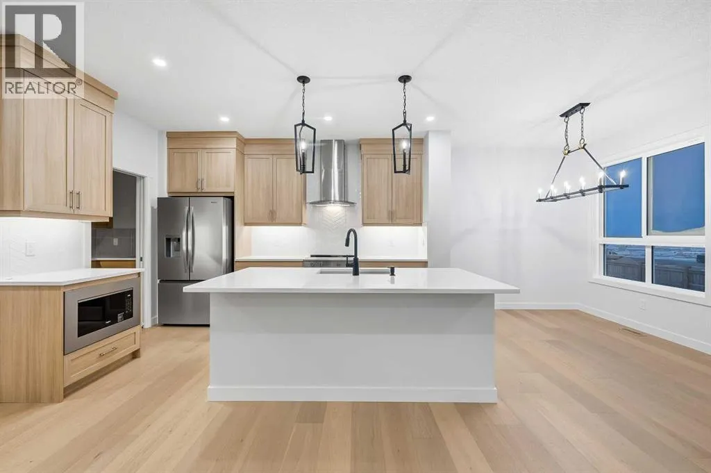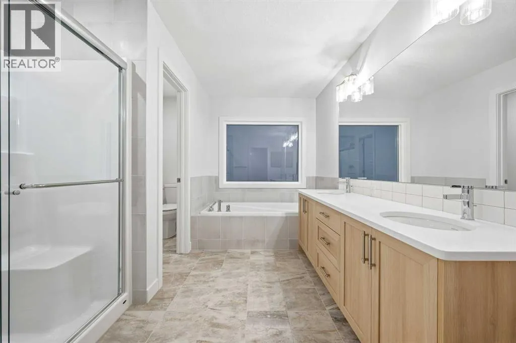 # Virtual Tour # 5 BED 4 FULL BATH | MAIN FLOOR BED ROOM,DEN & FULL BATH | SPICE KITCHEN | SIDE ENTRANCE | 2 MASTER BEDROOMS | Discover amazing value and the perfect blend of luxury and convenience in the sought-after community of Homestead .This 2 story Lawson model built by Trico Homes sits on EXTRA LONG 120 FT LOT and features 2,578 sq ft , 5 bedrooms, 4 full bathrooms, and an attached double garage. Upon Entering, you will be greeted by spacious foyer, a den on the left side and a bedroom on the right with a full Bath. The main level features an open-concept connecting the living room, kitchen, and dining nook. The gourmet kitchen is a chef's dream, with upgraded cabinets, a contrasting island with a convenient eating bar, quartz countertops, and upgraded stainless steel appliances, including an oversized fridge, built-in microwave, and a electric range. Additional highlights include soaring ceilings and a fully equipped SPICE KITCHEN with extra cabinetry, a GAS stove, and a sink. Vinyl plank flooring runs throughout the main floor for a sleek look. The great room offers ELECTRIC FIREPLACE wrapped around Tiles and sliding patio doors leading to a backyard. Upstairs, the open staircase with railing leads to a generously sized bonus room, 4large bedrooms Including 2 MASTER BEDROOMS , laundry room and 3 full bath. The master bedroom includes a walk-in closet and a luxurious 5-piece ensuite. Basement comes with a side entrance, 9 ft ceiling, 2 large egress windows, tankless hot water and a lot more. High-end finishes such as upgraded tile, lighting, and countertops elevate the homeâs interior. Beyond the home itself, the community of Homestead is growing fast and smartâwith major future amenities already approved, including two brand-new schools, a cricket pitch, a 3-acre community association site, a soccer field, pickleball and basketball courts, plus parks, ponds, and a 19-acre environmental wetland complete with a sheltered gazebo and over 4 kms of connected wa lking paths. This is a neighborhood built with lifestyle, recreation, and long-term value in mindâmaking it one of Calgaryâs most exciting and well-planned new developments. This is more than a homeâitâs a long-term investment in one of Calgaryâs most promising, family-focused communities. (id:27476)