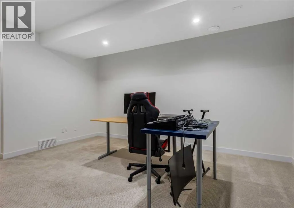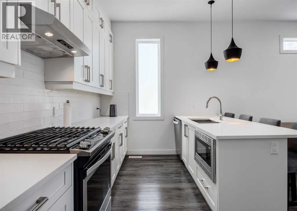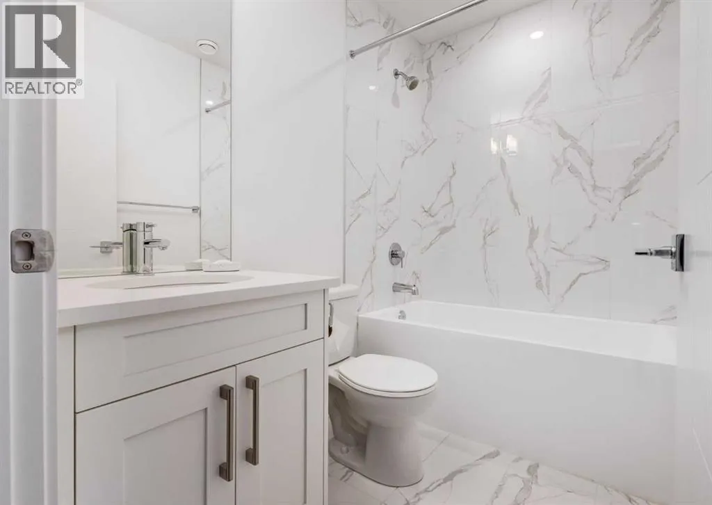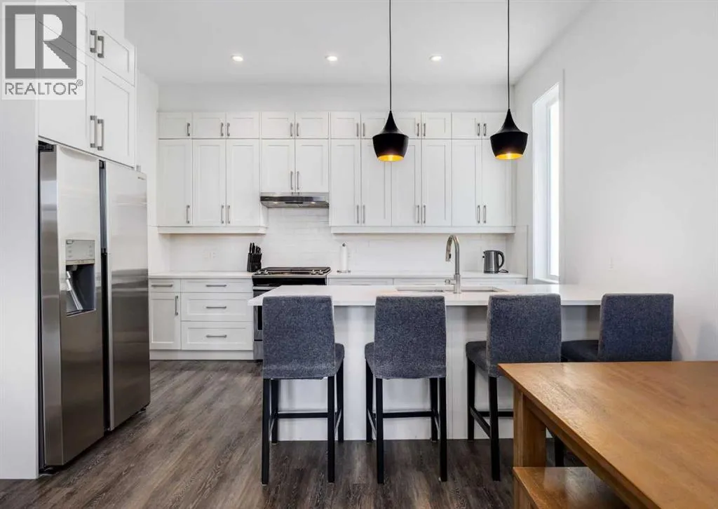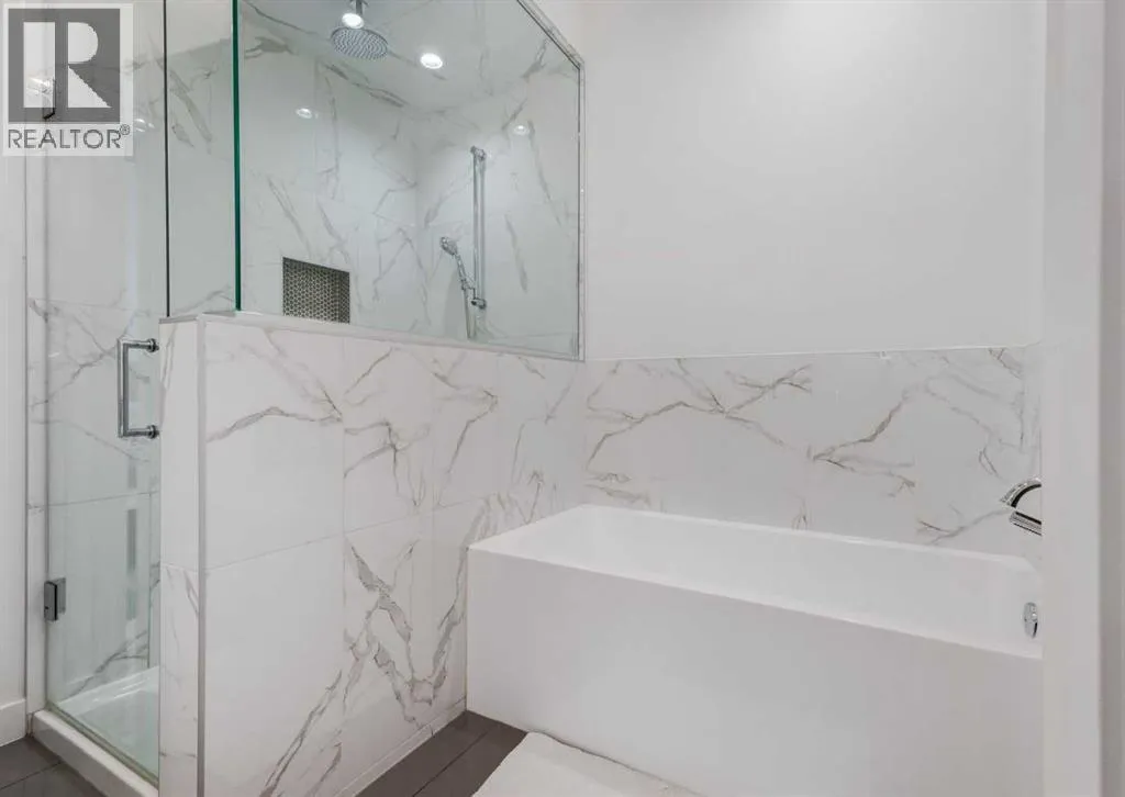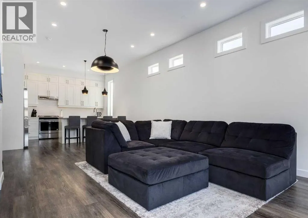 Discover contemporary elegance in this stunning two-storey townhome, perfectly situated on a quiet street in the sought-after community of Tuxedo Park. Centrally located with effortless access to downtown, trendy shops, restaurants, parks, deerfoot trail/airport and all other amenities. Spanning three thoughtfully designed levels, this modern residence boasts three bedrooms, three full bathrooms, and a convenient half bath. Flooded with natural light through oversized windows, the main floor welcomes you with impressive 10' flat ceilings that enhance the sense of space and sophistication. The open-concept layout flows seamlessly from the contemporary kitchenâideal for cooking and gatheringâto the bright living and dining areas, creating an inviting environment for both relaxed daily life and entertaining. Upstairs vaulted ceilings and a skylight create space with an airy, architectural charm. The luxurious primary retreat is a true sanctuary, featuring a spa-inspired ensuite complete with heated tile floors for comfort. An additional bedroom with itâs own ensuite and a convenient upper floor laundry complete this floor. The fully finished lower level extends the homeâs versatility with a spacious living/media room, a full bathroom, and the third bedroomâperfect as a guest suite, home gym, office, or flex space. Finished with premium upscale materials and timeless modern design throughout, this property also includes a single detached garage and outdoor patio. In one of Calgaryâs most vibrant yet peaceful inner-city neighbourhoods, this Tuxedo Park townhome combines style, thoughtful functionality, and an unbeatable location. A must-see gem that perfectly balances urban convenience with quiet retreatâready to welcome you home. Check out the video in the media link and book your private showing today! (id:27476)
