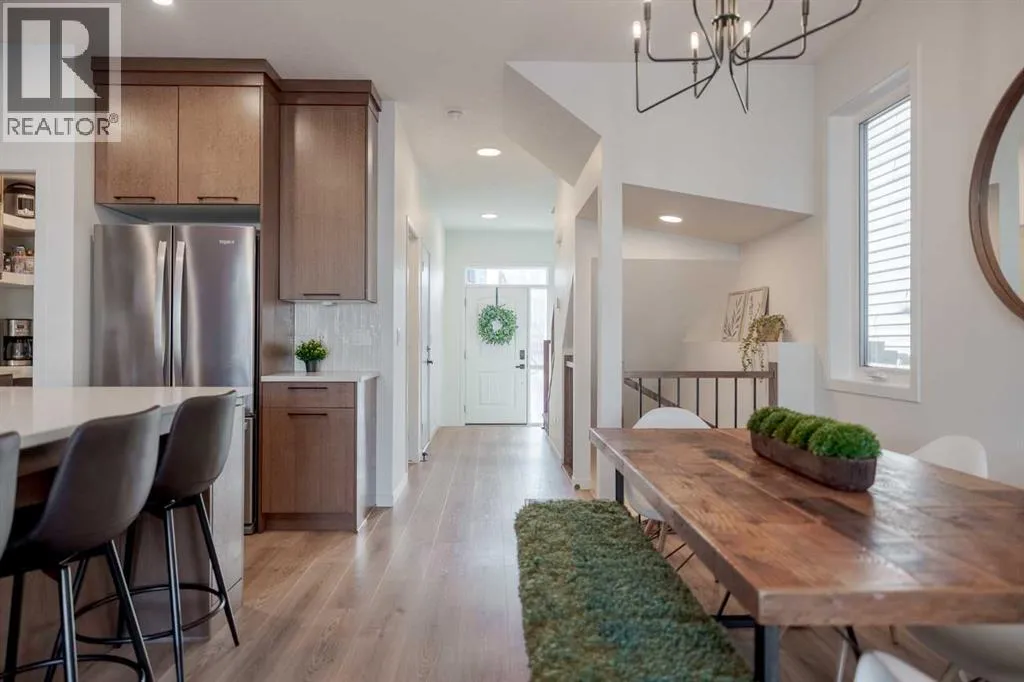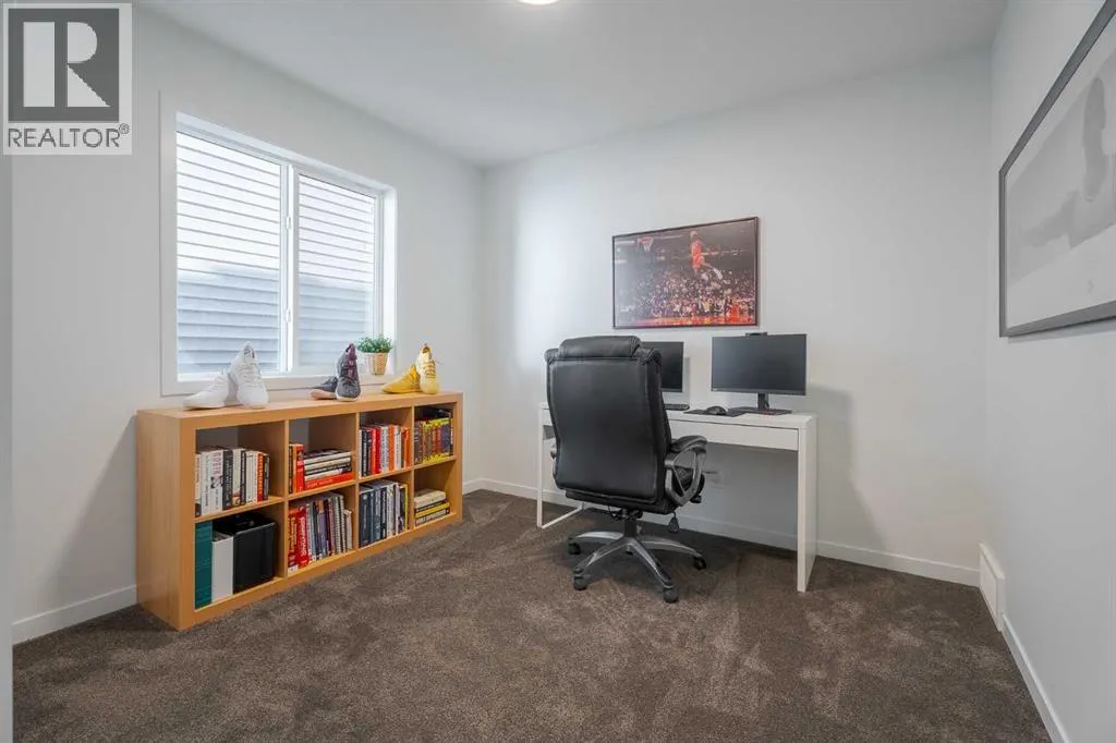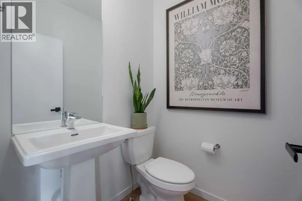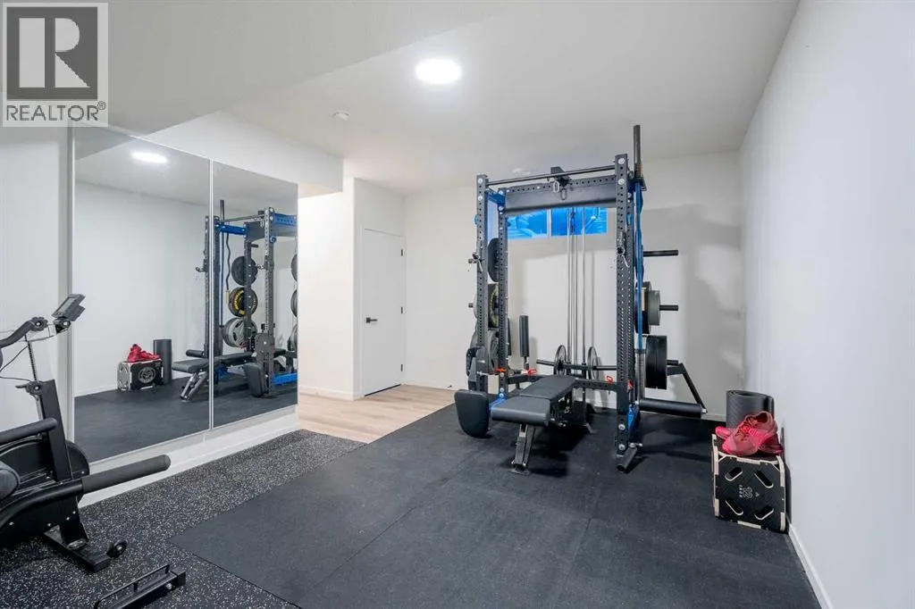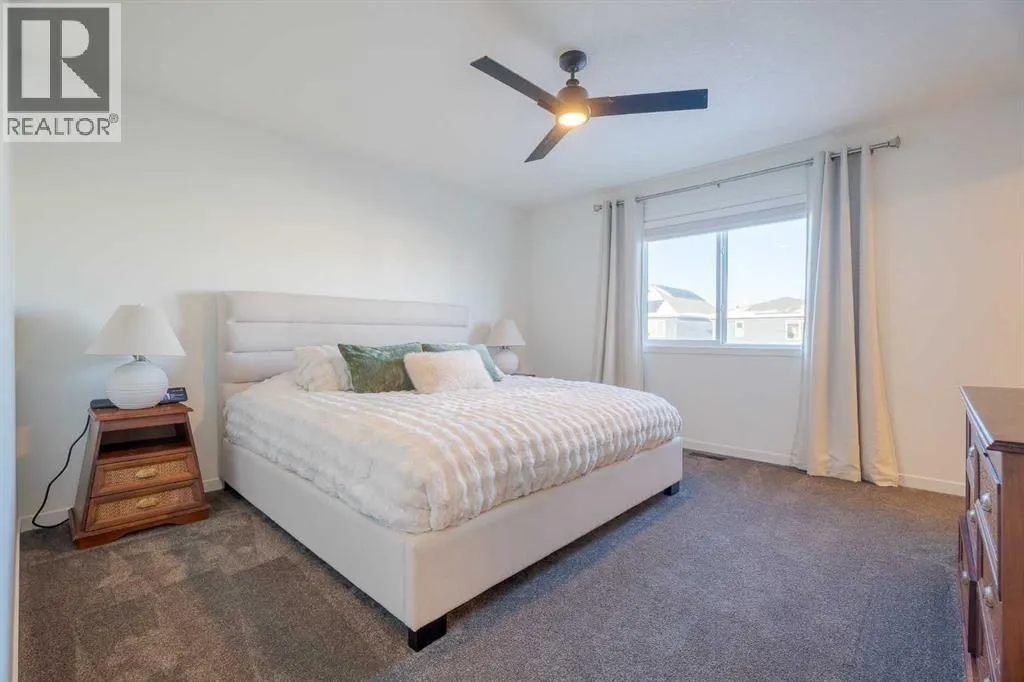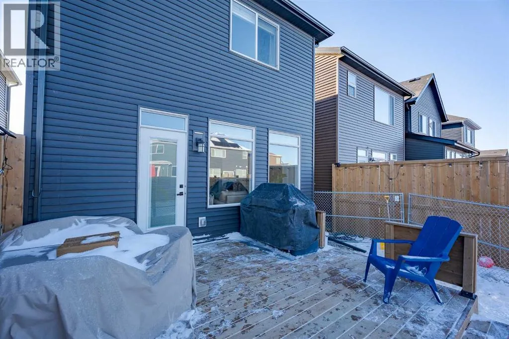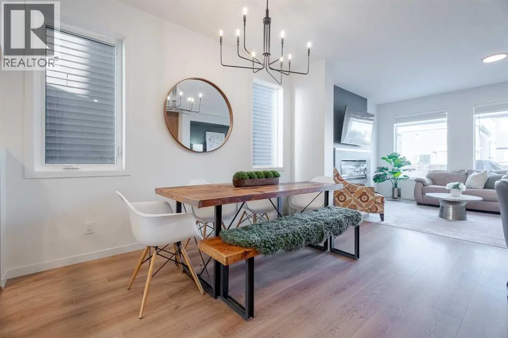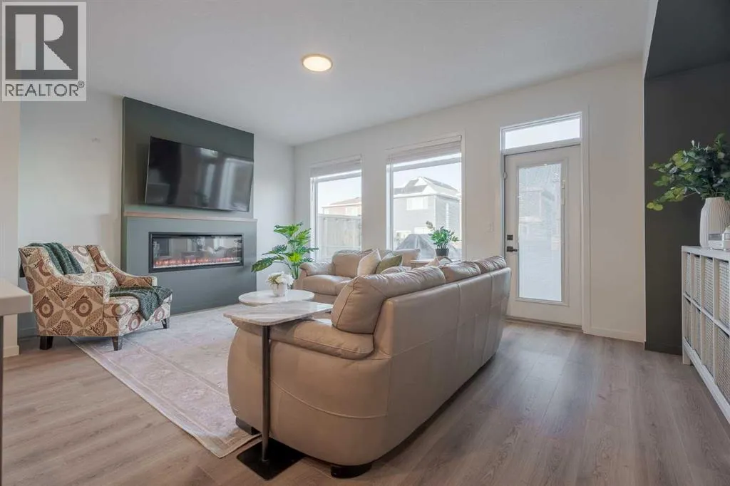 Welcome to an extraordinary residence in the prestigious southwest community of Belmont, where refined design and modern luxury converge. This newer, custom-built home is a masterclass in sophisticated living, thoughtfully curated with impeccable upgrades and meticulous attention to detail throughout, offering a truly elevated lifestyle. Upon entry, you are welcomed by an elegant, on-trend palette that beautifully complements the homeâs timeless, earthy aesthetic. The stunning great room is anchored by upgraded wide-plank flooring and a striking 50-inch linear electric fireplace, complete with a bespoke oak mantelâan inviting focal point for intimate evenings and refined entertaining alike. The kitchen is nothing short of exceptional, designed to inspire both form and function. Highlights include a generous walk-in pantry with additional counter space, a show-stopping oversized island adorned with upgraded quartz countertops, and a custom designer backsplash. Floor-to-ceiling oak cabinetry, enhanced with additional drawers and storage, pairs seamlessly with premium appliances, including a gas range and counter-depth refrigerator, showcasing craftsmanship of enduring beauty. The main level is completed by a discreet and stylish powder room, ideal for guests. Upstairs, the private primary retreat is bathed in natural light and features a spacious walk-in closet and a spa-inspired ensuite with an oversized shower. Two additional well-appointed bedrooms share a beautifully designed family bathroom, offering comfort and elegance for family members or guests. The upper-level laundry room elevates everyday living with full-length hanging space and solid shelving, transforming routine tasks into a refined experience. The professionally designed lower level extends the homeâs versatility, featuring a spacious family roomâcurrently staged as a private gymâalong with a four-piece bathroom and a fourth bedroom, perfect for guests or extended family. Thoughtfully upgraded lighti ng throughout the home creates a warm, inviting ambiance, enhancing every space. Outside, the fully landscaped yard adds exceptional curb appeal and provides a welcoming outdoor setting ideal for entertaining and relaxation. Set within the sought-after Belmont community, this home offers an unparalleled lifestyle defined by contemporary design, functional elegance, and a strong sense of community. Residents enjoy scenic pathways, playgrounds, a forthcoming outdoor shopping centre, future recreation facilities, a library, and convenient access to major roadways including Macleod Trail and Stoney Trailâensuring effortless travel to downtown Calgary and the Rocky Mountains. This is a rare opportunity to claim a truly luxurious haven in one of Calgaryâs most exciting new communities. (id:27476)